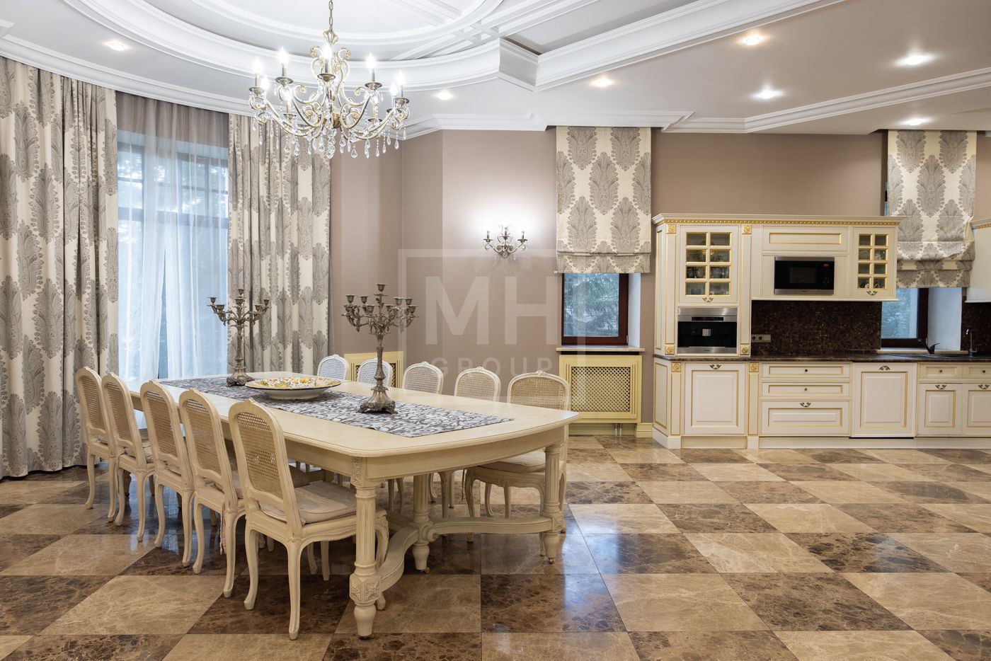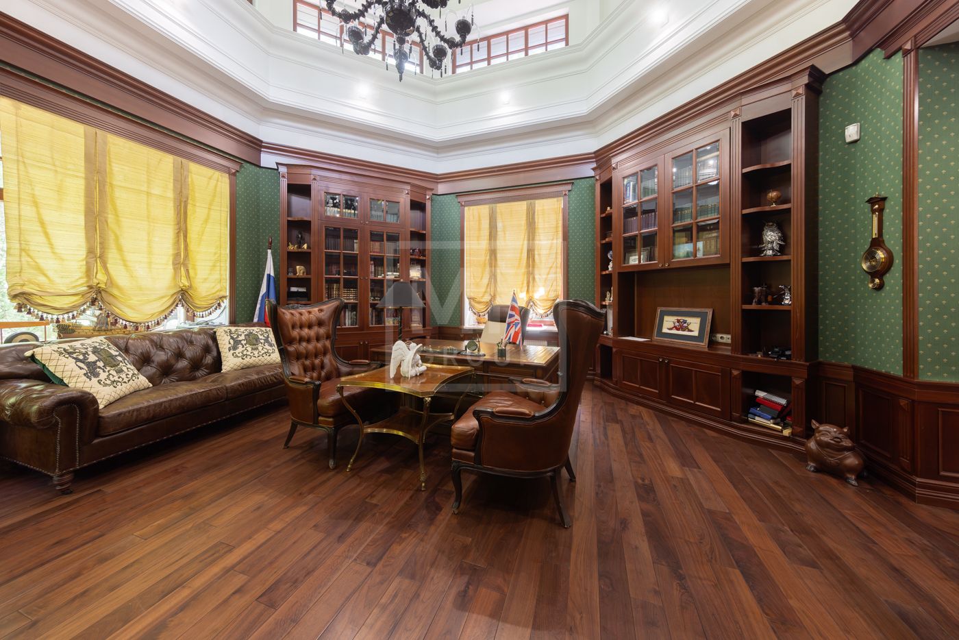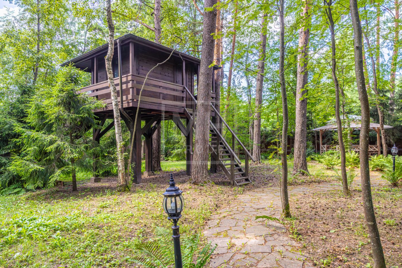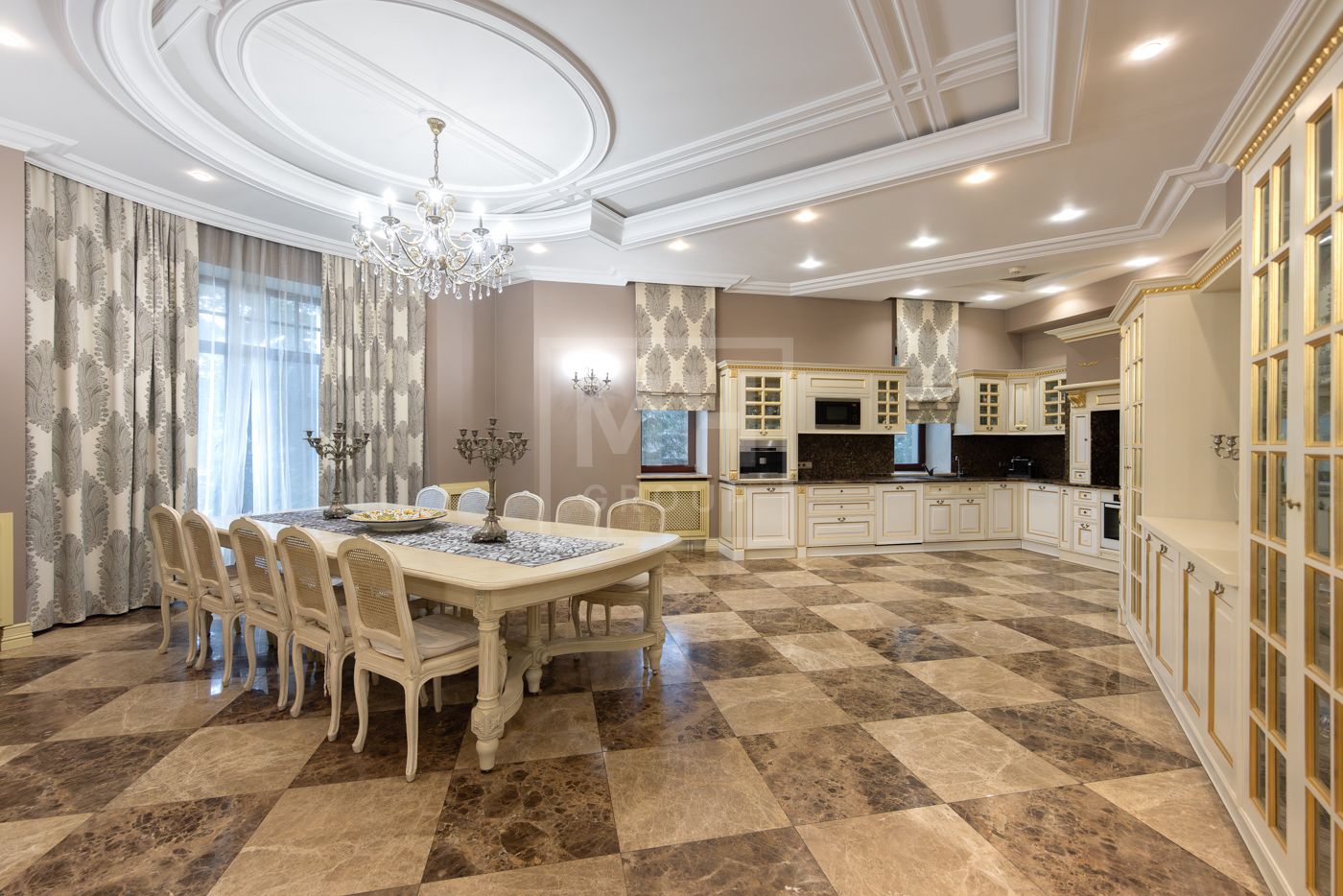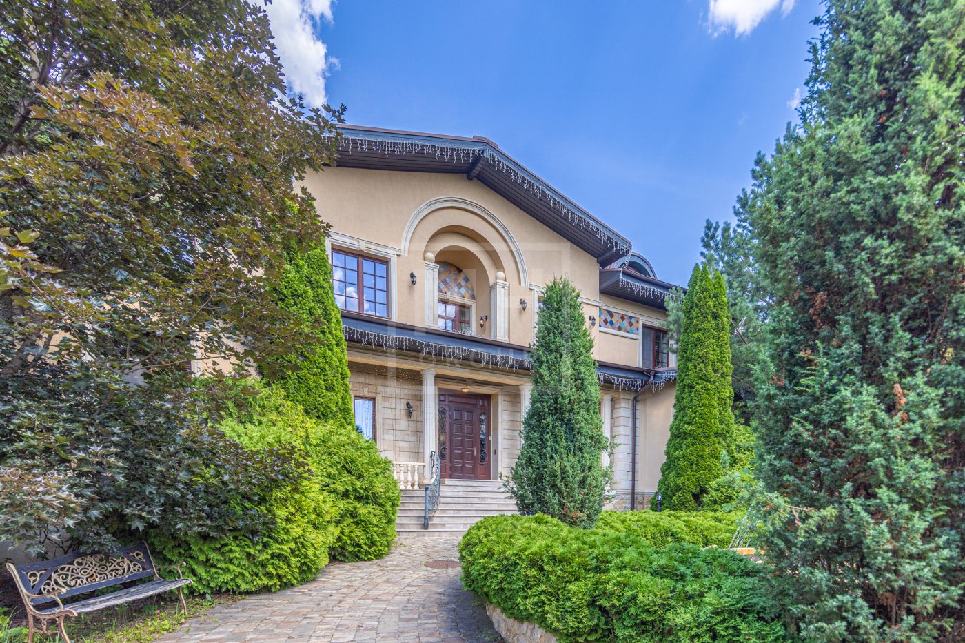 Загородная усадьба в классическом стиле на живописном лесном участке. Прекрасное расположение в самом поселке: в тихой тупиковой улице, рядом выход в охраняемый лесной массив.