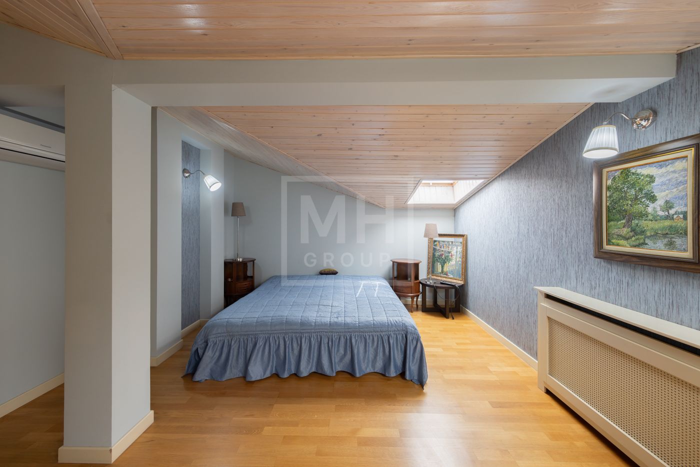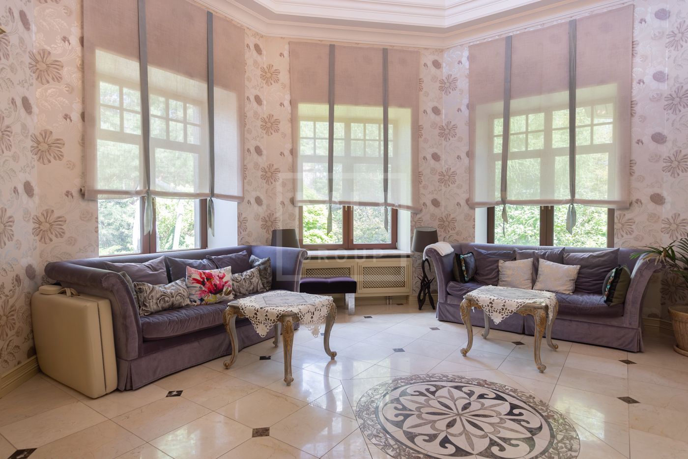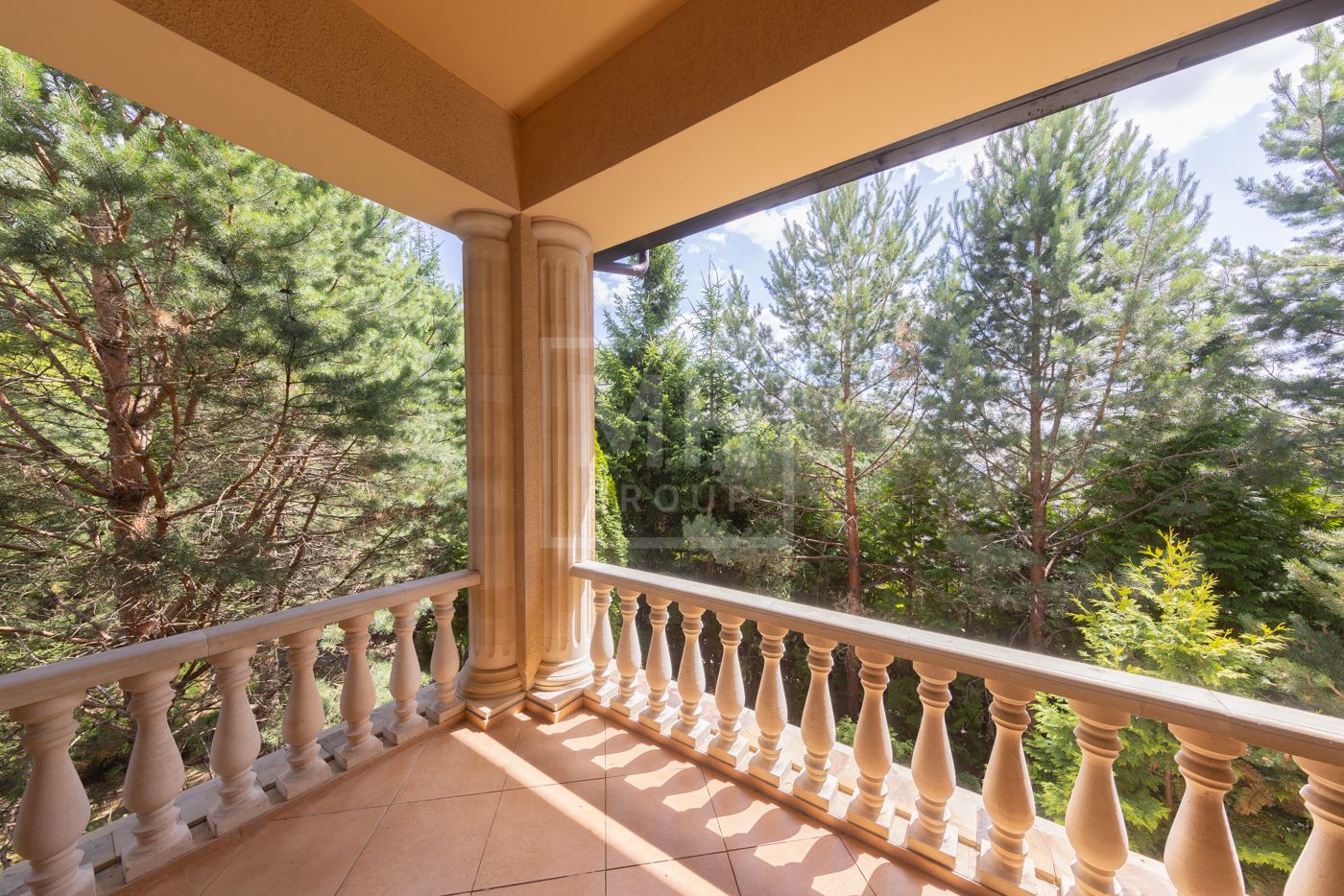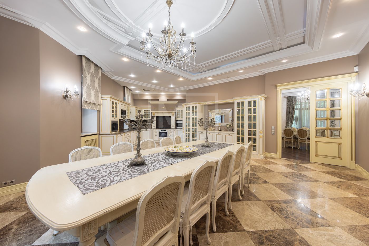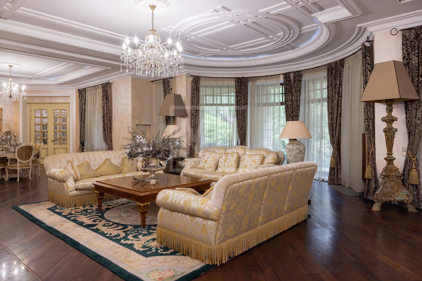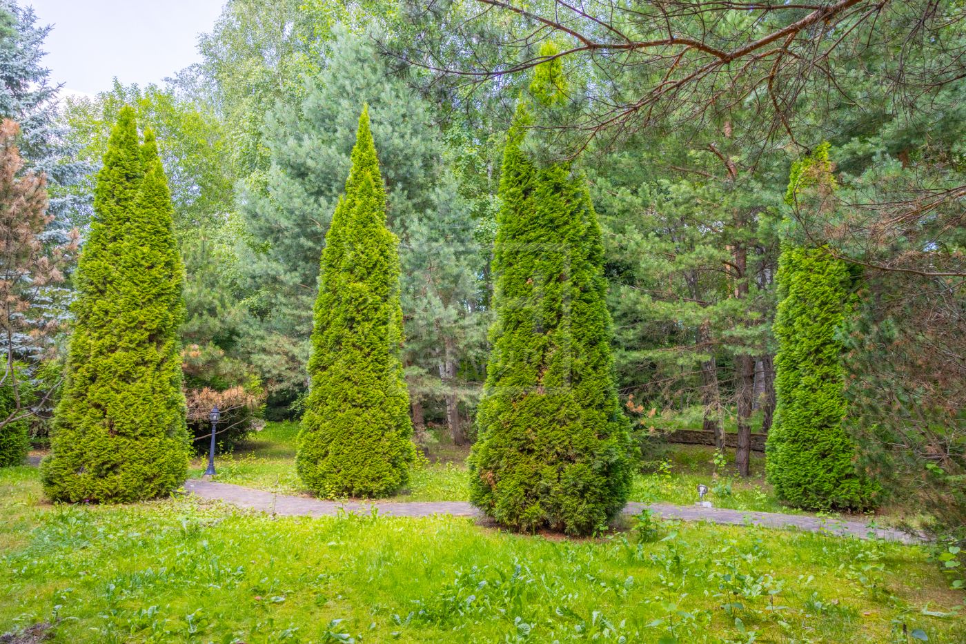 Загородная усадьба в классическом стиле на живописном лесном участке. Прекрасное расположение в самом поселке: в тихой тупиковой улице, рядом выход в охраняемый лесной массив.