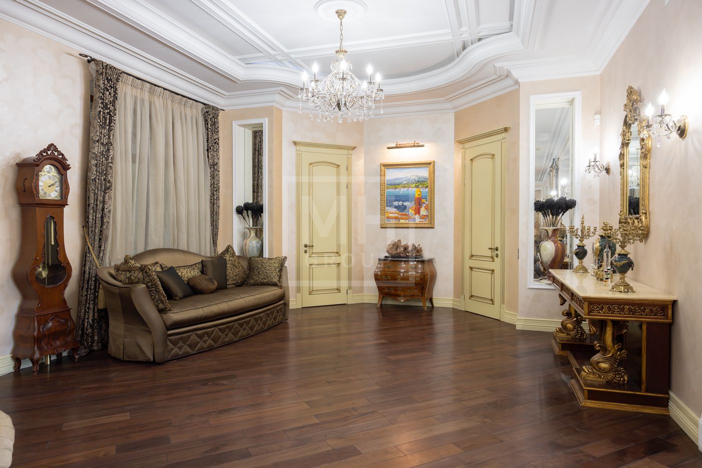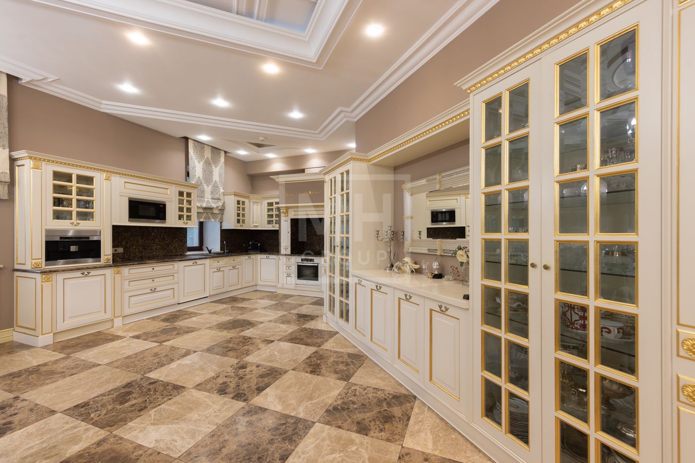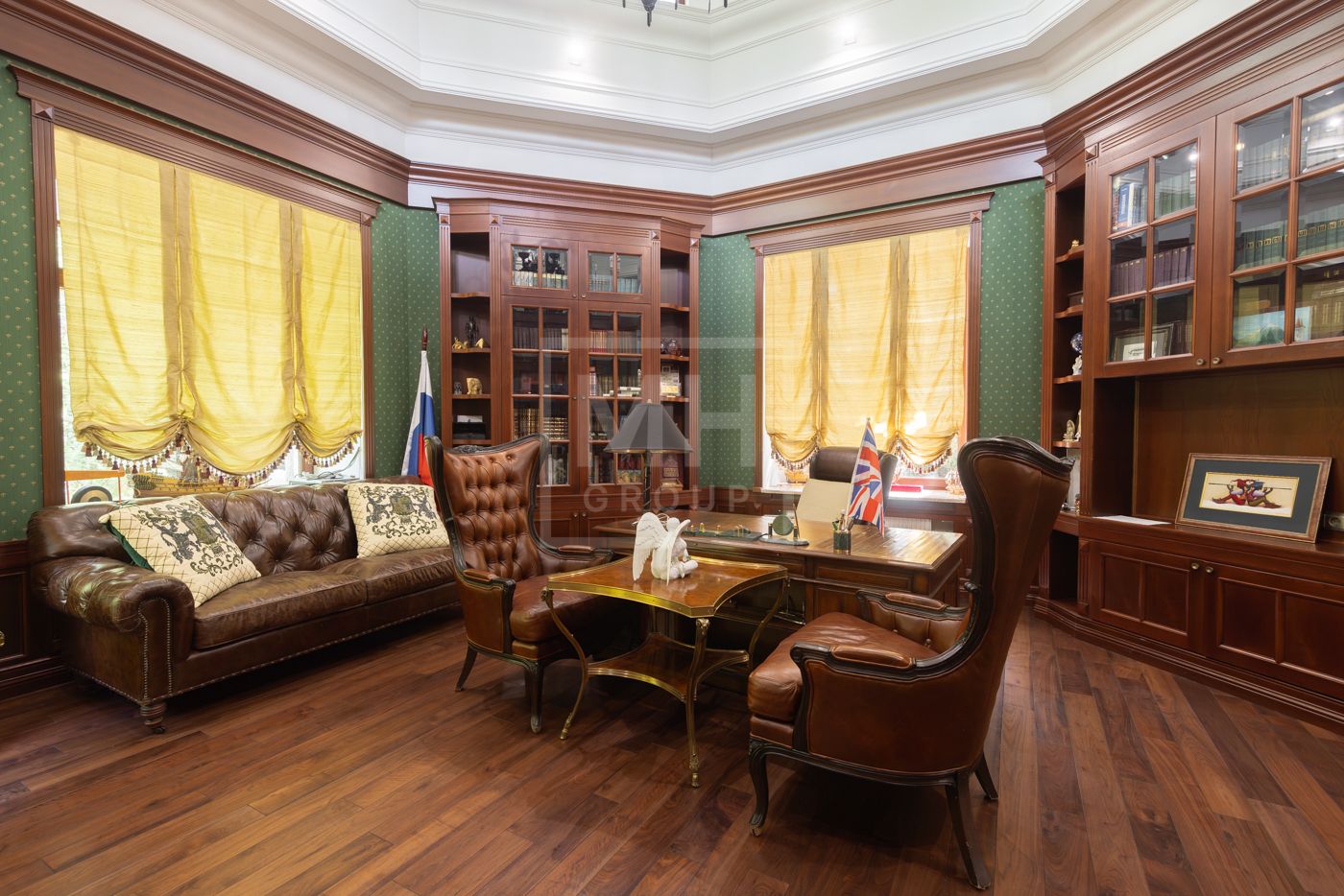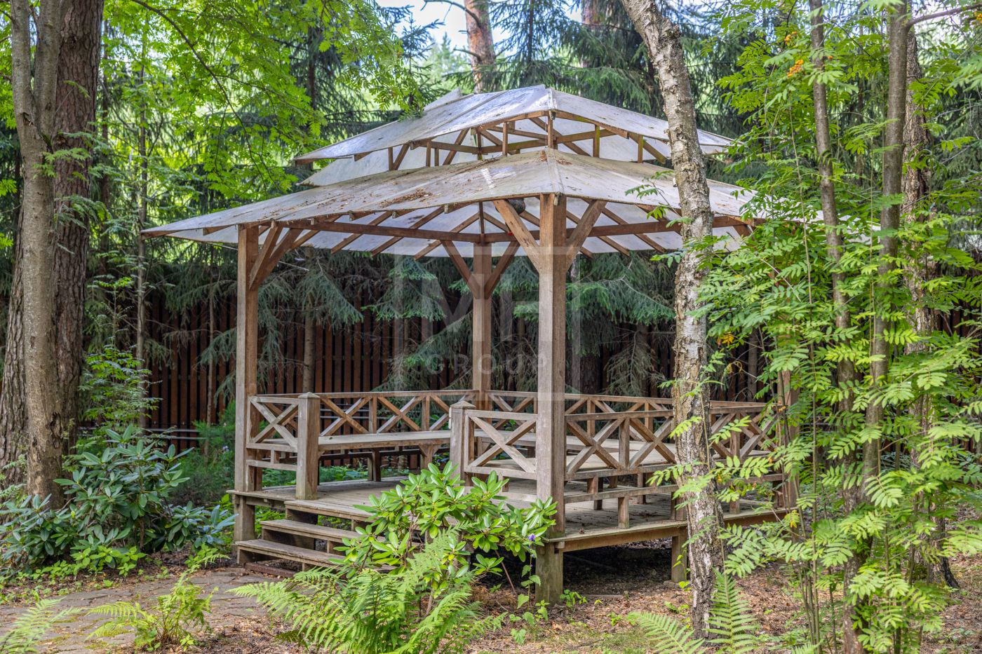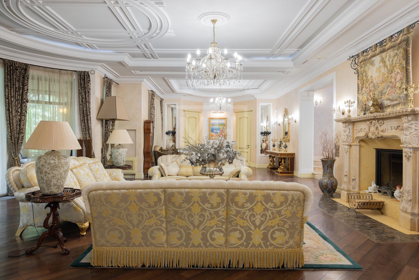 Загородная усадьба в классическом стиле на живописном лесном участке. Прекрасное расположение в самом поселке: в тихой тупиковой улице, рядом выход в охраняемый лесной массив.