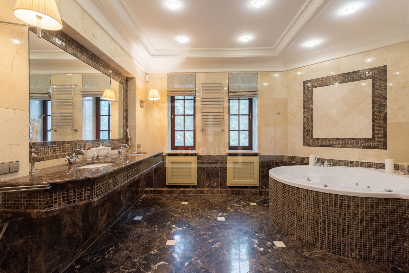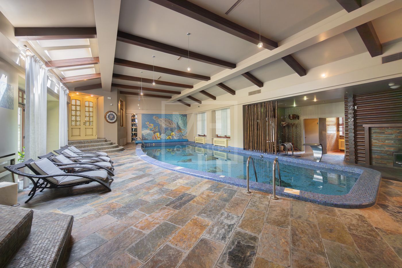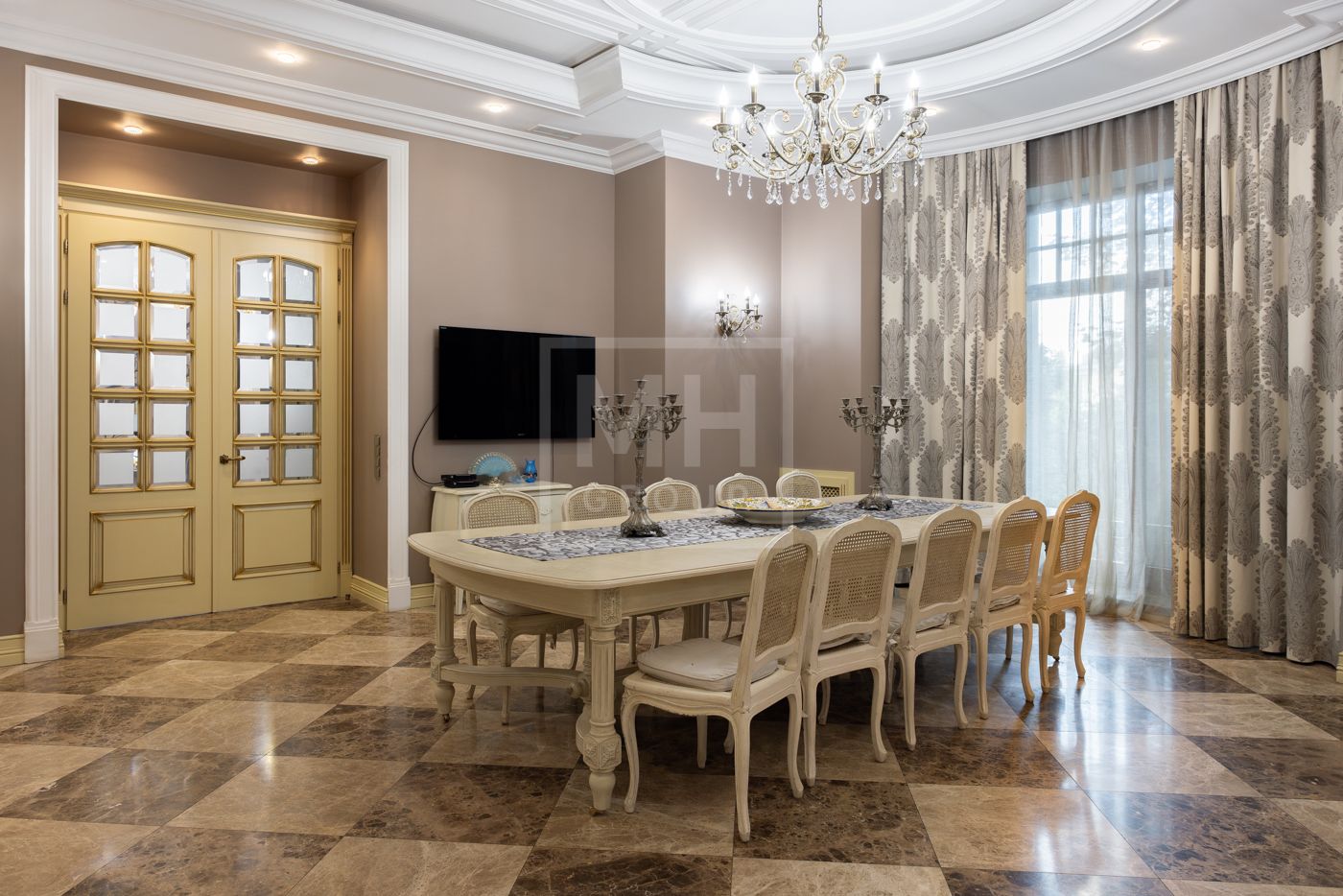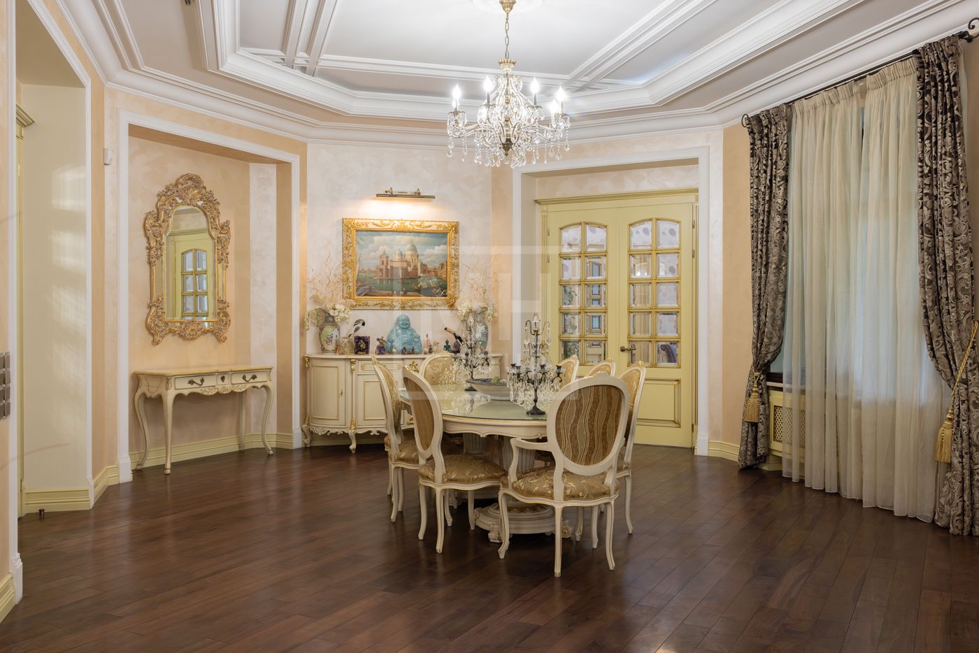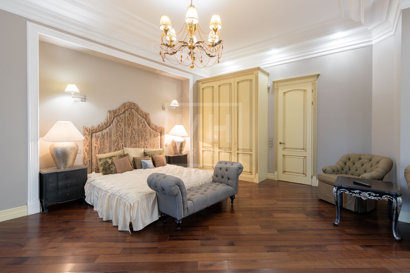 Загородная усадьба в классическом стиле на живописном лесном участке. Прекрасное расположение в самом поселке: в тихой тупиковой улице, рядом выход в охраняемый лесной массив.