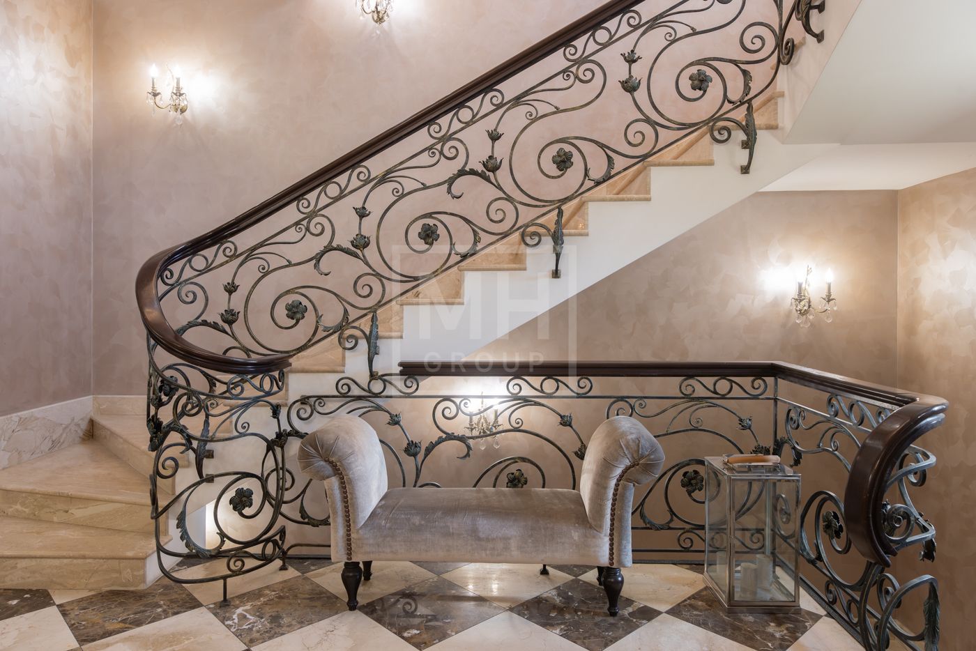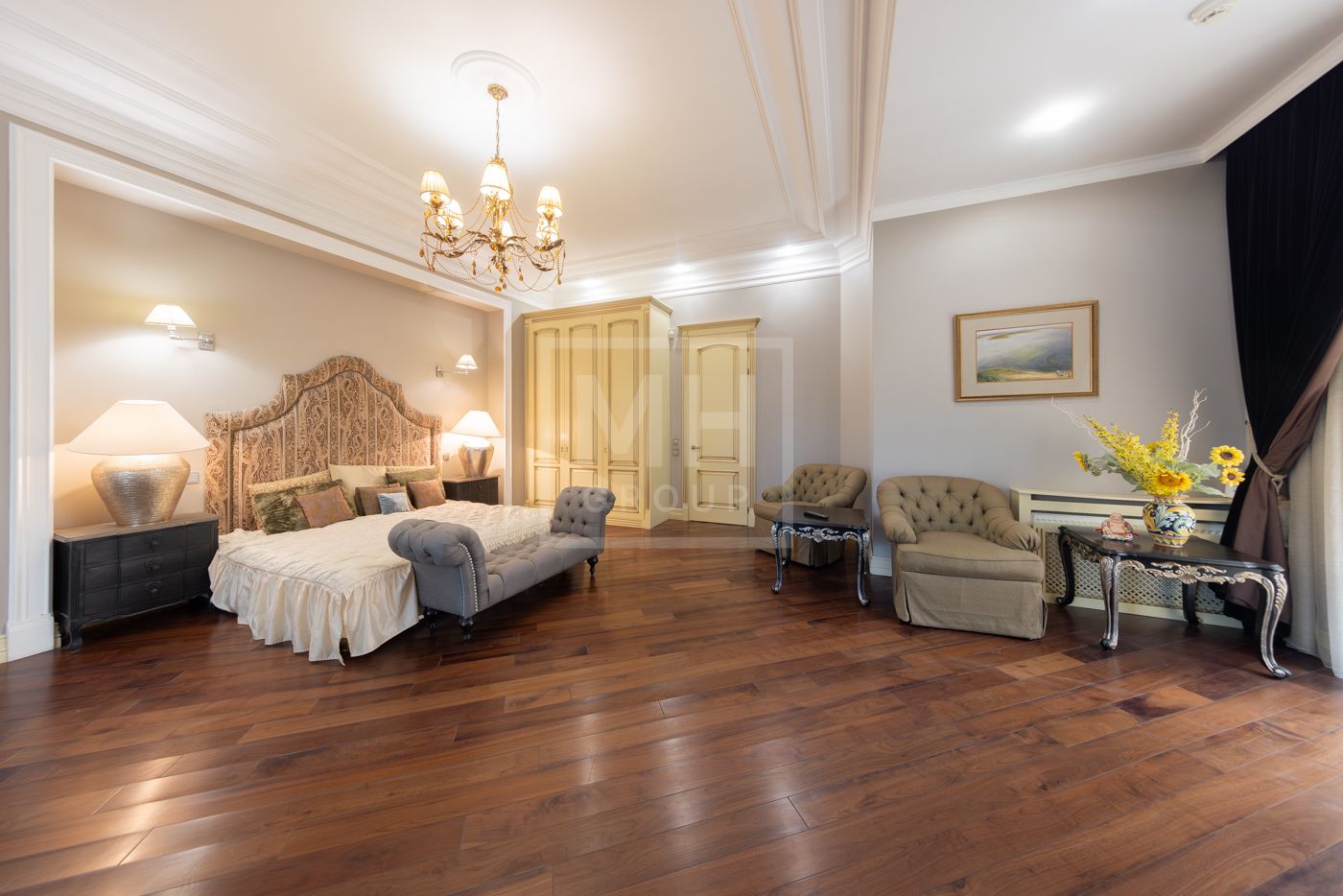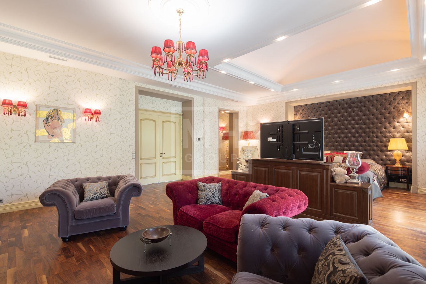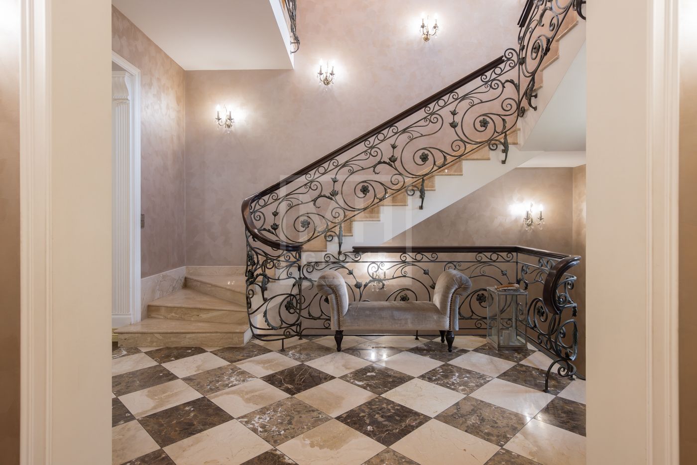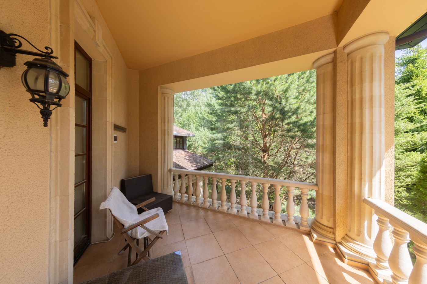 Загородная усадьба в классическом стиле на живописном лесном участке. Прекрасное расположение в самом поселке: в тихой тупиковой улице, рядом выход в охраняемый лесной массив.