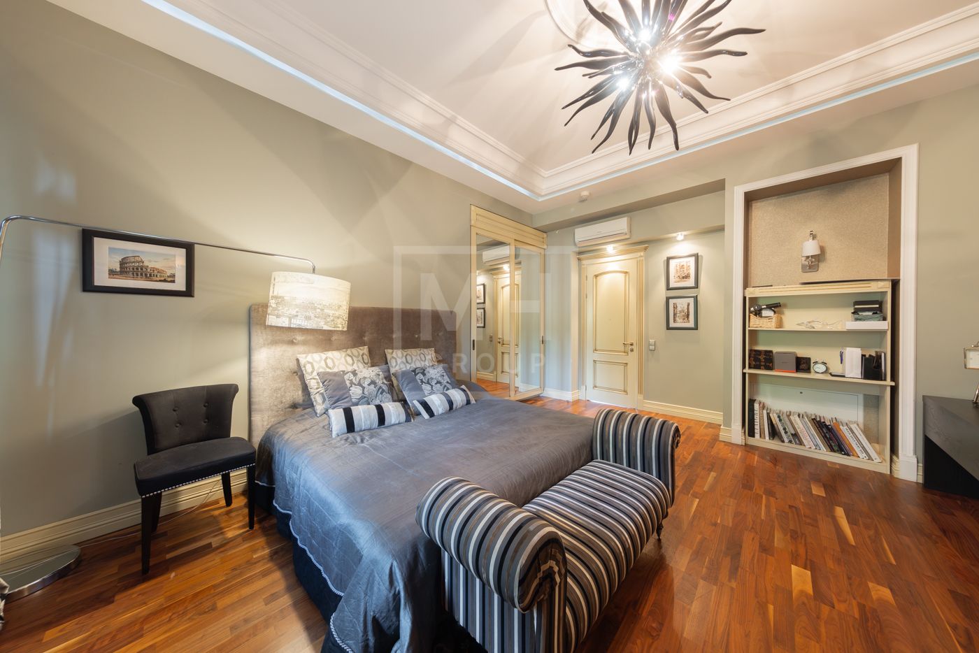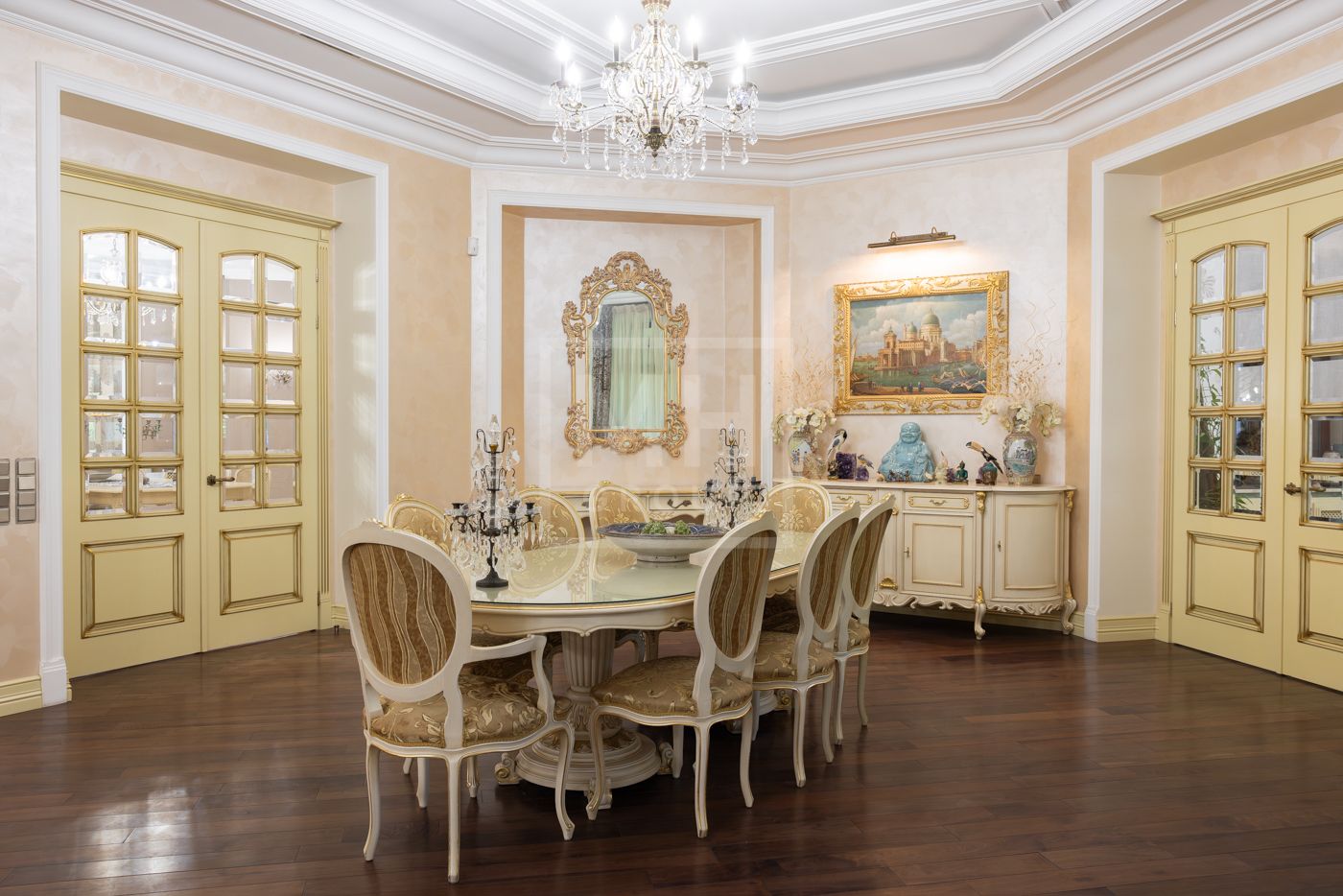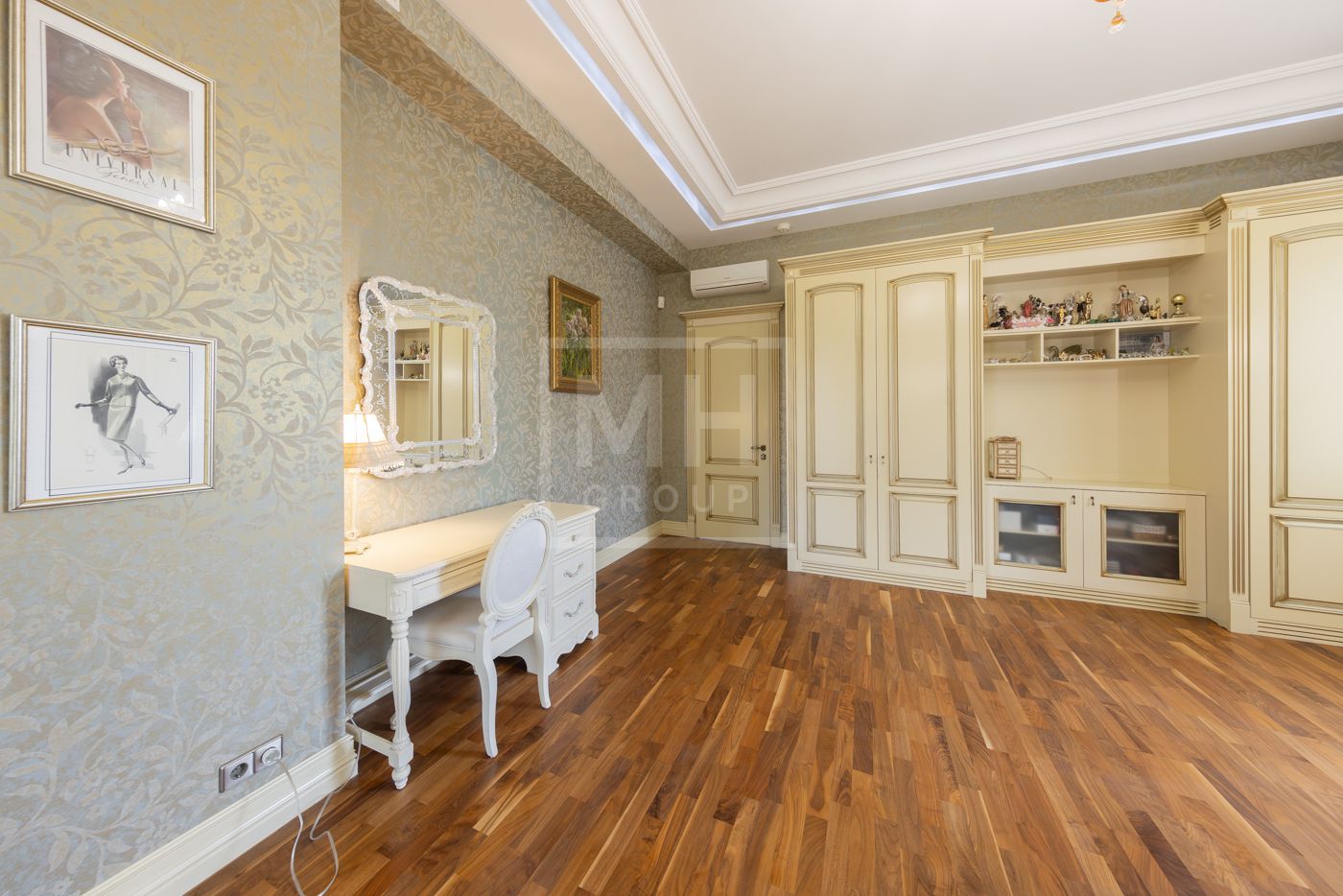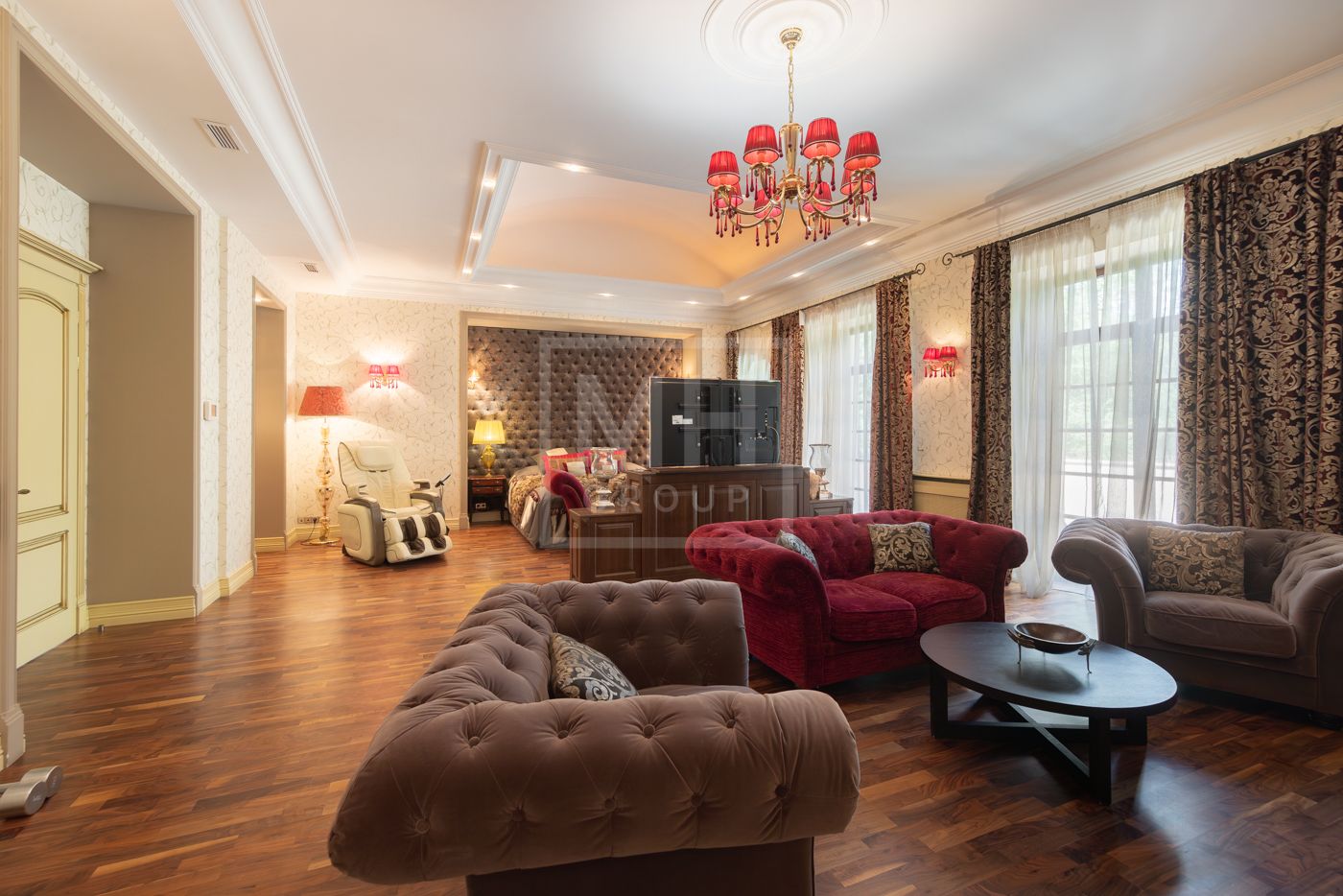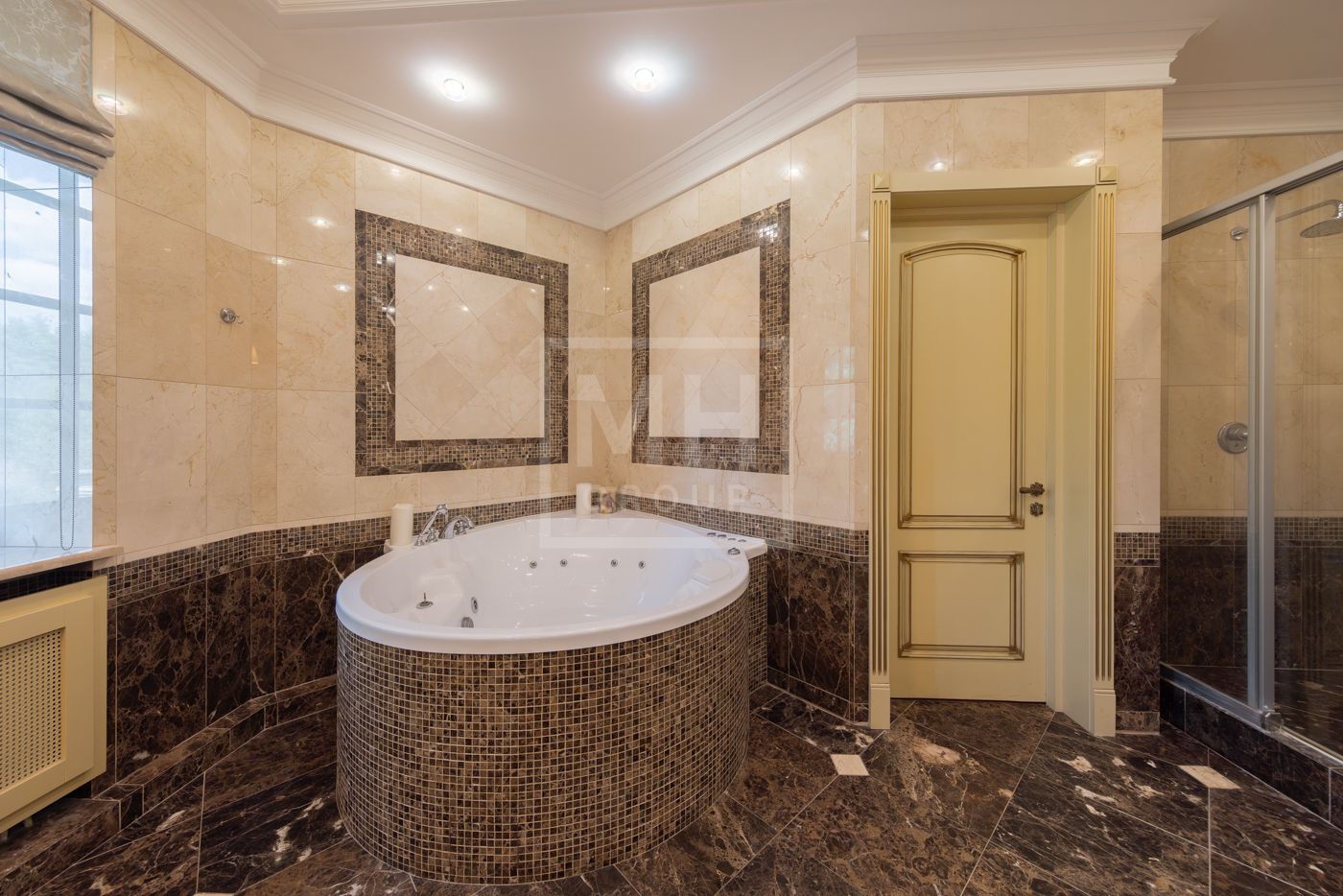 Загородная усадьба в классическом стиле на живописном лесном участке. Прекрасное расположение в самом поселке: в тихой тупиковой улице, рядом выход в охраняемый лесной массив.