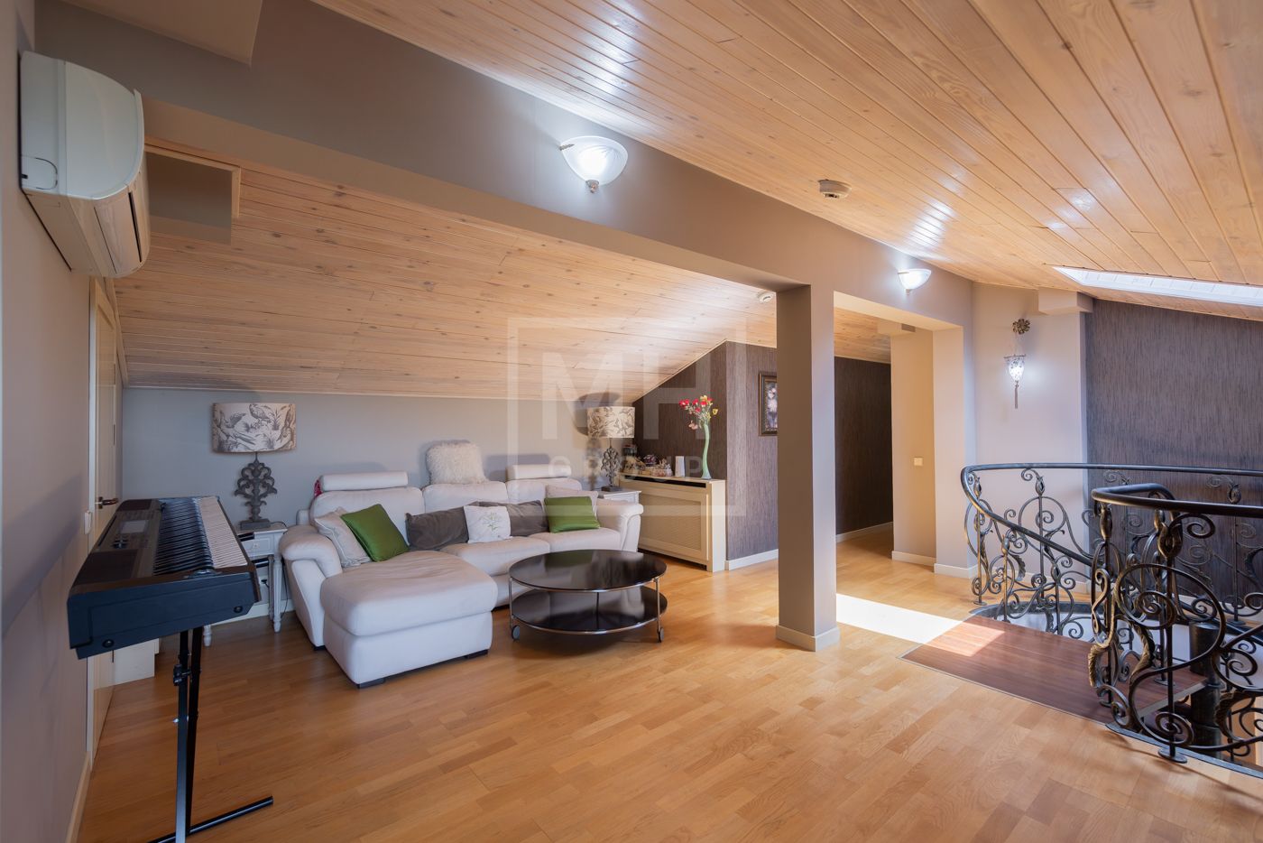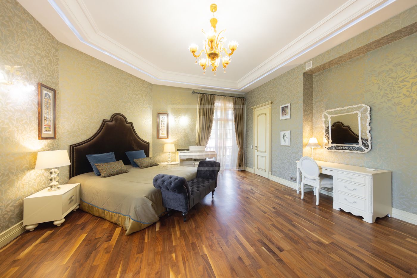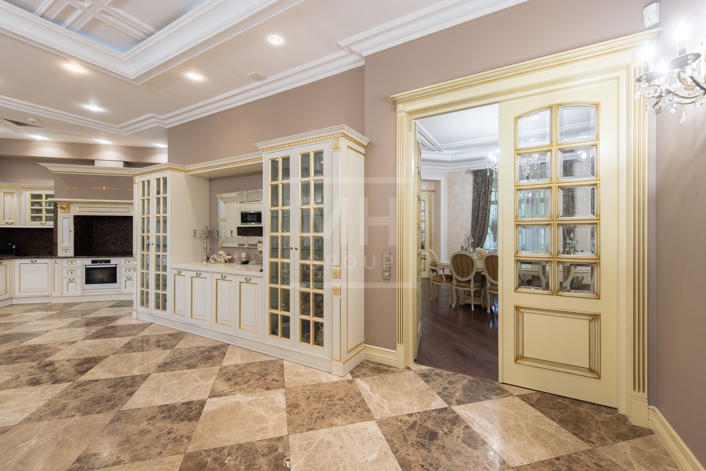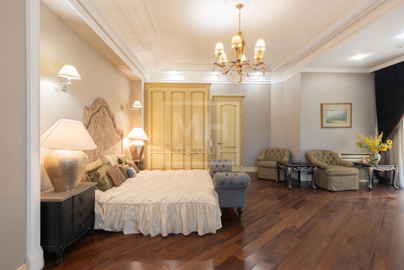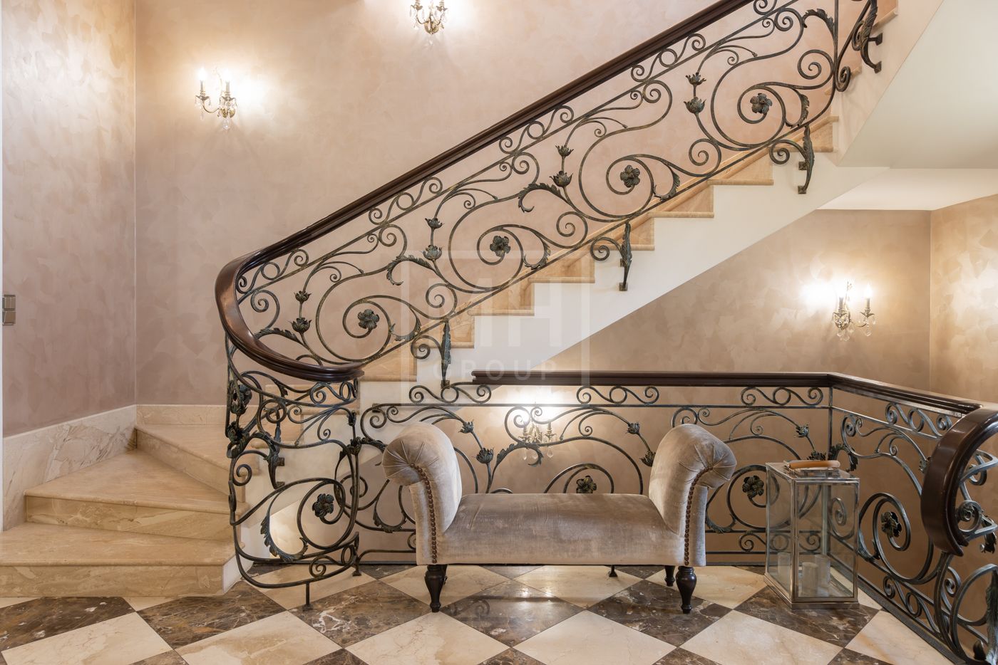 Загородная усадьба в классическом стиле на живописном лесном участке. Прекрасное расположение в самом поселке: в тихой тупиковой улице, рядом выход в охраняемый лесной массив.