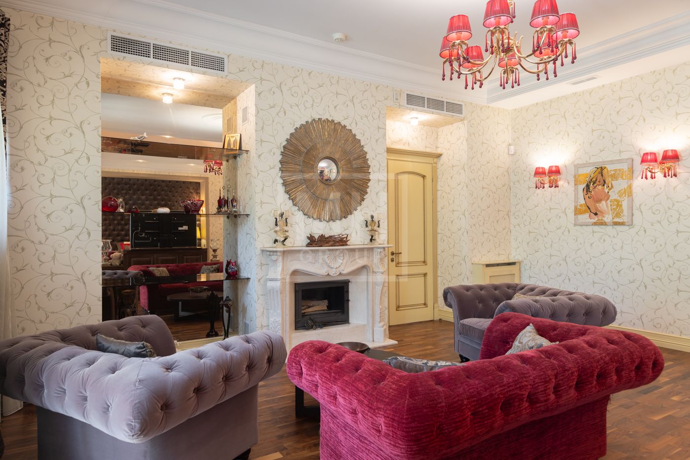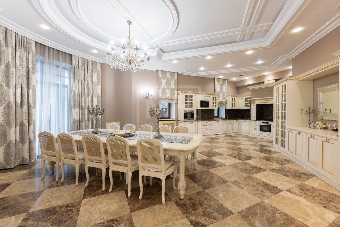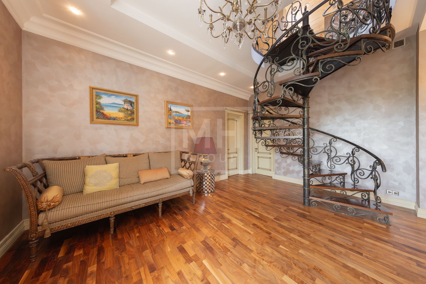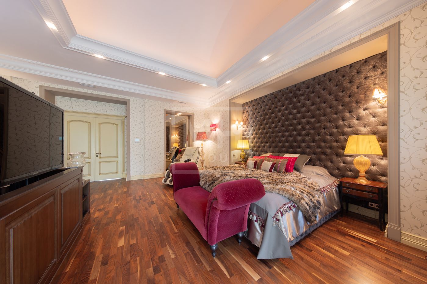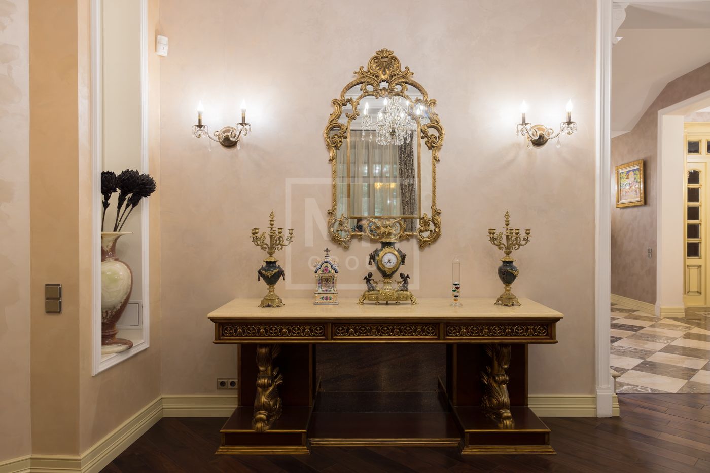 Загородная усадьба в классическом стиле на живописном лесном участке. Прекрасное расположение в самом поселке: в тихой тупиковой улице, рядом выход в охраняемый лесной массив.