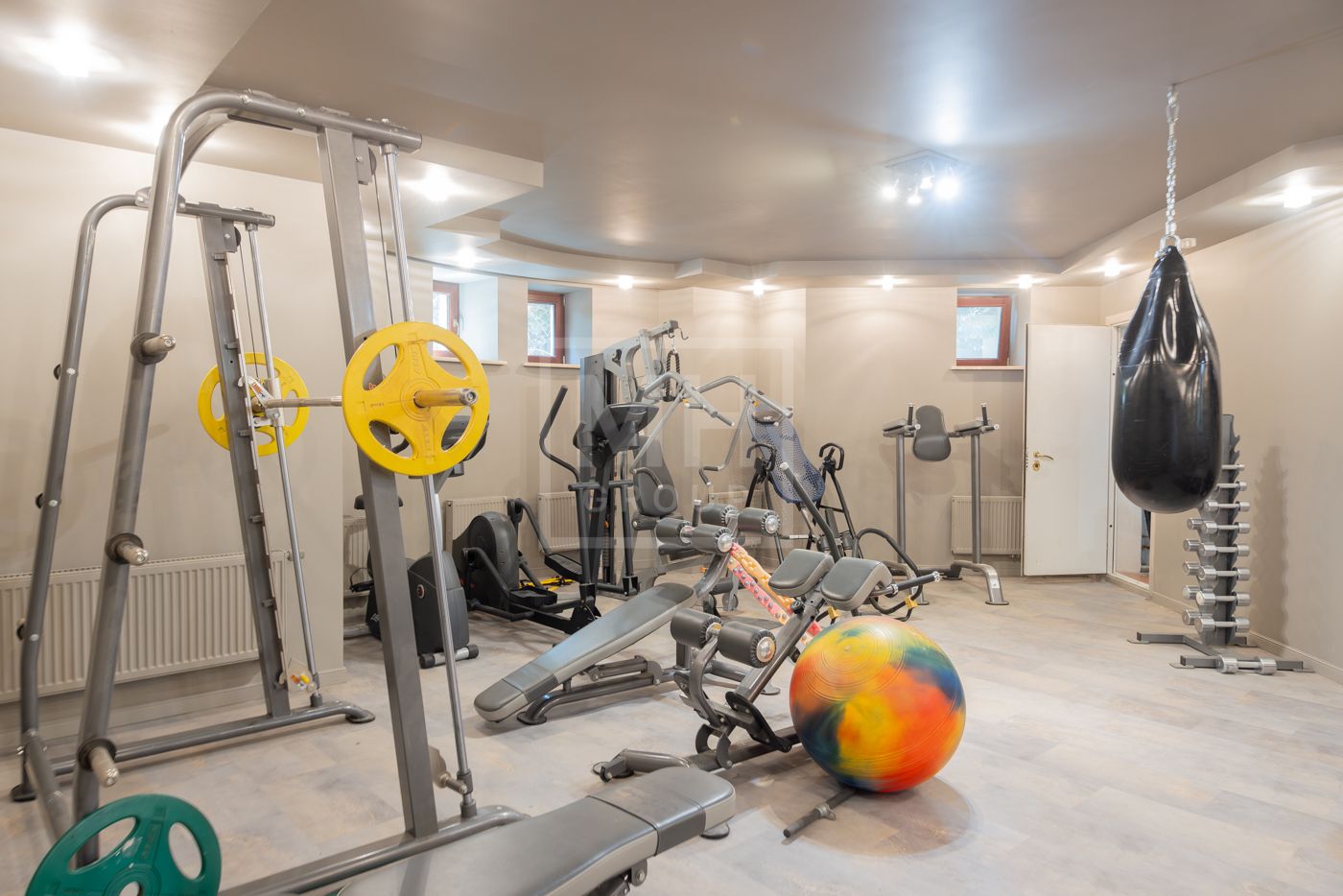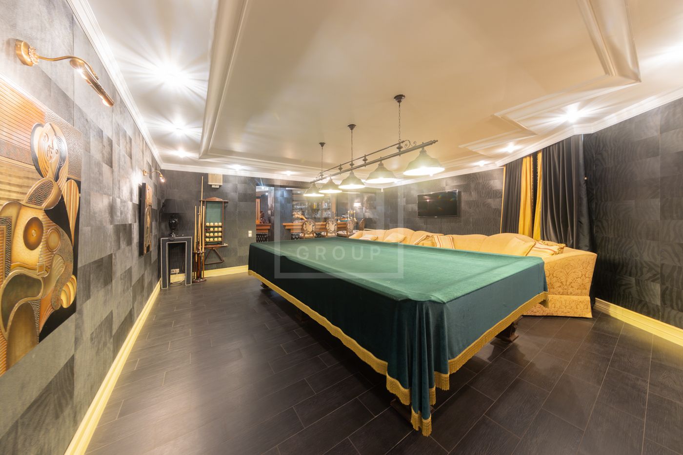 Цоколь: домашний кинотеатр, бильярдная, винная комната, барная, тренажерный зал, котельная, кладовая, постирочная, электрощитовая.