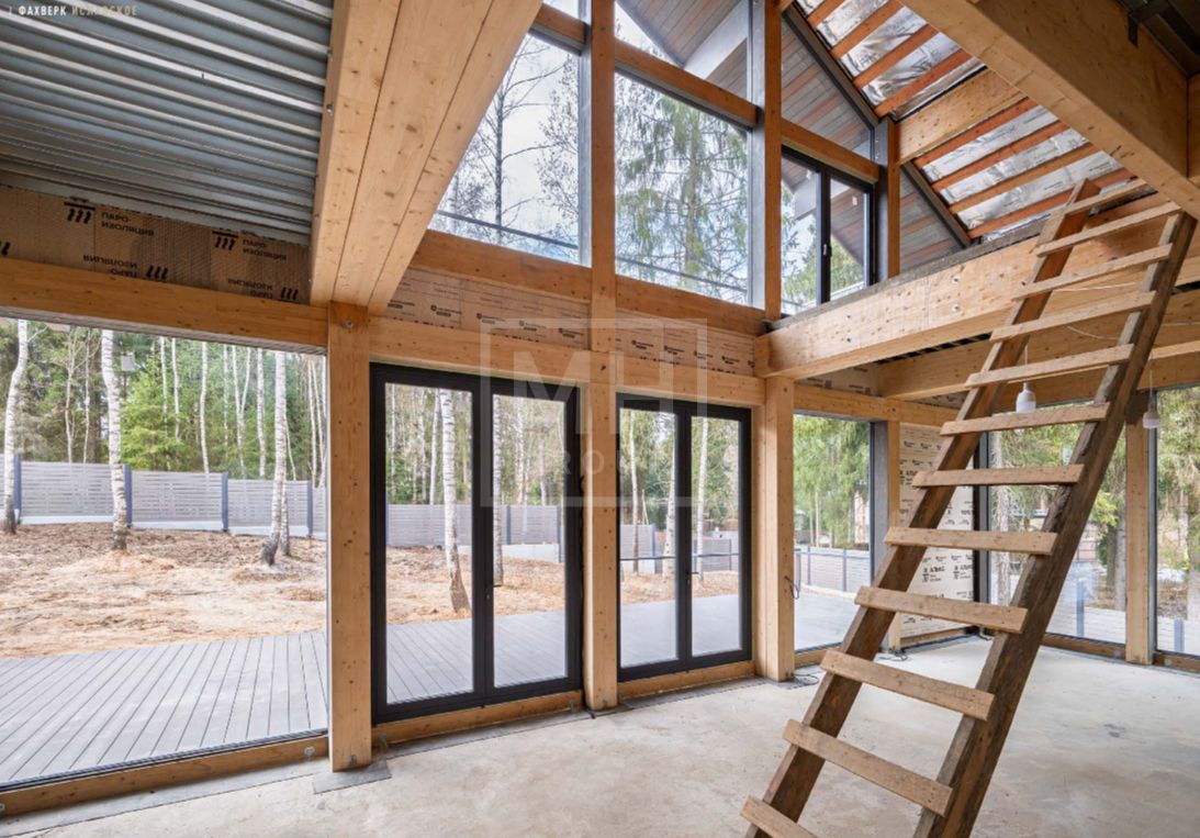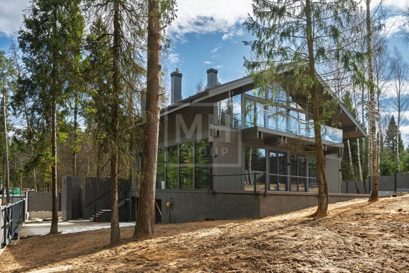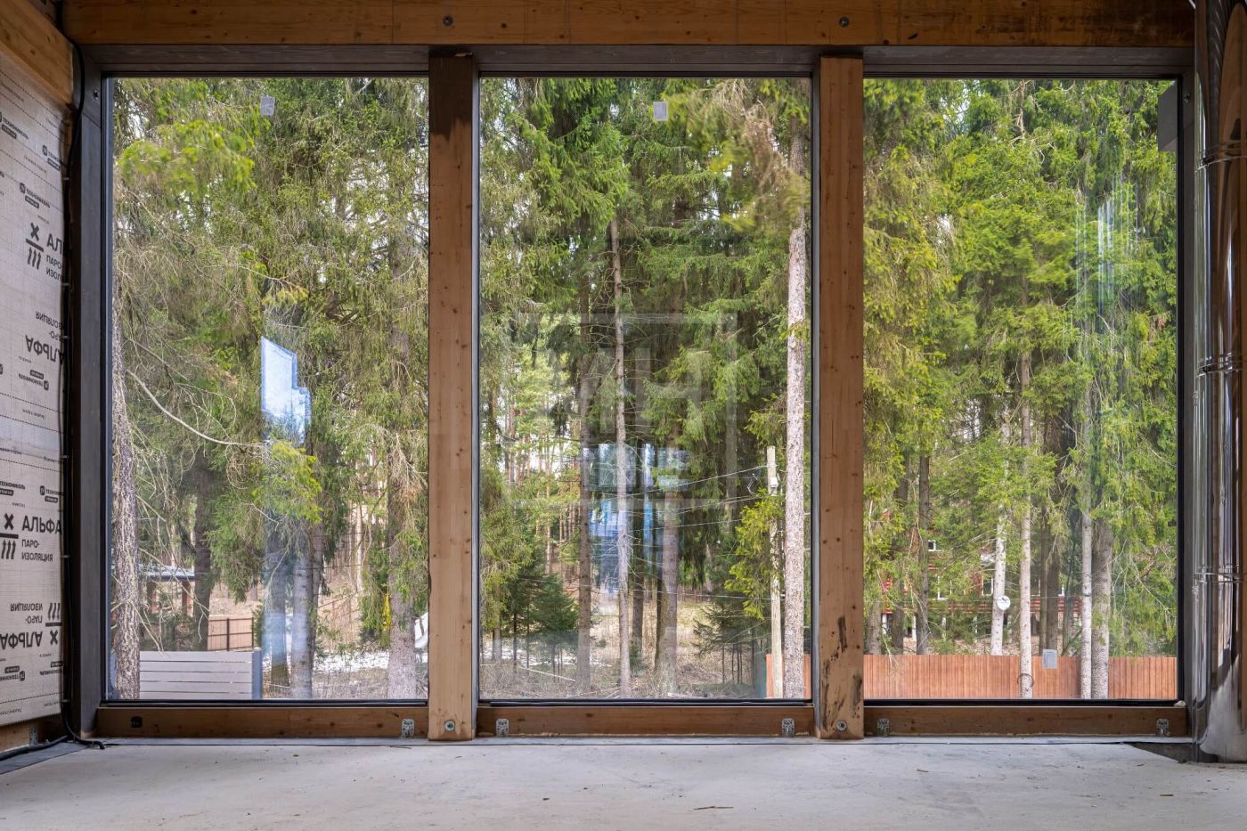 К продаже представлен модный современный фахверк с панорамными окнами, в окружении леса. Стильный проект альпийского шале 582 кв.м на лесном участке 16.5 соток, в жилом поселке с вековыми деревьями. Премиальный дом статно вписан в естественный ландшафт участка, а большое остекление выигрышно наполняет дом светом и живописными видами, расширяя границы участка. Преимущества проекта: высокое качество строительства, продуманная по видовым параметрам посадка дома на участок, панорамные окна, высокие потолки (до 3.7м), второй свет в столовой (около 7м), террасы и балконы на две стороны, функциональная планировка. Дом построен по технологии фахверк. Использовались дорогие материалы: клееный брус с увеличенным сечением 27x30, алюминиевые окна Alutech, фальцевая кровля, монолитный цоколь, железобетонные перекрытия. Текущее состояние- "под отделку". Установлен временный котел . Выполнена вечерняя подсветка фасада. Строительная компания готова сделать отделку "под ключ". за 6-8 месяцев.