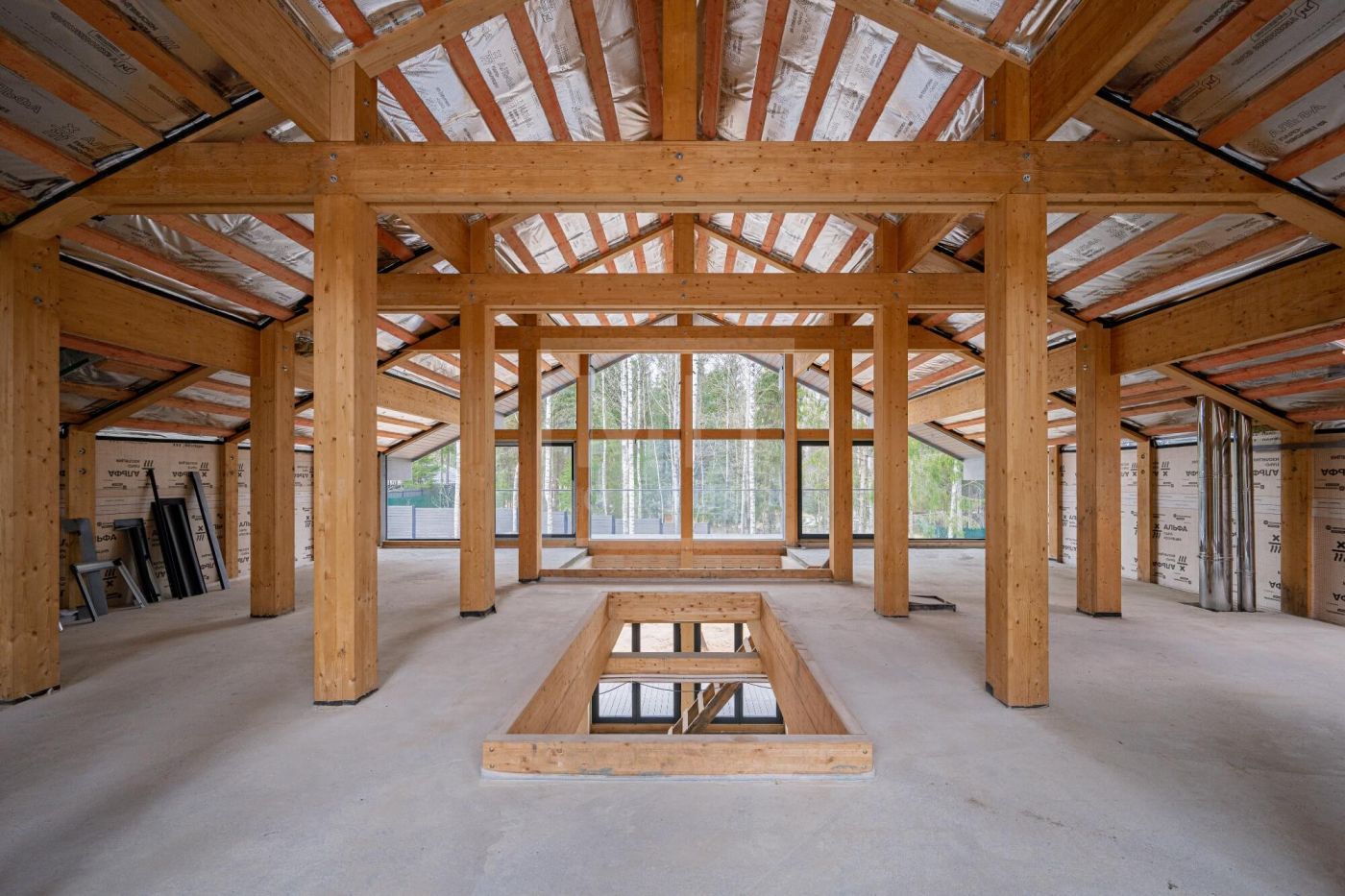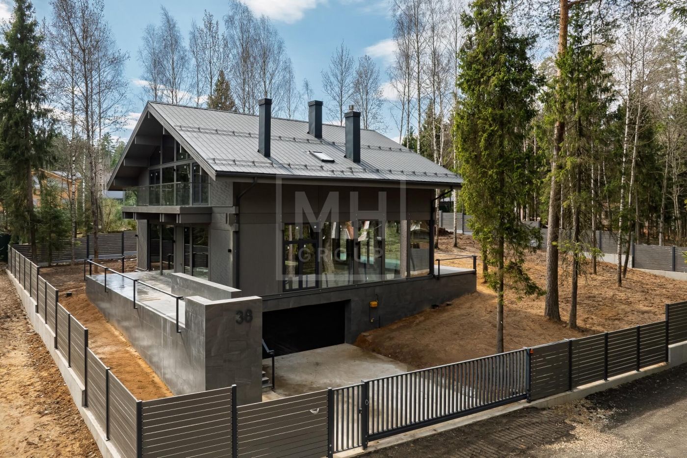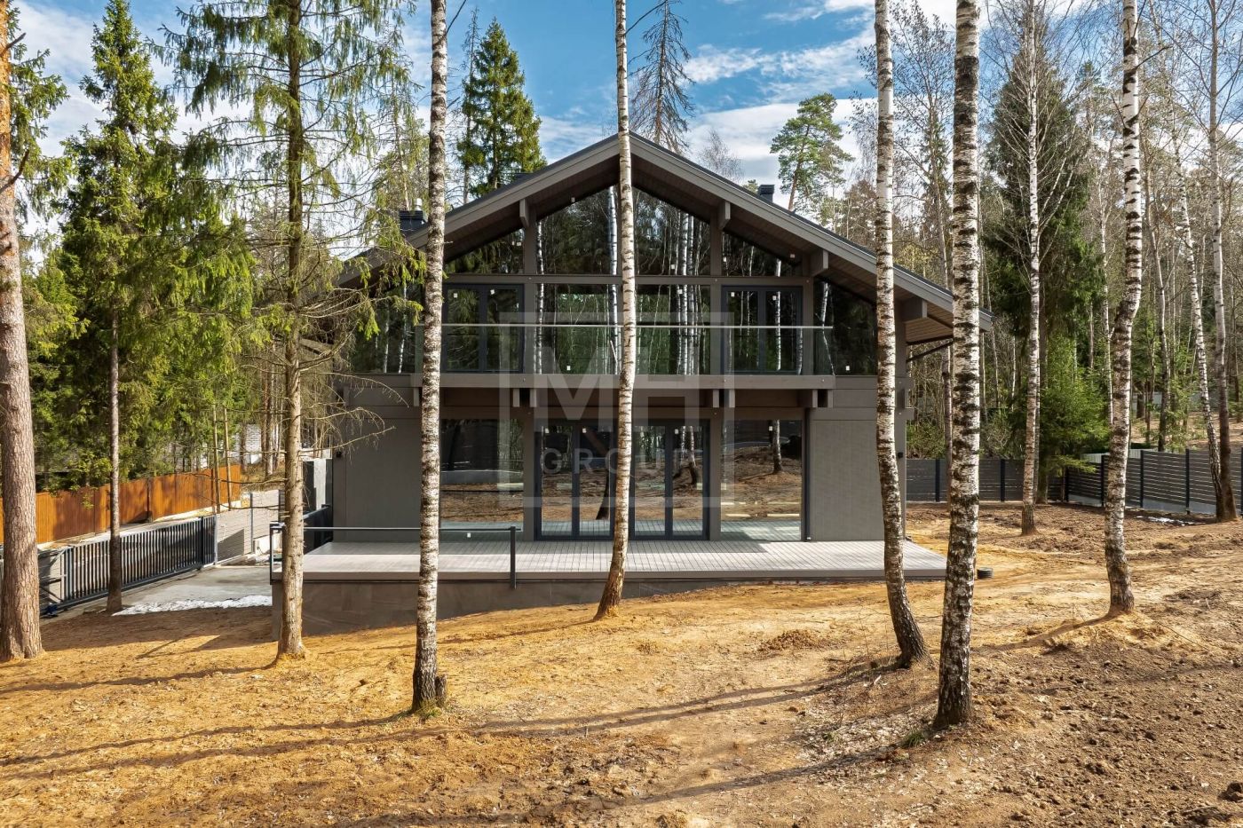 К продаже представлен модный современный фахверк с панорамными окнами, в окружении леса. Стильный проект альпийского шале 582 кв.м на лесном участке 16.5 соток, в жилом поселке с вековыми деревьями. Премиальный дом статно вписан в естественный ландшафт участка, а большое остекление выигрышно наполняет дом светом и живописными видами, расширяя границы участка. Преимущества проекта: высокое качество строительства, продуманная по видовым параметрам посадка дома на участок, панорамные окна, высокие потолки (до 3.7м), второй свет в столовой (около 7м), террасы и балконы на две стороны, функциональная планировка. Дом построен по технологии фахверк. Использовались дорогие материалы: клееный брус с увеличенным сечением 27x30, алюминиевые окна Alutech, фальцевая кровля, монолитный цоколь, железобетонные перекрытия. Текущее состояние- "под отделку". Установлен временный котел . Выполнена вечерняя подсветка фасада. Строительная компания готова сделать отделку "под ключ". за 6-8 месяцев.