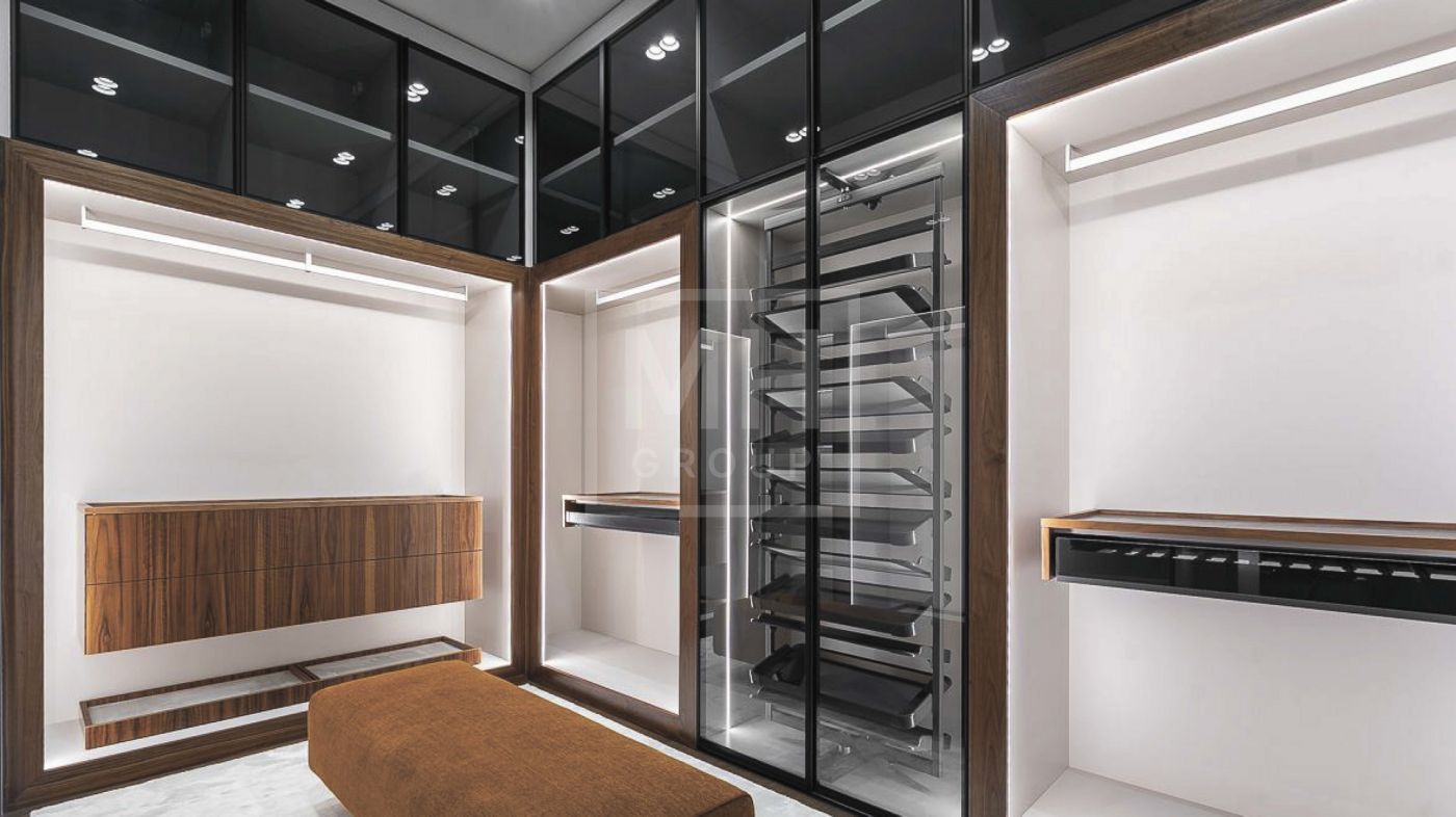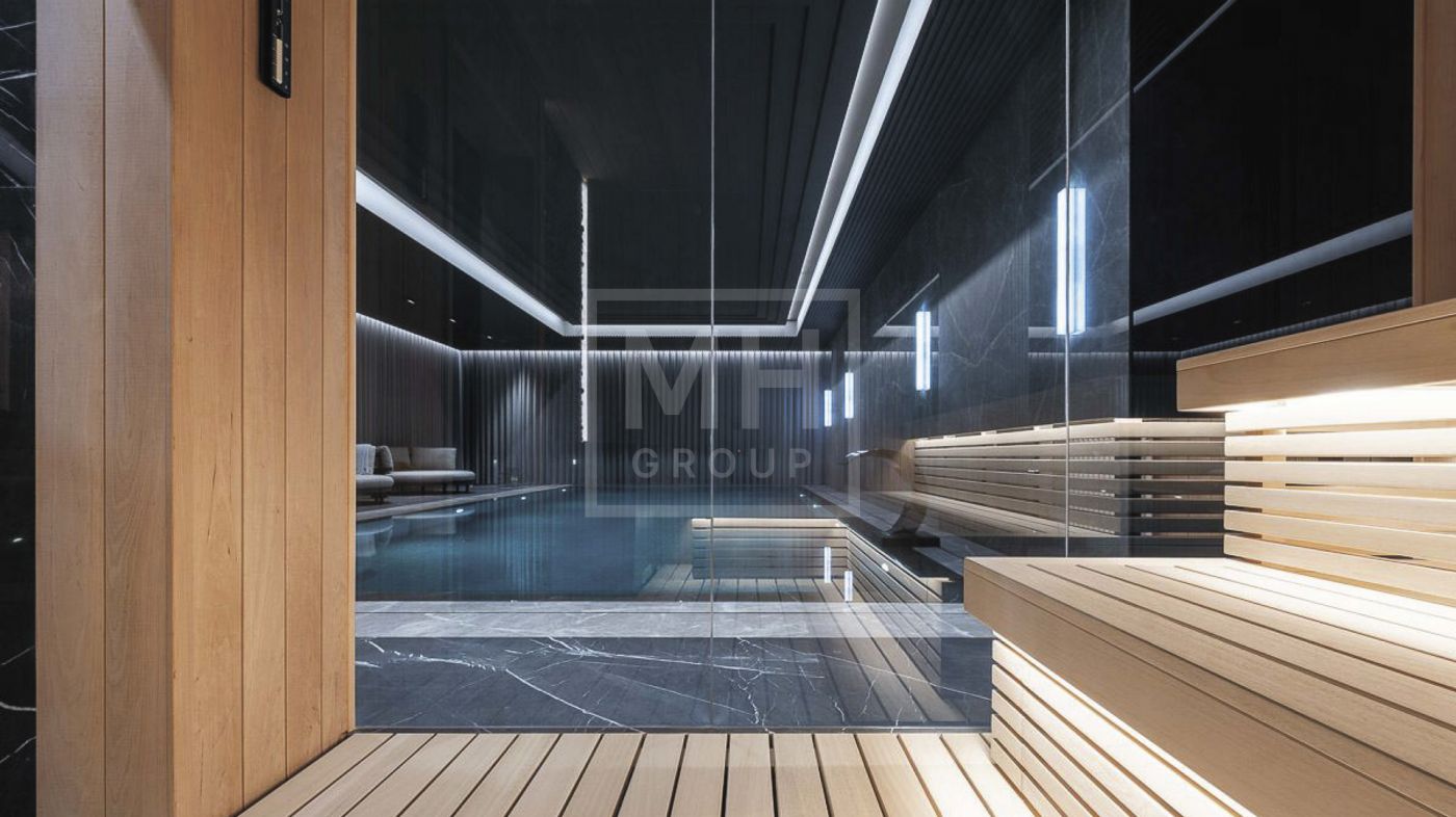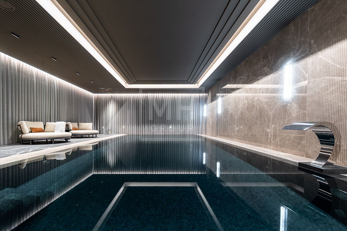 Этаж 1: Прихожая, холл, 3 санузла, гараж на 3 авто, спальня с гардеробной и санузлом, гостиная, столовая, кухня, рабочая кухня, терраса, бассейн, сауна, душевая, котельная.
