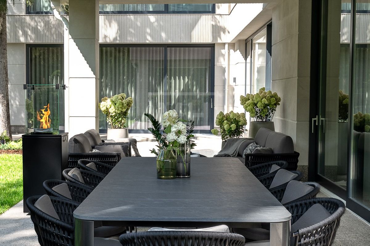 Внешнее освещение продумано до мелочей: подсветка входной группы, архитектурная подсветка фасада и ландшафтное освещение создают уютную атмосферу вечером и подчёркивают статусность объекта.
