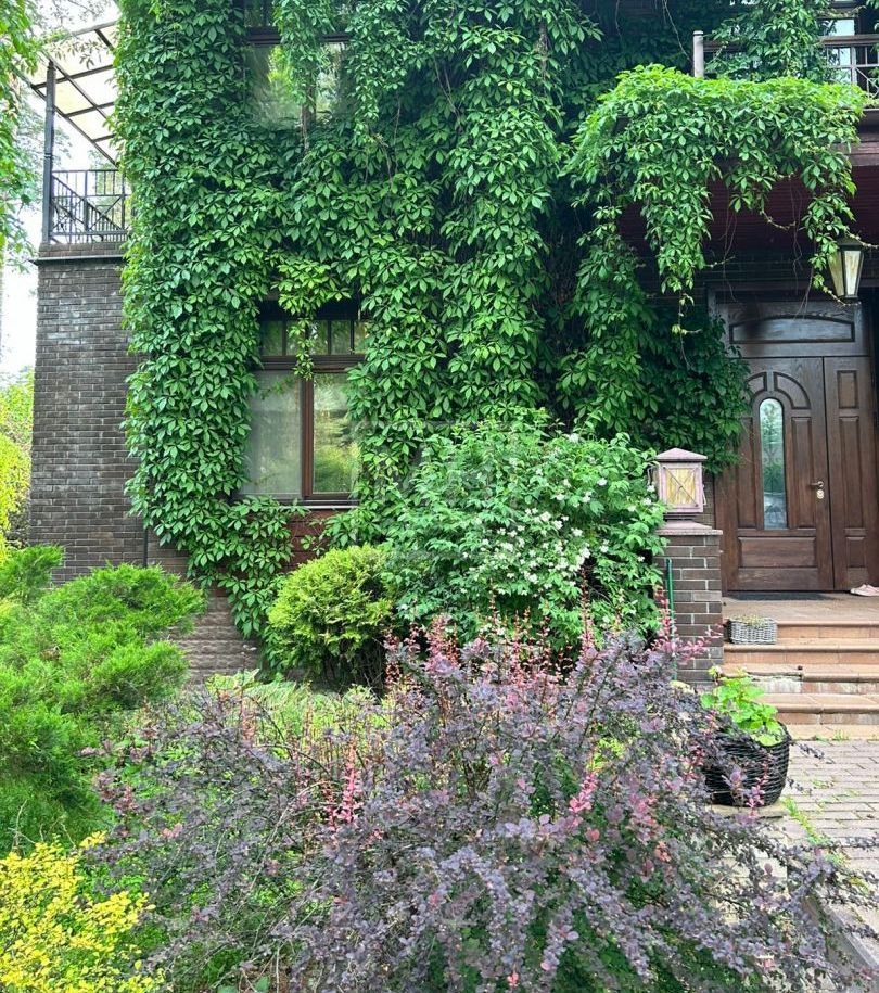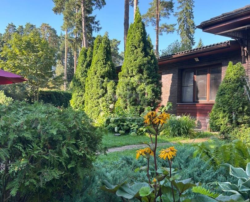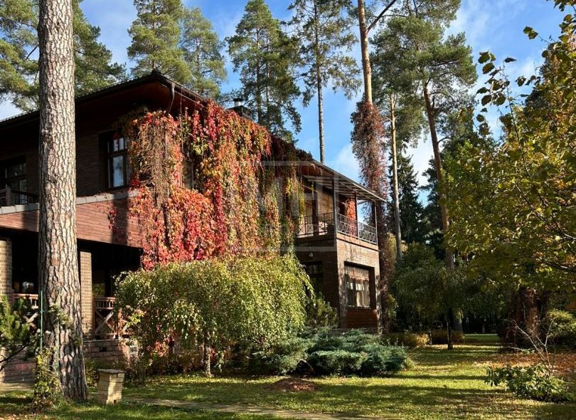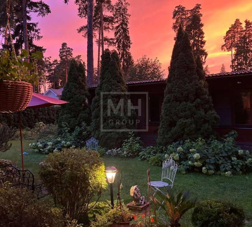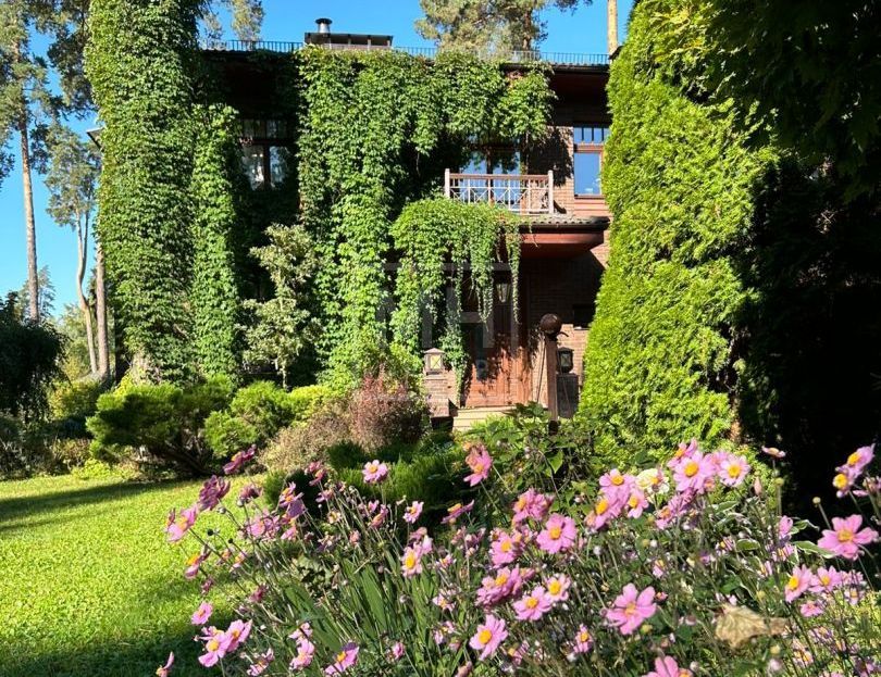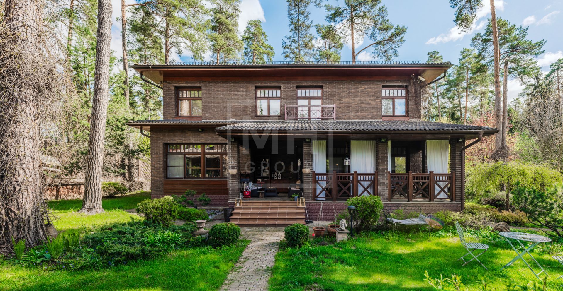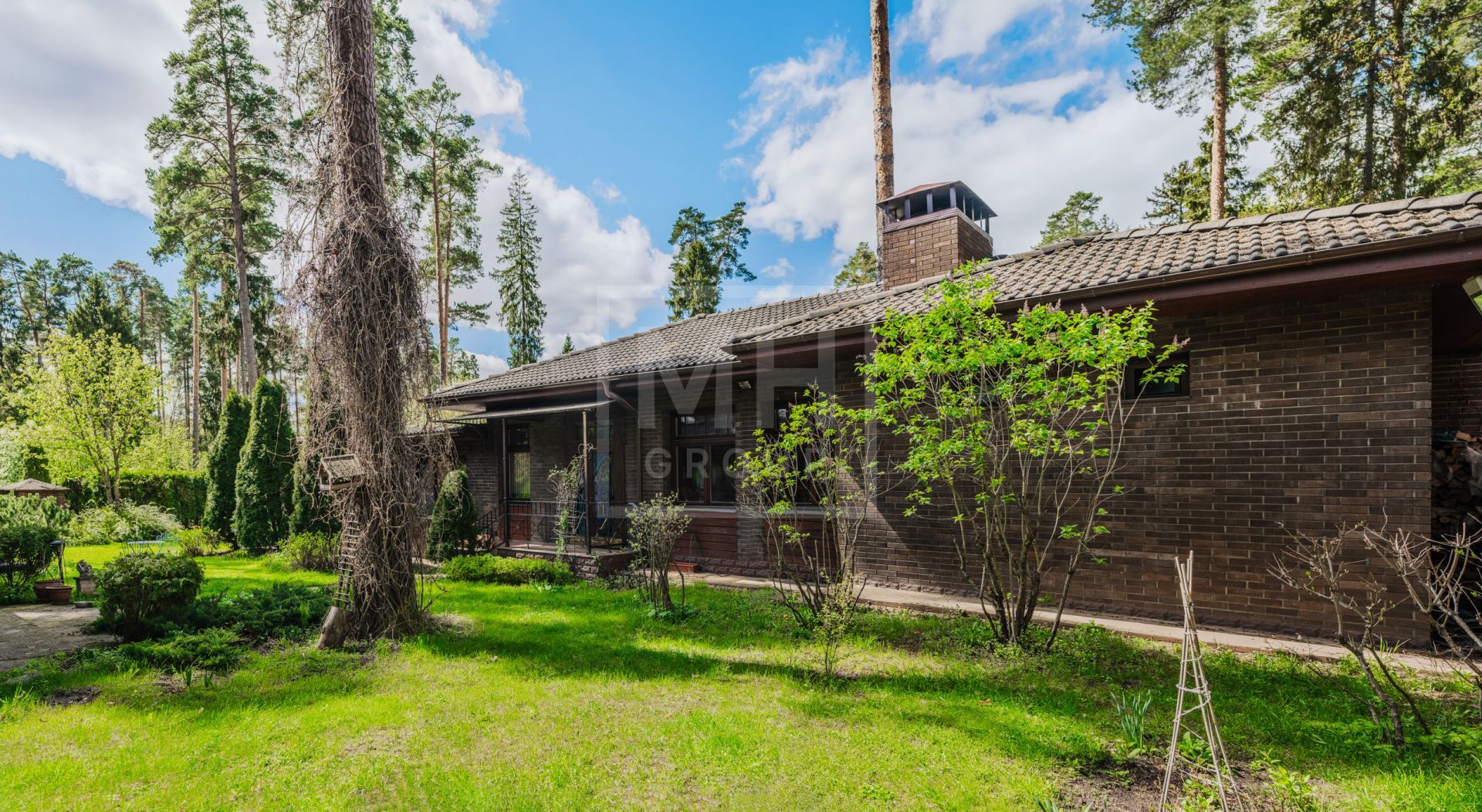 На участке с вековыми корабельными соснами и эксклюзивным ландшафтным дизайном расположен основной дом с гаражом, гостевой дом и отдельно стоящий СПА- комплекс. Респектабельное окружение, тишина. Дом построен из кирпича в архитектурном стиле Ф. Л. Райта, концептуальными особенностями которого являются - приземистость и горизонтальная направленность линий, благодаря которым ощущается единство и гармония с природой. Планировки дома функциональные и комфортные для жизни. Ощущение пространства дарит просторная гостиная с камином и выходом на открытую террасу, предназначенную для семейных посиделок или отдыха с друзьями. Кухня, оборудованная современной техникой и дизайнерской мебелью, граничит с уютной столовой. На первом этаже есть спальня со своим выходом на участок.Широкая лестница, ведущая на второй этаж, имеет комфортный шаг ступеней. Поднявшись на второй этаж мы попадаем в библиотеку с диваном, креслами и выходом на балкон. По обе стороны от библиотеки располагаются спальни: две спальни с с/у и гардеробными, мастер- блок с двумя гардеробными, будуаром, балконом, кабинетом, с/у с ванной и душем. Цокольный этаж предназначен для отдыха, спорта и сезонного хранения вещей. В оформлении дома использованы качественные натуральные материалы, винтажные элементы декора и мебели.В приватной части участка расположен СПА-комплекс, включающий в себя бассейн, просторную парную, купель с душевыми, зону отдыха и полноценную кухню. Во внутренней отделке СПА- зоны использованы натуральное дерево и керамическая мозаика.