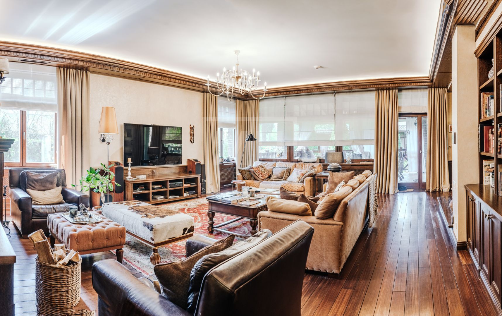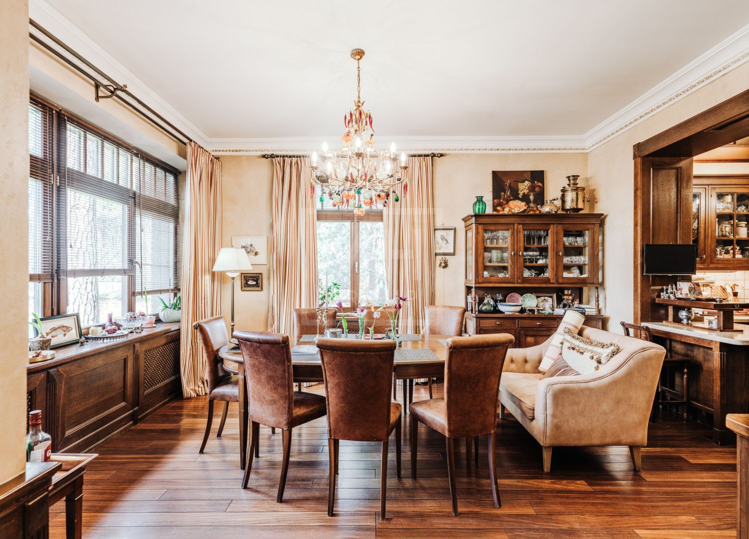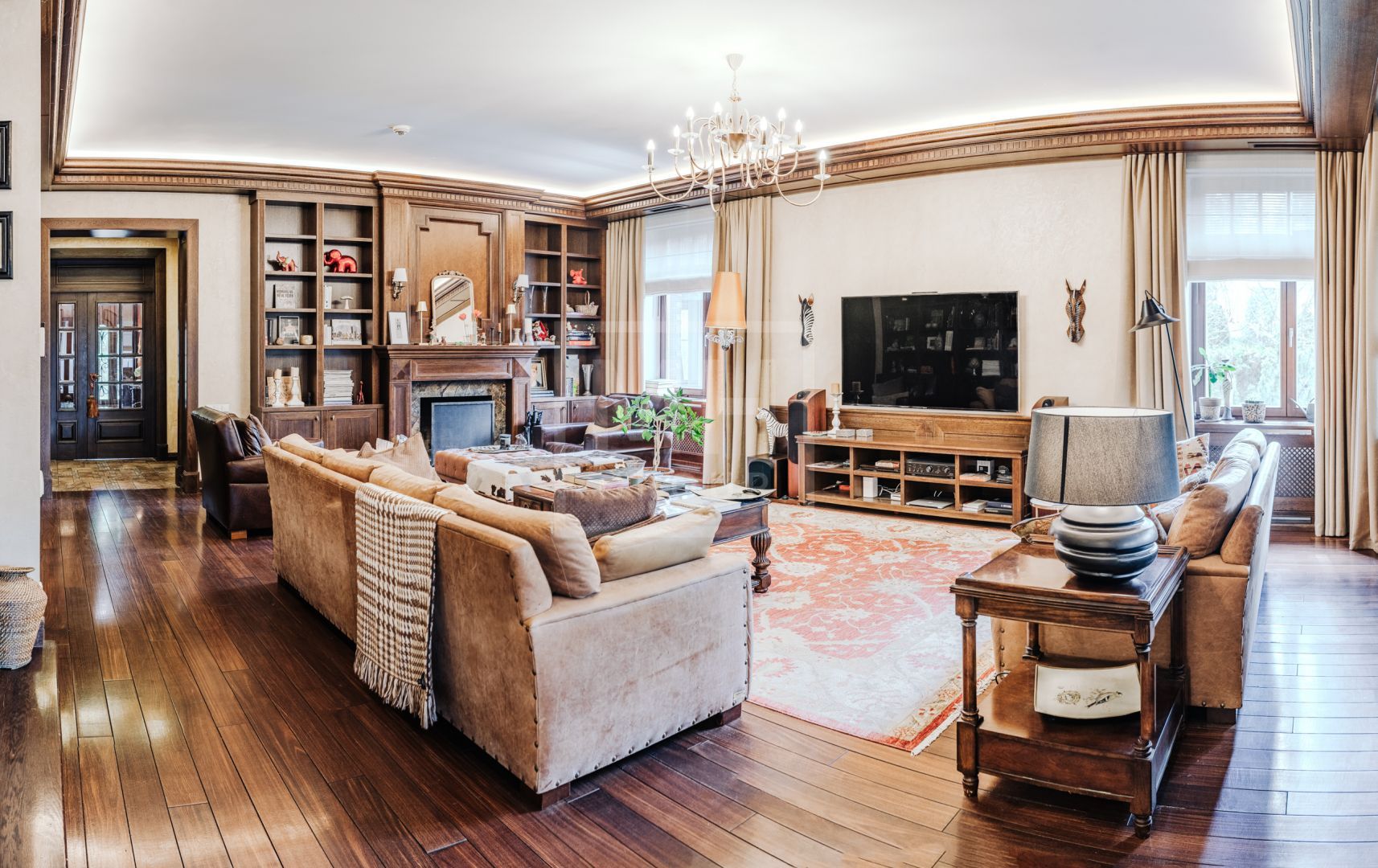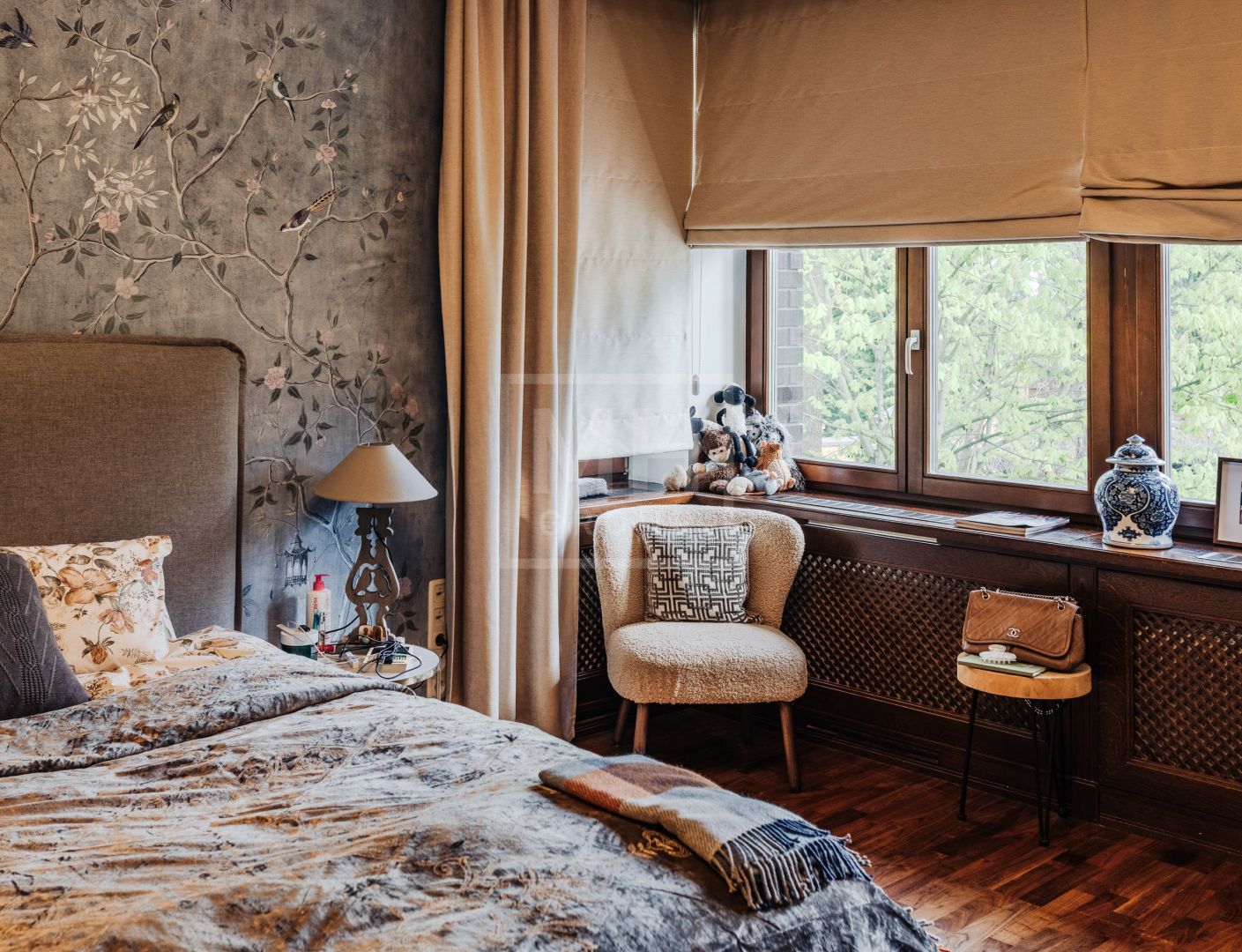 На участке с вековыми корабельными соснами и эксклюзивным ландшафтным дизайном расположен основной дом с гаражом, гостевой дом и отдельно стоящий СПА- комплекс. Респектабельное окружение, тишина. Дом построен из кирпича в архитектурном стиле Ф. Л. Райта, концептуальными особенностями которого являются - приземистость и горизонтальная направленность линий, благодаря которым ощущается единство и гармония с природой. Планировки дома функциональные и комфортные для жизни. Ощущение пространства дарит просторная гостиная с камином и выходом на открытую террасу, предназначенную для семейных посиделок или отдыха с друзьями. Кухня, оборудованная современной техникой и дизайнерской мебелью, граничит с уютной столовой. На первом этаже есть спальня со своим выходом на участок.Широкая лестница, ведущая на второй этаж, имеет комфортный шаг ступеней. Поднявшись на второй этаж мы попадаем в библиотеку с диваном, креслами и выходом на балкон. По обе стороны от библиотеки располагаются спальни: две спальни с с/у и гардеробными, мастер- блок с двумя гардеробными, будуаром, балконом, кабинетом, с/у с ванной и душем. Цокольный этаж предназначен для отдыха, спорта и сезонного хранения вещей. В оформлении дома использованы качественные натуральные материалы, винтажные элементы декора и мебели.В приватной части участка расположен СПА-комплекс, включающий в себя бассейн, просторную парную, купель с душевыми, зону отдыха и полноценную кухню. Во внутренней отделке СПА- зоны использованы натуральное дерево и керамическая мозаика.