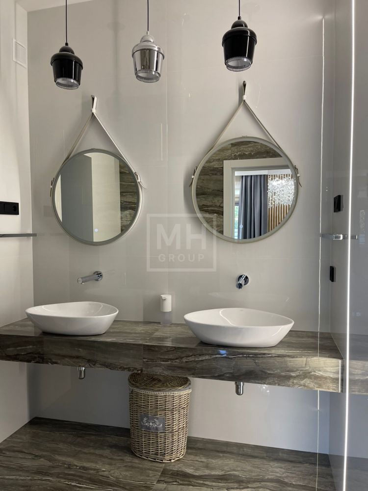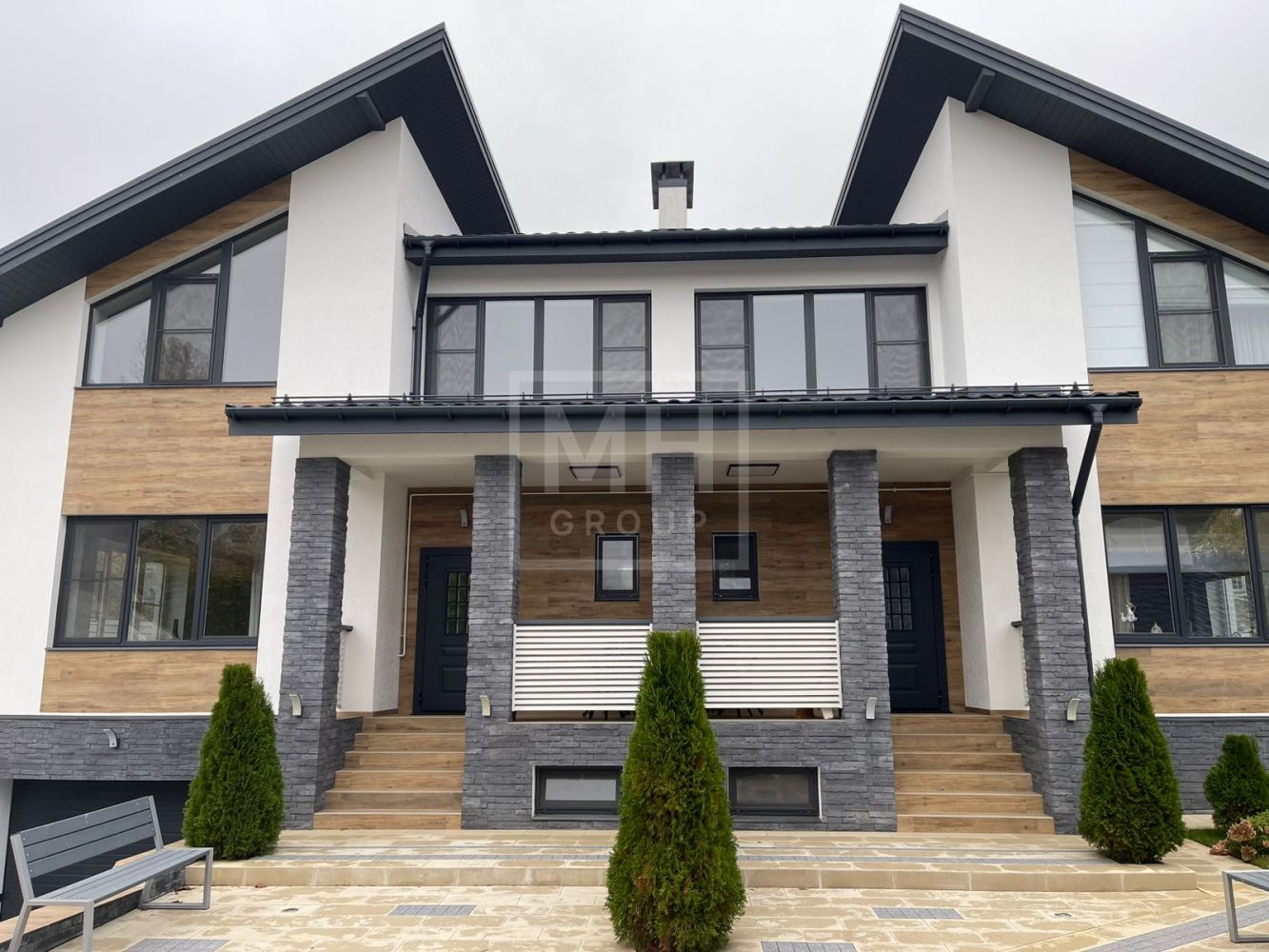 К продаже предлагается загородный дом-дуплекс, с двумя отдельными выходами, с отделкой под ключ в поселке Петрово-Дальнее. Площадь частей дуплекса 220 кв.м. и 180 кв.м. Дом с качественным ремонтом и продуманной планировкой. В отделке использовались качественные материалы, дом укомплектован мебелью. В доме на цокольном этаже расположен гараж площадью 230 кв.м. и вмещает 8 автомобилей. Участок правильной формы с ландшафтным дизайном, на территории расположен гостевой дом с качественным ремонтом и мебелью (с коммуникациями).Планировки: