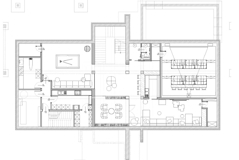Цоколь: Кинотеатр, бильярдная, бар, винный погреб, рабочая кухня, гардеробная, с/у, постирочная, кладовая, бойлерная