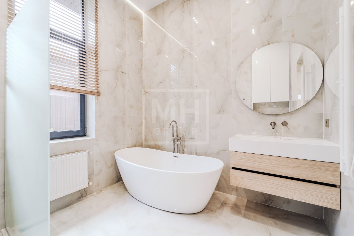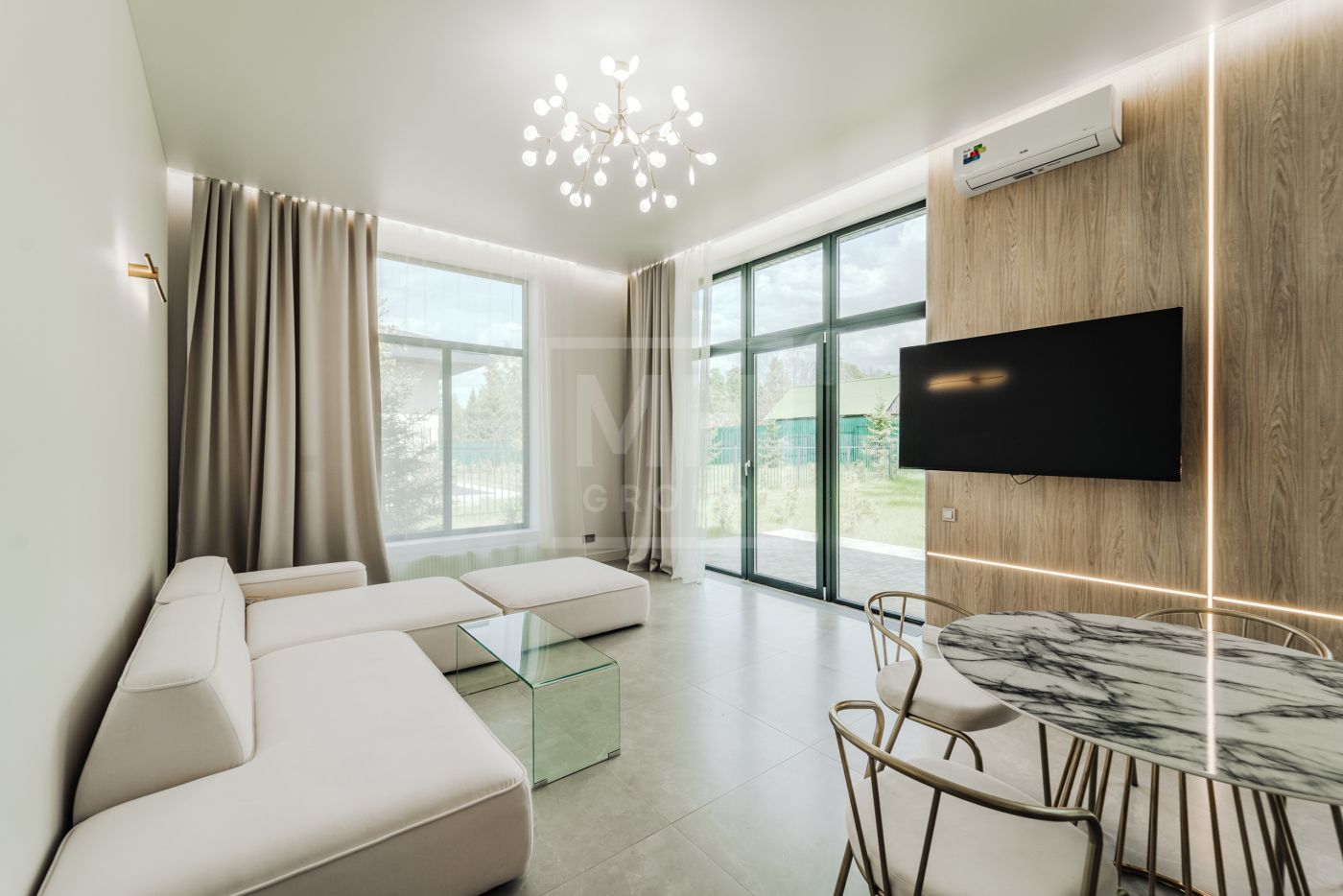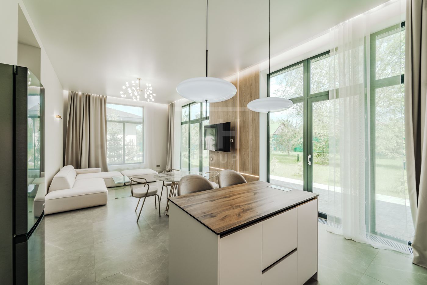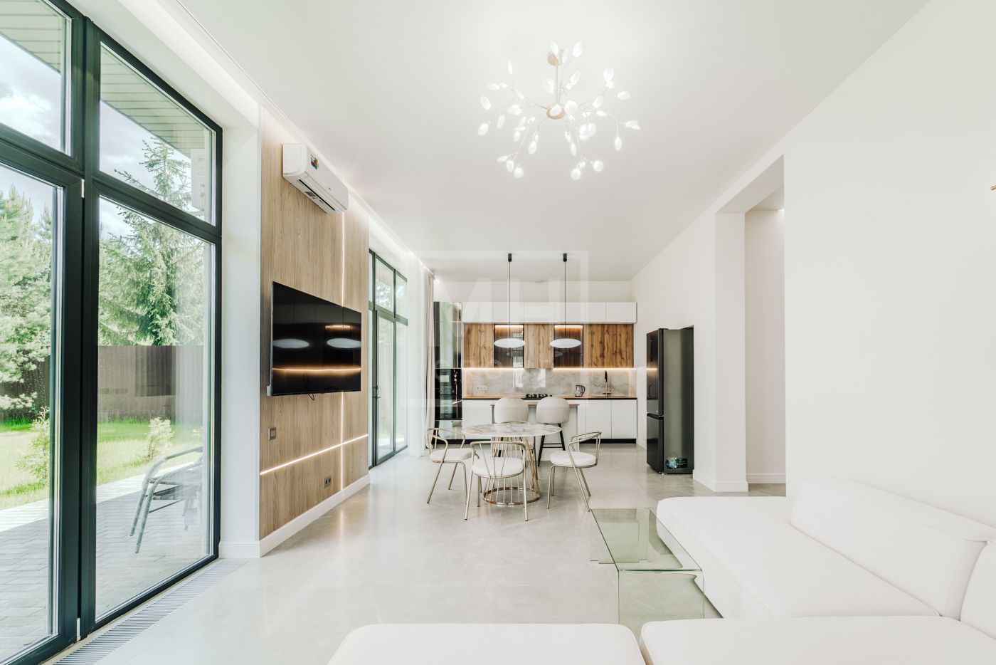 К продаже представлен новый одноэтажный дом под ключ с мебелью. Поселок окружен хвойным лесом. Участок у дома расположен в тупиковой зоне, что создает дополнительную приватность. Участок тихий, солнечный. Растут взрослые деревья. Сделан ландшафтный дизайн. Участок и дорожки вымощены брусчаткой. Дом очень светлый и стильный. Прекрасно подойдет для постоянной жизни. В доме большая кухня гостиная, с высокими потолками и окнами в пол, 4 спальни, гардеробная и постирочная. Установлены теплые полы и кондиционирование.