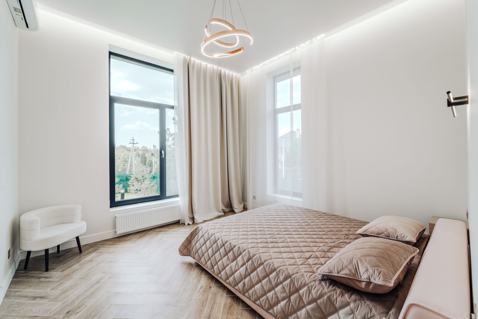 К продаже представлен современный, новый дом с большим остеклением и удобной продуманной планировкой. Планировка включает в себя: большую кухню гостиную с высокими потолками, большим остеклением и красивым освещением, мастер блок со своей ванной комнатой и гардеробной. Три просторные спальни с санузлом. Дом расположен на каскадном участке, выполнен ландшафтный дизайн, высажены красивые деревья и кустарники, есть место для зоны барбекю.
