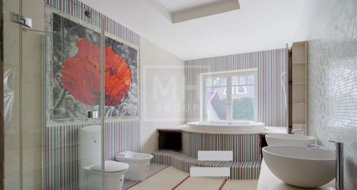 К продаже представлен дом в уютном коттеджном поселке Рублевский, в окружении леса, в удаленности от источников шума. Рядом, в 5-10 минутах на авто вся необходимая инфраструктура, в поселке Горки-2 и деревне Барвиха. Существенным преимуществом коттеджного поселка является наличие двух выездов. Первый выезд ведет на Рублево-Успенское шоссе. второй выезд ведет на платную скоростную дорогу "Северный обход Одинцово" , по которой можно доехать за 30 минут от дома до Москва -Сити. Дом готов к чистовой отделке, что дает Вам возможность реализовать свой индивидуальный проект внутреннего обустройства. Фасад дома исполнен в стиле Прованс, украшенный цветочной композицией из мозаики.
