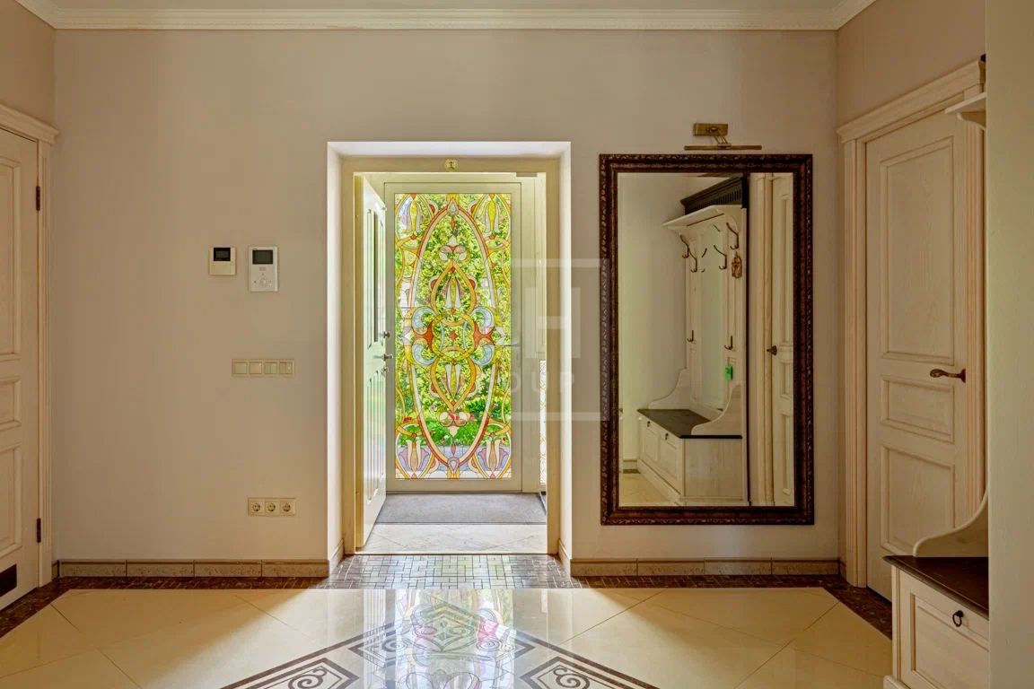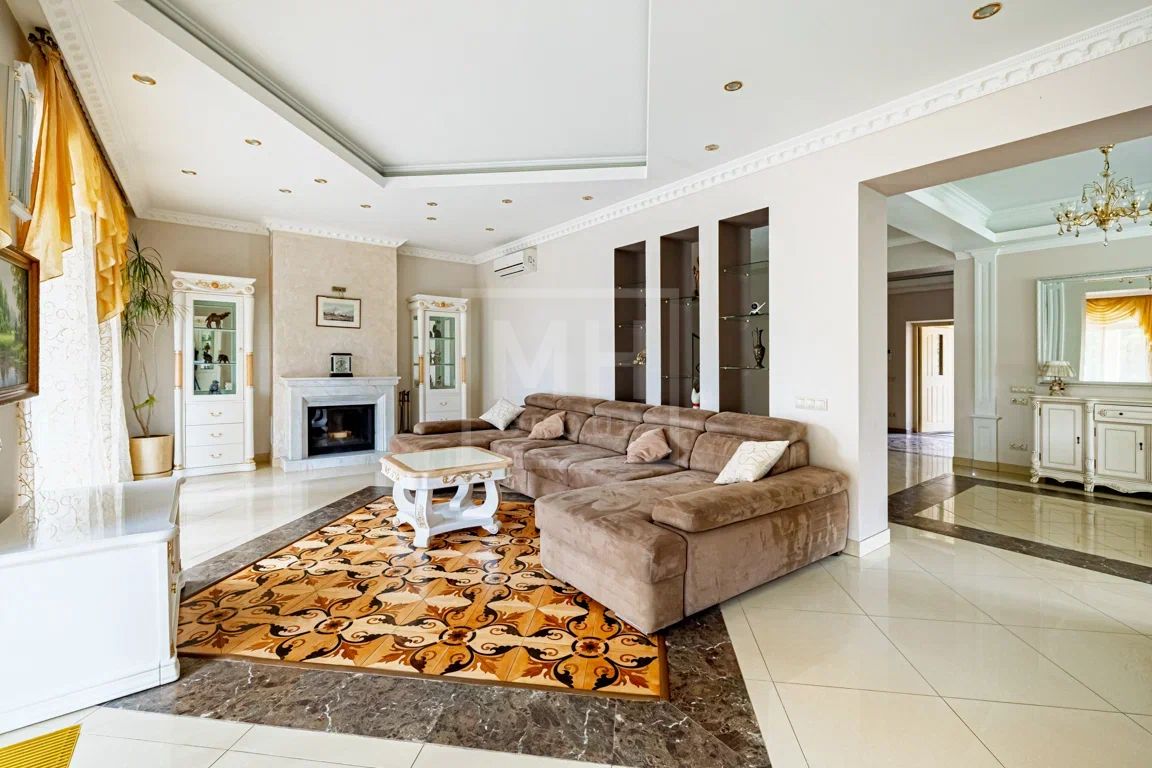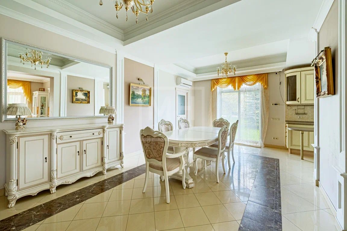 К продаже представлен дом в закрытом коттеджном поселке на Новорижском направлении. Дом расположен в тихой приватной части поселка. Придомовая территория с ландшафтным дизайном: выстелен газон, растут плодовые деревья, кустарники и цветы. Есть крытая беседка с барбекю с мини-кухней, гостевой дом, гараж с блоком для персонала. Ремонт в доме выполнен с использование дорогих премиум материалов, мебель сделана на заказ и привезена из Италии.