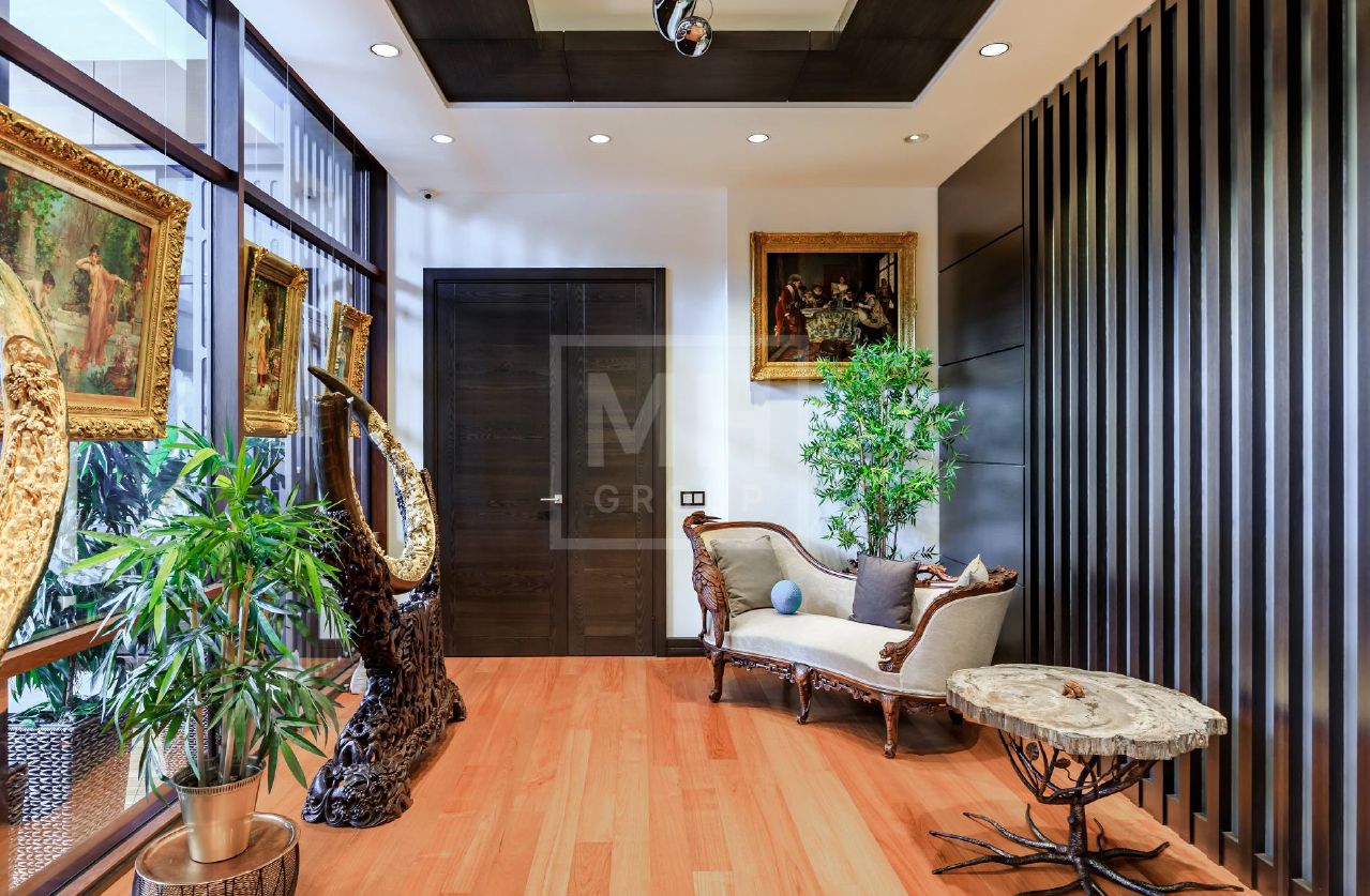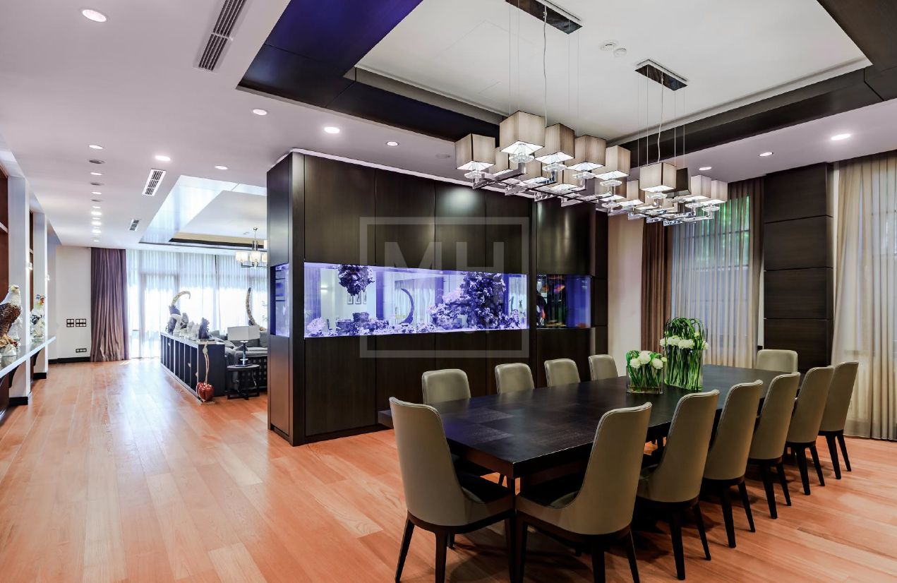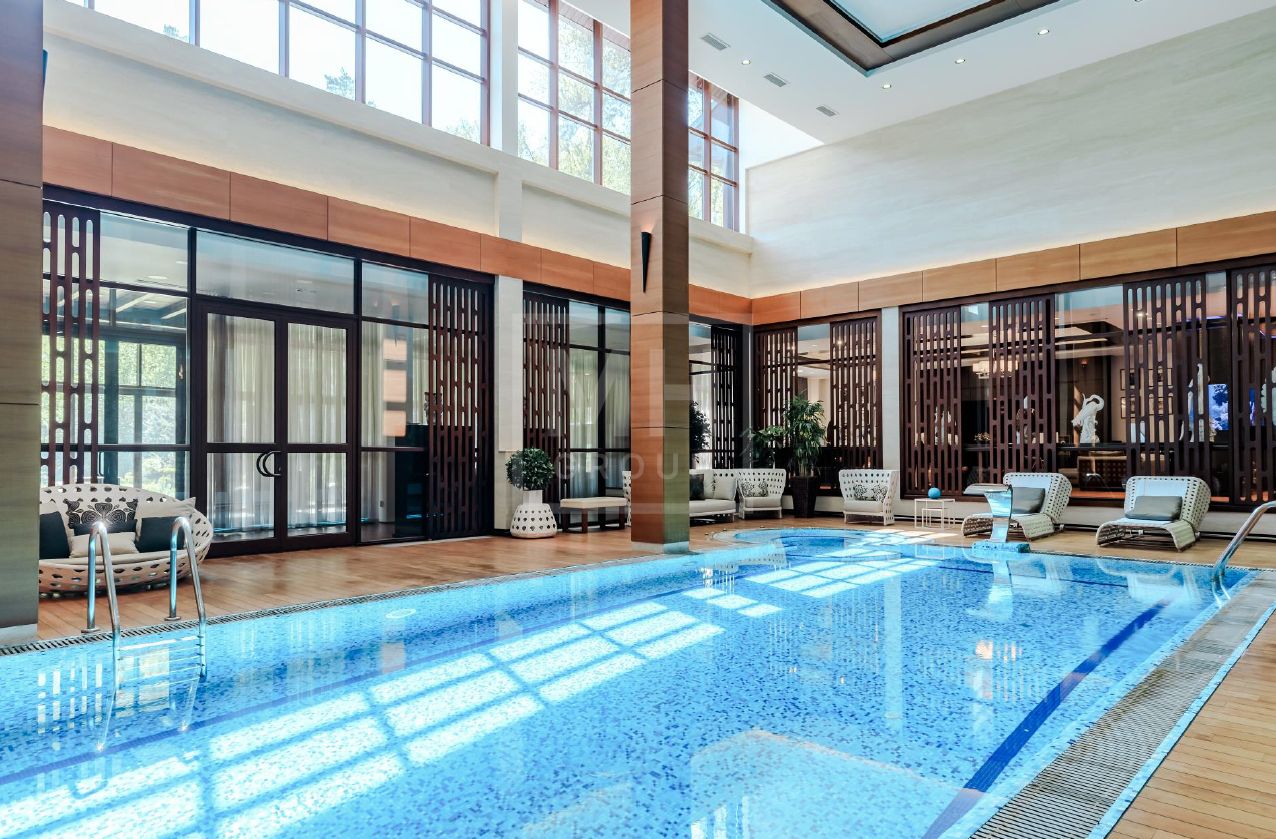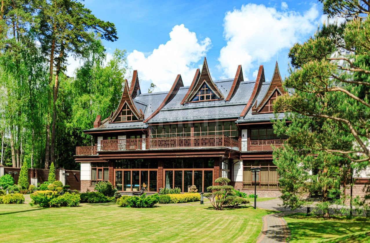 Резиденция для большой семьи в охраняемом поселке в ближней локации от Москвы по Новорижскому шоссе. Основной дом спроектированный в азиатском стиле площадью 1885 кв. м. выполнен под ключ с непревзойдённым качеством отделки — как внешней, так и внутреннего пространства. В интерьере использованы дорогие отделочные материалы, высококлассная мебель, современная техника премиальных брендов, продуманное бытовое оборудование и мультимедийные системы. Особая гордость дома — шикарная спа-зона с великолепным бассейном и сауной. Второй дом площадью 2765 кв. м. также полностью готов к проживанию и отличается многофункциональностью. В нём оборудовано несколько музыкальных студий, восемь кабинетов, тренажёрный зал, бильярдная, четыре спальни с санузлами и комната для персонала. Пространство идеально подходит как для организации рабочих процессов, так и для комфортного приёма гостей и проведения досуга. Лесной участок с шикарным ландшафтным дизайном с вековыми соснами и множеством высаженных декоративных деревьев и кустарников создает ощущения полного уединения с природой.