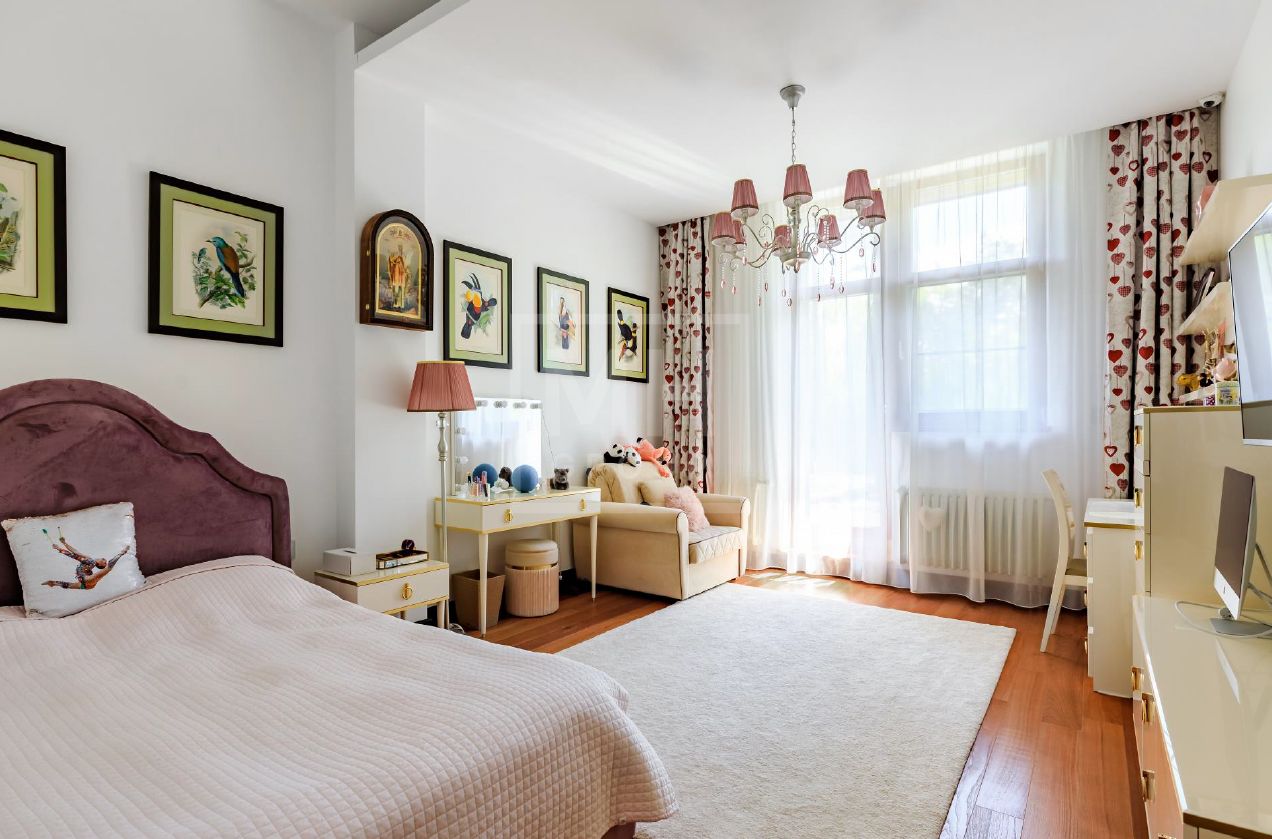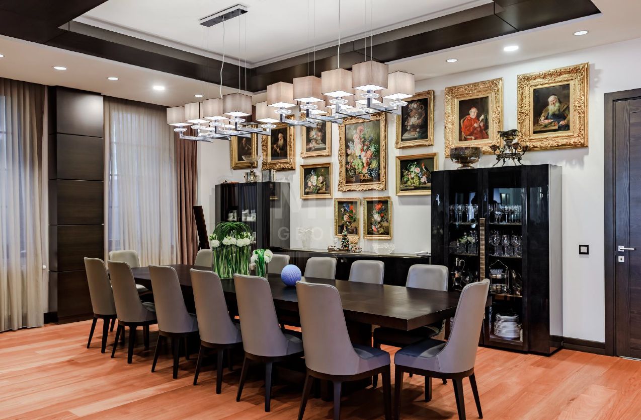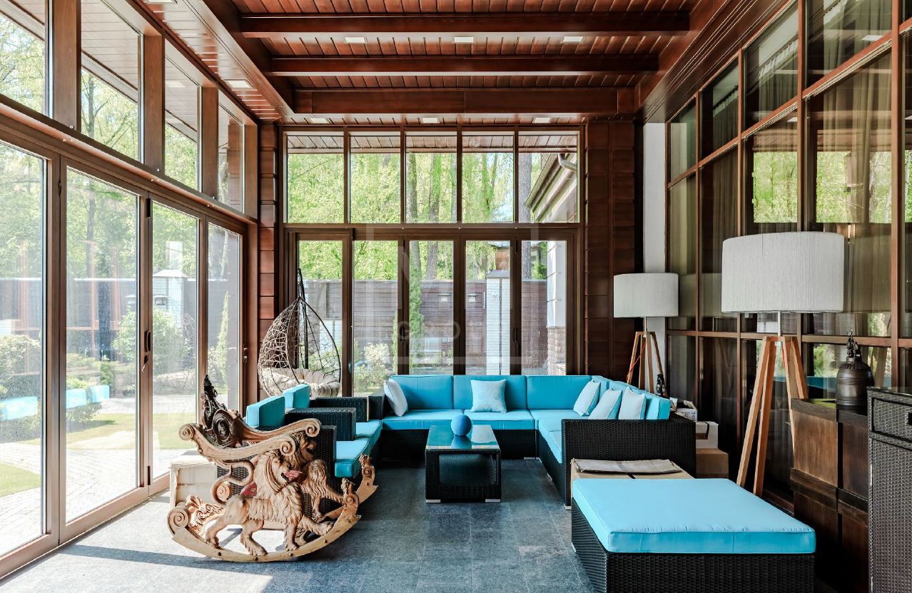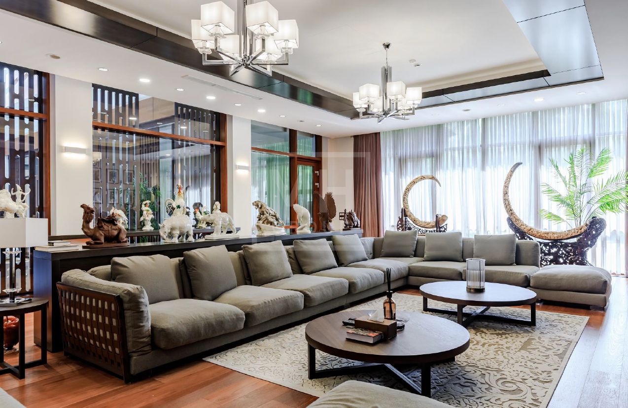 Резиденция для большой семьи в охраняемом поселке в ближней локации от Москвы по Новорижскому шоссе. Основной дом спроектированный в азиатском стиле площадью 1885 кв. м. выполнен под ключ с непревзойдённым качеством отделки — как внешней, так и внутреннего пространства. В интерьере использованы дорогие отделочные материалы, высококлассная мебель, современная техника премиальных брендов, продуманное бытовое оборудование и мультимедийные системы. Особая гордость дома — шикарная спа-зона с великолепным бассейном и сауной. Второй дом площадью 2765 кв. м. также полностью готов к проживанию и отличается многофункциональностью. В нём оборудовано несколько музыкальных студий, восемь кабинетов, тренажёрный зал, бильярдная, четыре спальни с санузлами и комната для персонала. Пространство идеально подходит как для организации рабочих процессов, так и для комфортного приёма гостей и проведения досуга. Лесной участок с шикарным ландшафтным дизайном с вековыми соснами и множеством высаженных декоративных деревьев и кустарников создает ощущения полного уединения с природой.