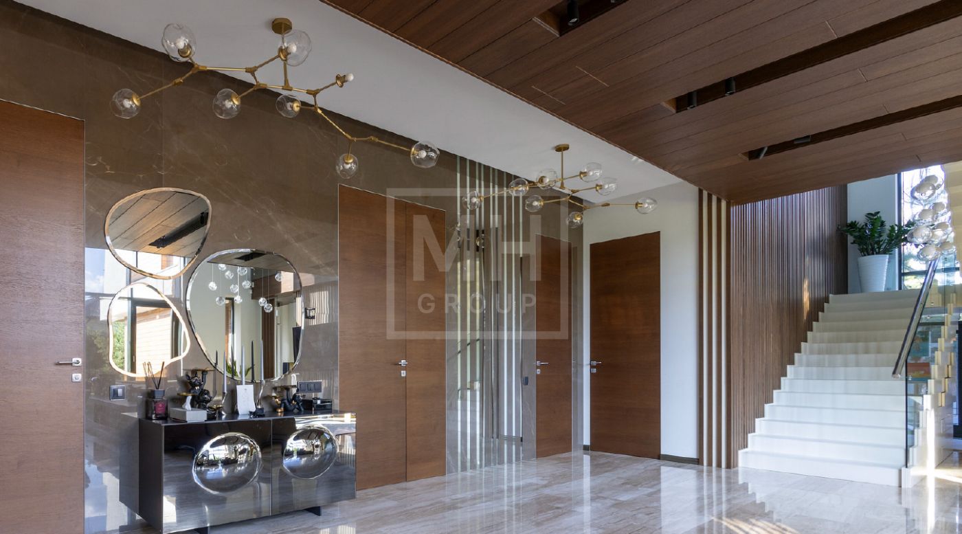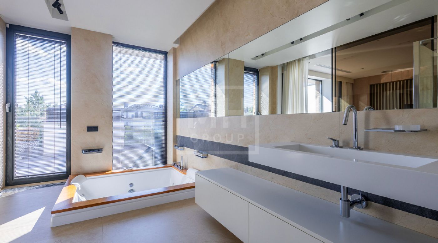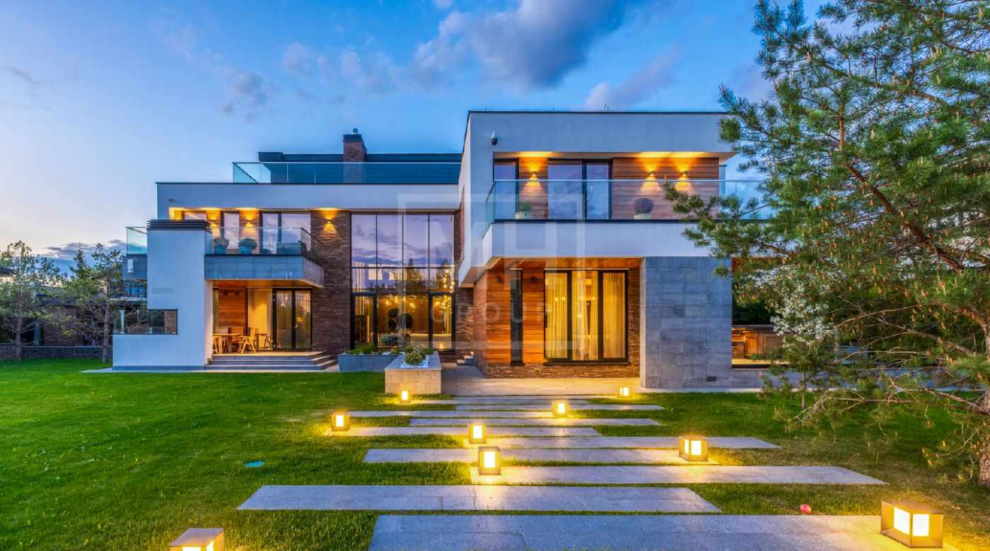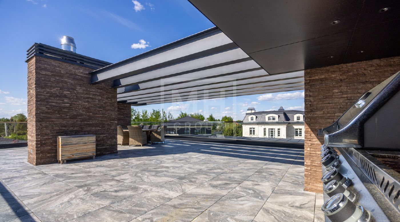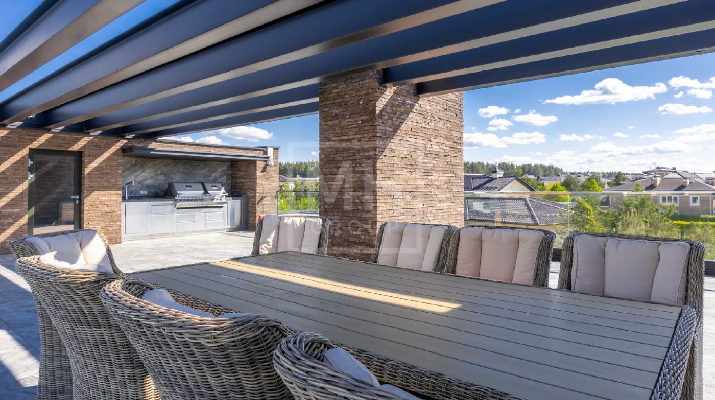 Элегантный современный дом площадью 550 м² расположен на участке18,5 соток в одном из самых престижных коттеджных посёлков Подмосковья — «Ренессанс Парк». Простор, прекрасный объем за счнт высоких потолков и второго света в зоне гостиной, высокий уровень инженерных решений, премиальная отделка и дизайнерская мебель делают этот дом уникальным предложением. Планировка продумана до мелочей: 5 спален, кабинет, просторная гостиная с вторым светом, кухня-столовая, большой камин с панорамной топкой, сауна, комната отдыха, купель/гидромассажная ванна на открытом воздухе, эксплуатируемая кровля с зоной BBQ. В доме установлено оборудование ведущих брендов. Вся мягкая мебель, обеденный стол и стулья выполнены итальянским брендом Poliform.Хорошая локация в поселке в непосредственной близости с парком и озером.