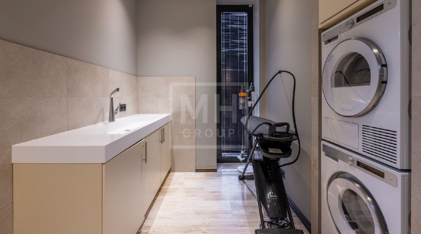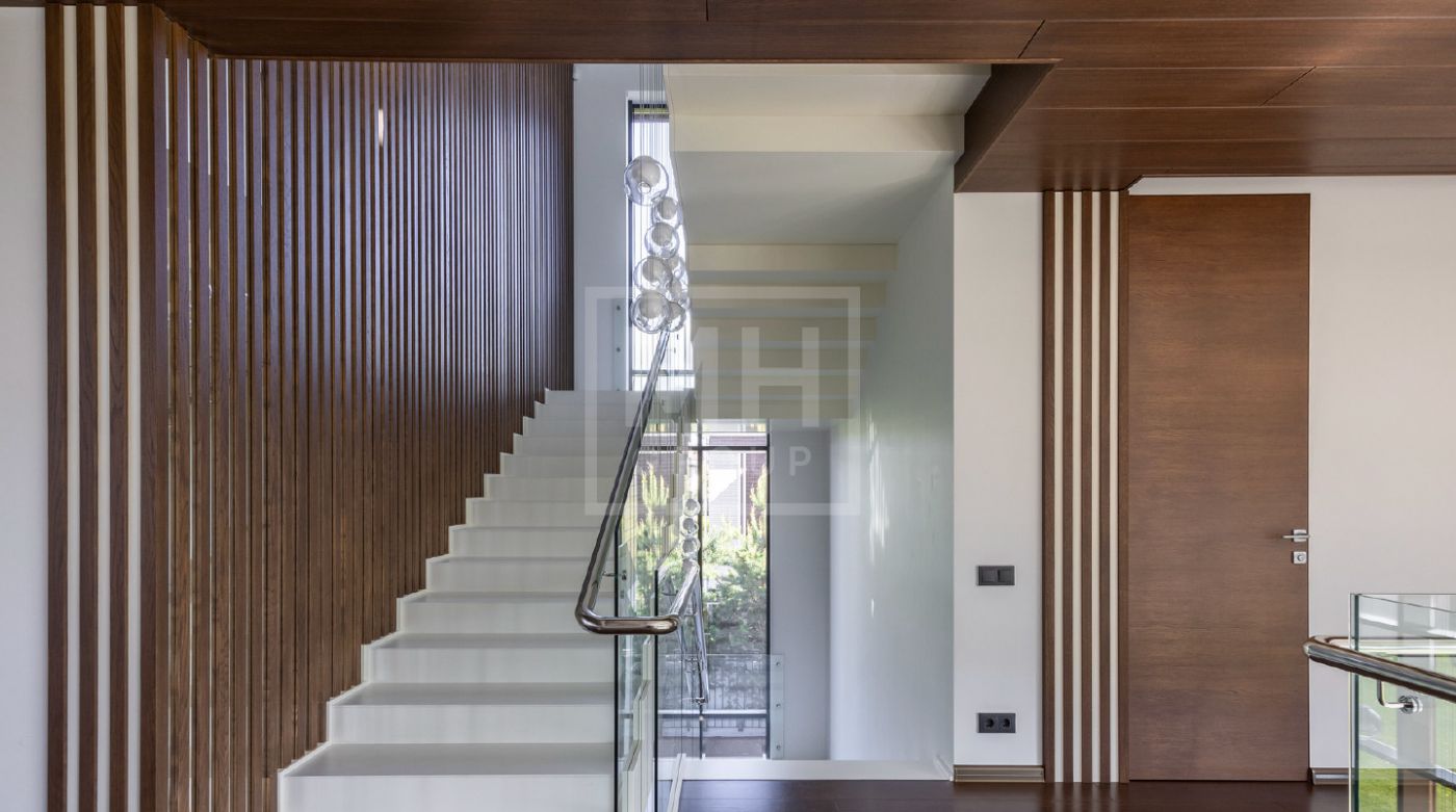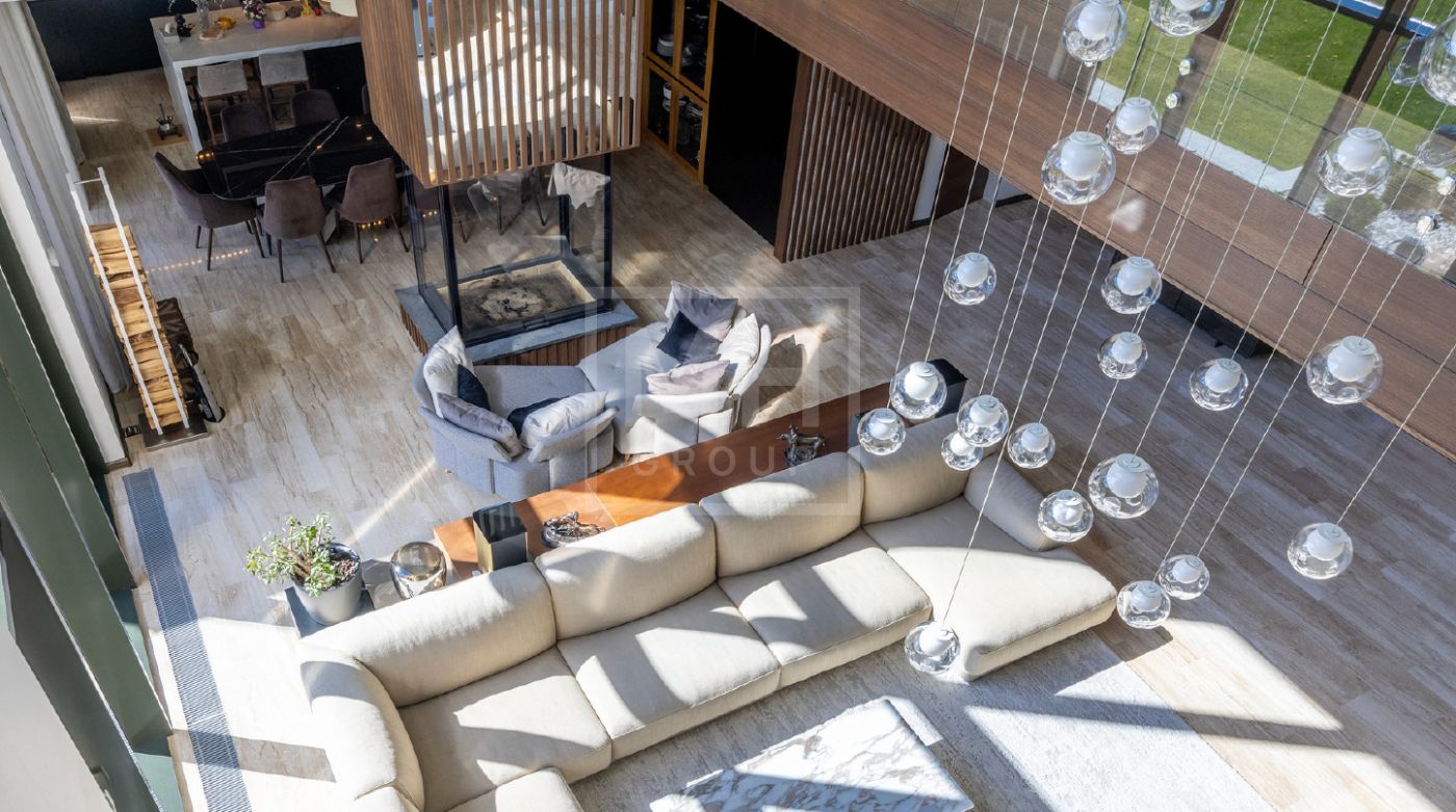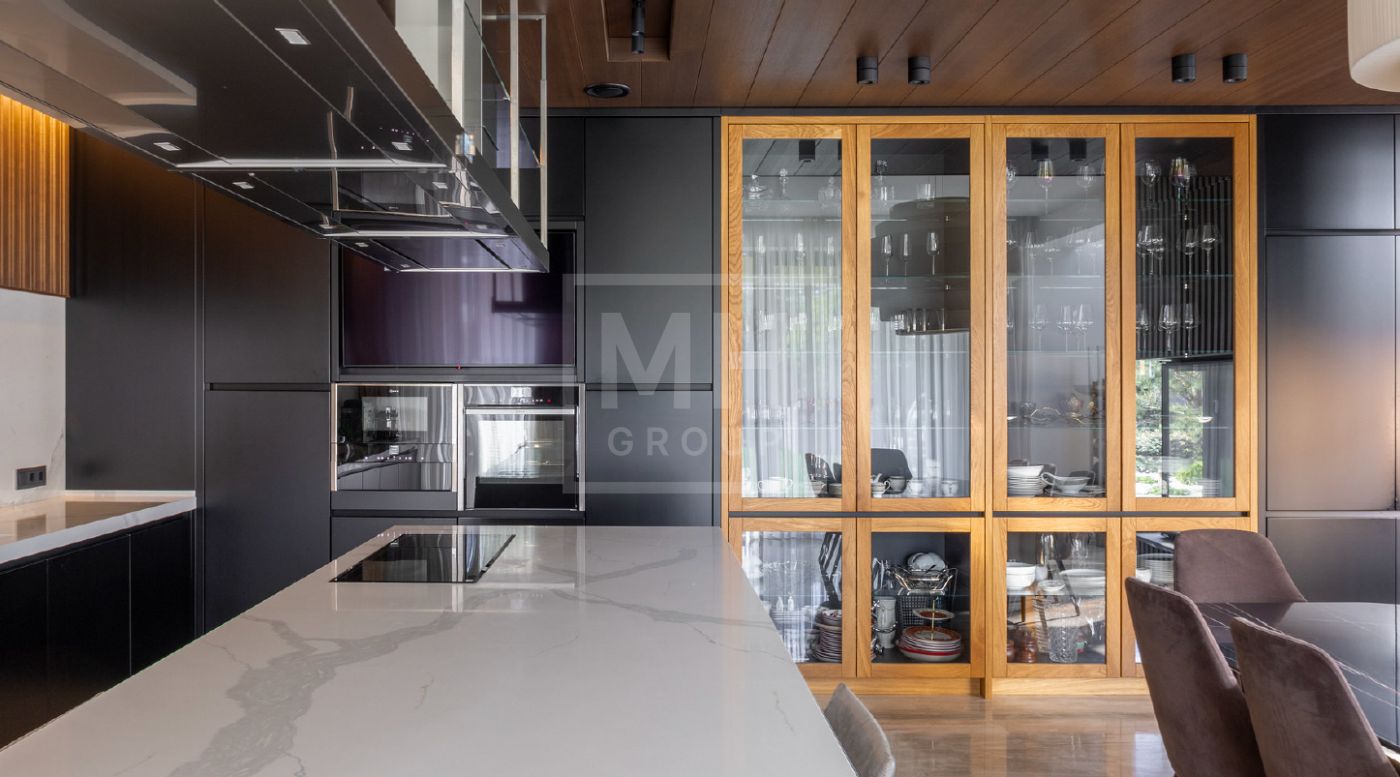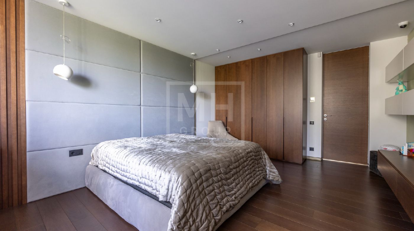 Элегантный современный дом площадью 550 м² расположен на участке18,5 соток в одном из самых престижных коттеджных посёлков Подмосковья — «Ренессанс Парк». Простор, прекрасный объем за счнт высоких потолков и второго света в зоне гостиной, высокий уровень инженерных решений, премиальная отделка и дизайнерская мебель делают этот дом уникальным предложением. Планировка продумана до мелочей: 5 спален, кабинет, просторная гостиная с вторым светом, кухня-столовая, большой камин с панорамной топкой, сауна, комната отдыха, купель/гидромассажная ванна на открытом воздухе, эксплуатируемая кровля с зоной BBQ. В доме установлено оборудование ведущих брендов. Вся мягкая мебель, обеденный стол и стулья выполнены итальянским брендом Poliform.Хорошая локация в поселке в непосредственной близости с парком и озером.