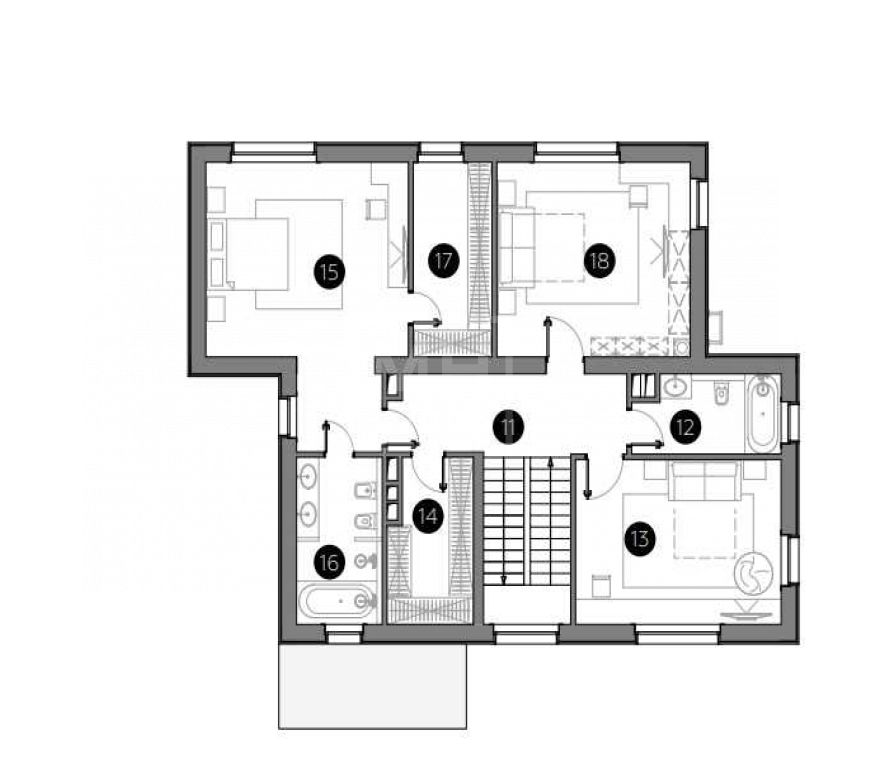 Этаж 2: Мастер-спальни с с/у и гардеробной, 2 спальни, с/у, гардеробная