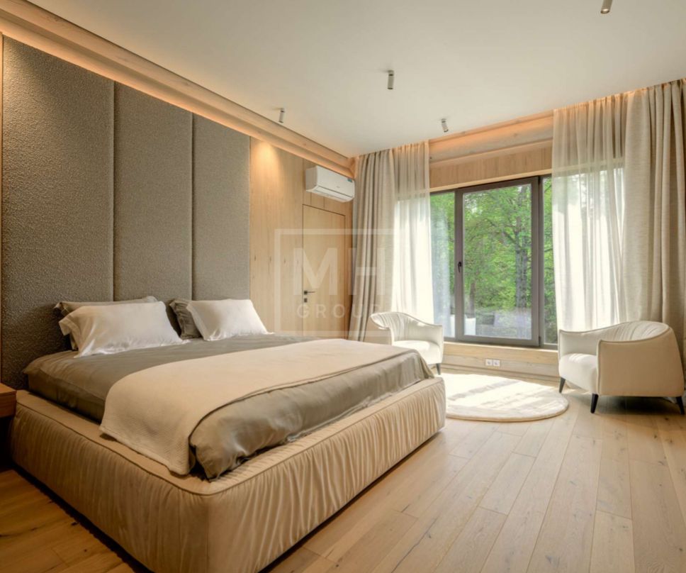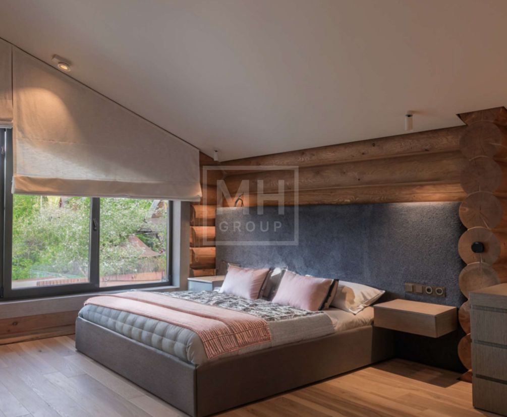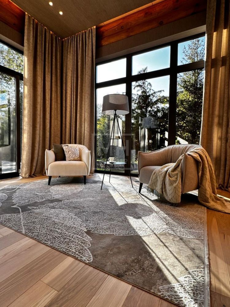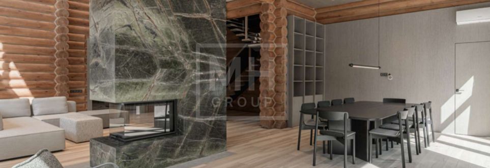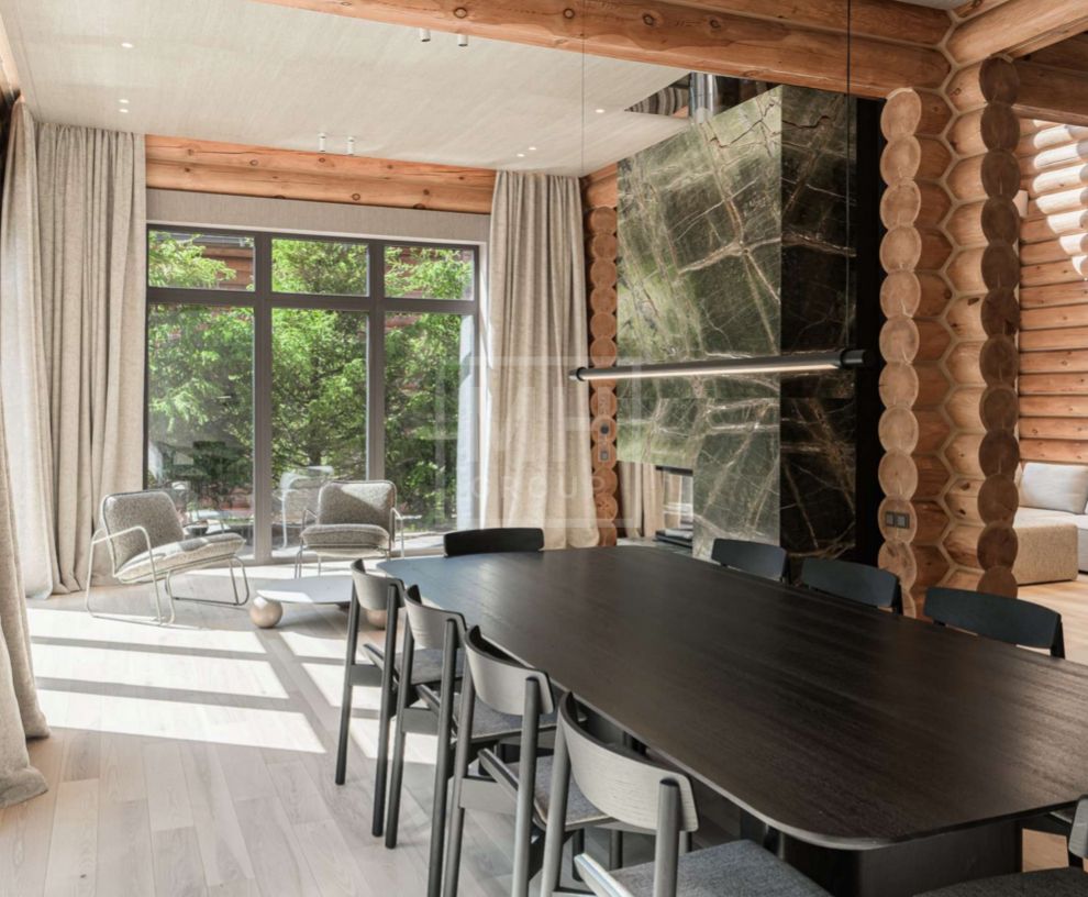 Просторный двухэтажный дом площадью 419 кв. м расположен на прилесном участке 9,6 соток в элитном поселке «Сареево Village». Дом абсолютно новый - никто не жил. Полностью готов к проживанию и ждёт своих первых хозяев. Он словно продолжение окружающего пейзажа: тёплый оттенок бревенчатых стен гармонично сочетается с композитной черепичной крышей, а панорамные окна наполняют пространство светом и открывают живописные виды на зелёный ландшафт. За домом нет соседей, участок граничит с лесом, создавая ощущение уединения и настоящей природной тишины. Внутреннее пространство организовано для комфортной жизни и повседневной гармонии. На первом этаже — прихожая с гардеробной, кухня-столовая, гостиная с камином, кабинет, санузел и бойлерная. Здесь приятно начинать день с чашки кофе в тишине утреннего рассвета, работать в собственном кабинете, не отвлекаясь на домашние дела, устраивать семейные обеды и собираться в кругу друзей.