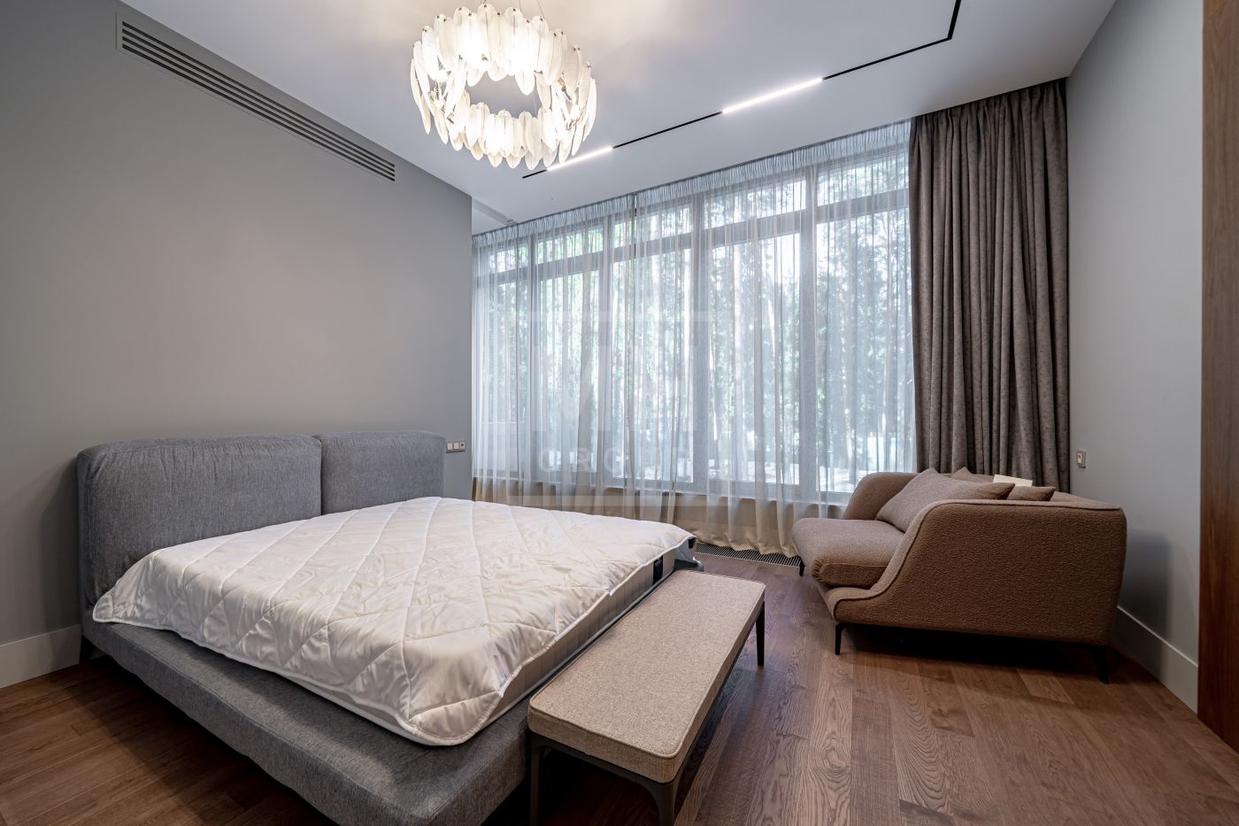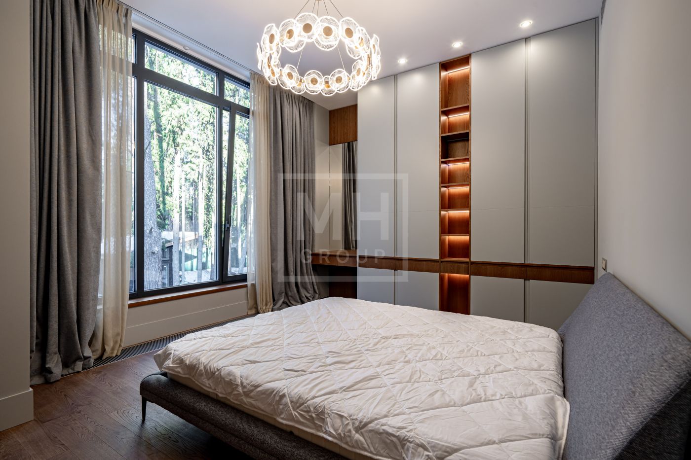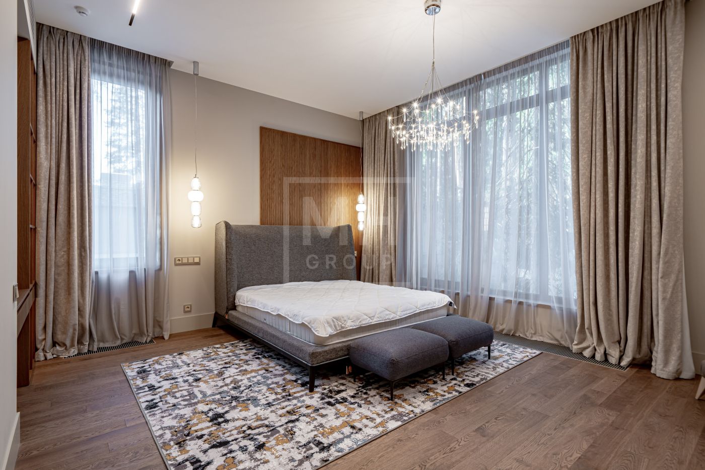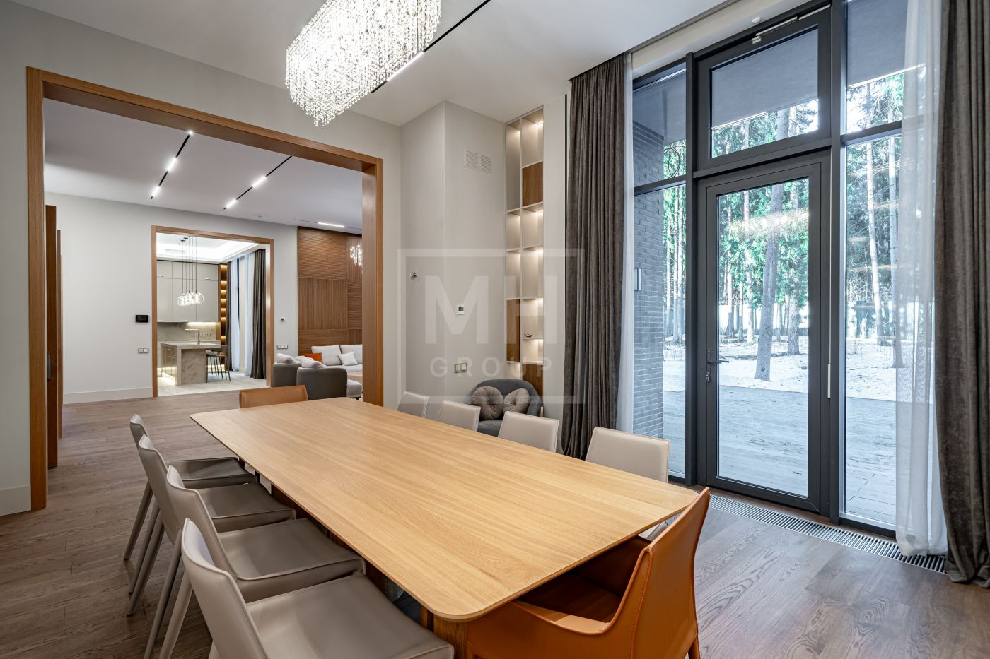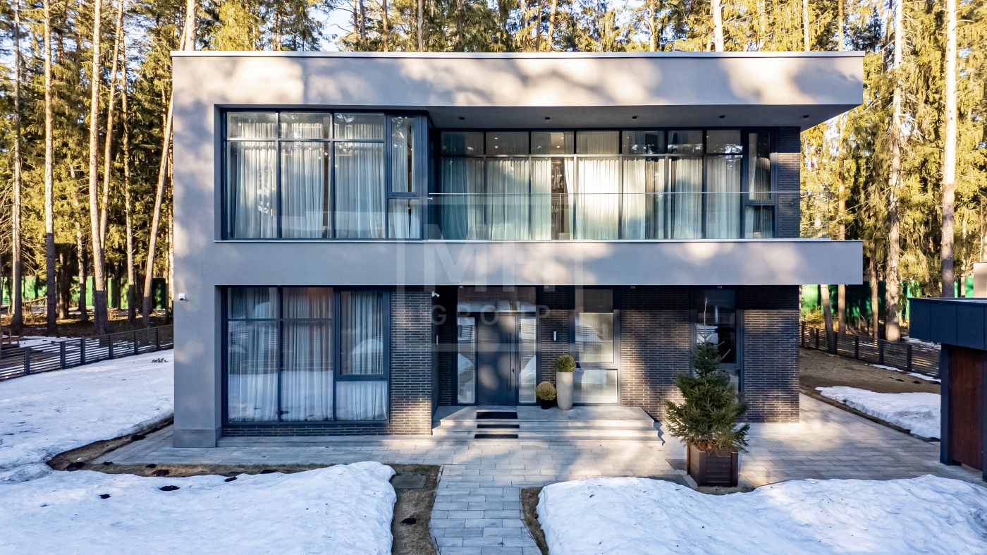 Современный дом 380 кв м в лесном поселке Маслово Парк в 25 км от МКАД по Ру6лево-Успенскому шоссе.Дом оснащëн продуманной системой климат-контроля с хронотермостатами Valtec, позволяющими управлять отоплением через Wi-Fi. Bсе комнаты подготовлены к подключению интернета и телевидения.
