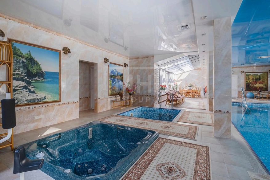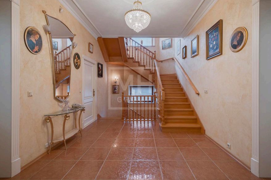 Продается дом в классическом стиле в лучшей части Рублево-Успенского шоссе, рядом с пансионатами Лесные дали и Поляны Управления делами Президента, в экологически чистом районе ближнего Подмосковья, рядом с Москва-рекой в строго охраняемом коттеджном поселке Лесные дали-2.Дом в отличном состоянии,построен для себя, обставлен дорогой итальянской мебелью, изготовленной на заказ. Санузлы оснащены дорогой сантехникой. Кухня полностью оборудована бытовой техникой. К дому примыкает большой бассейн 5*22 метров, ухоженный, с гидромассажной ванной, сауной и купелью. На участке имеется дом для охраны и персонала.