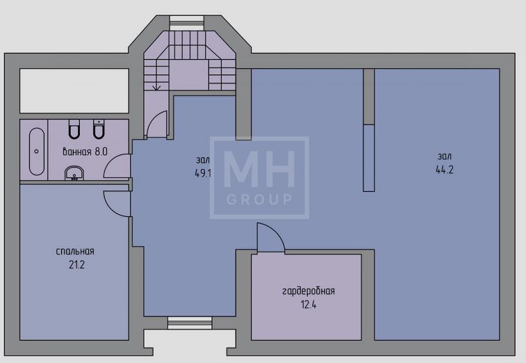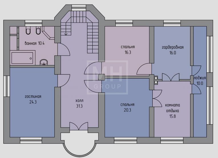Этаж 2: Гостиная, холл, ванная, спальня, гардеробная, комната отдыха, спальня, лоджия