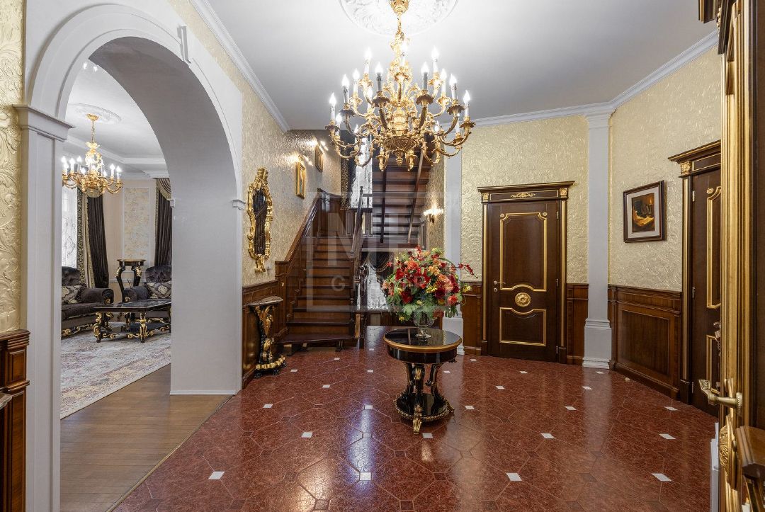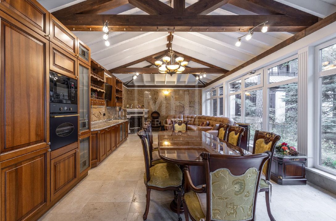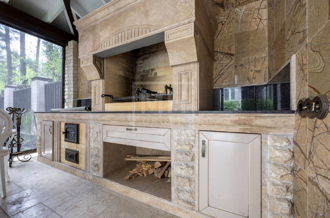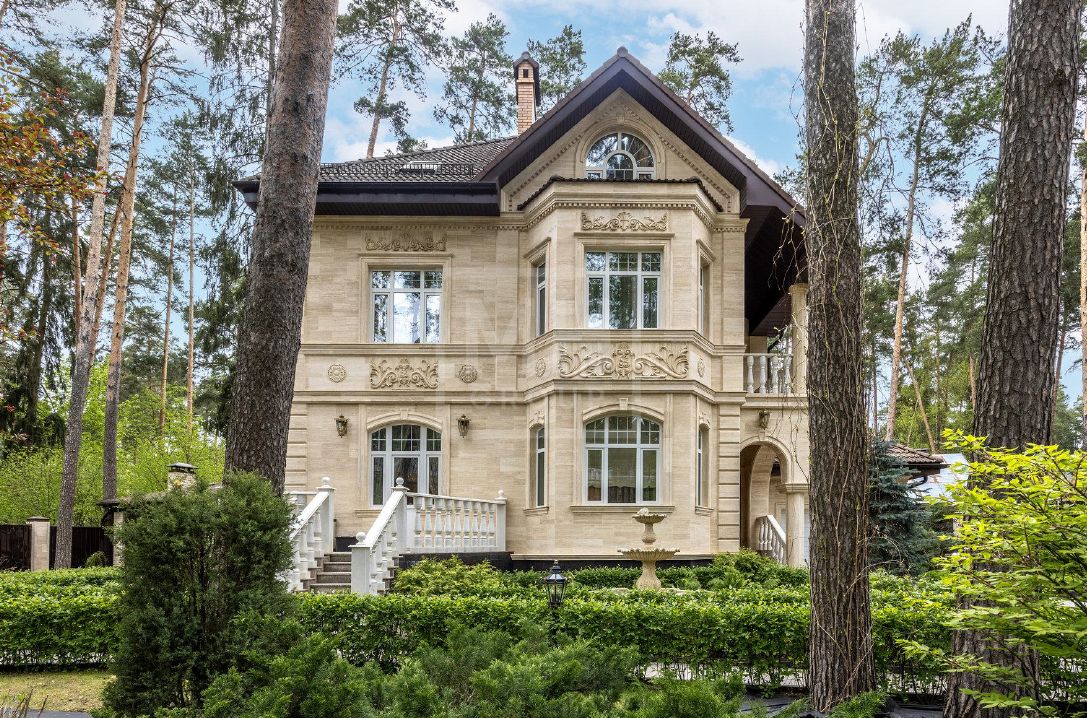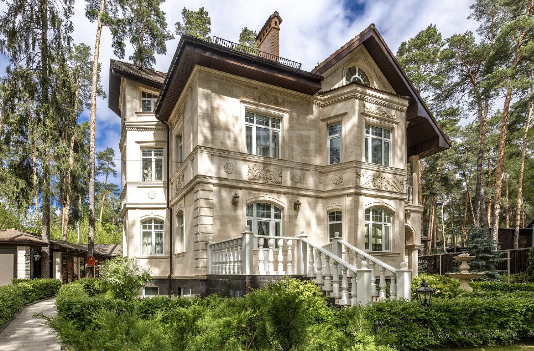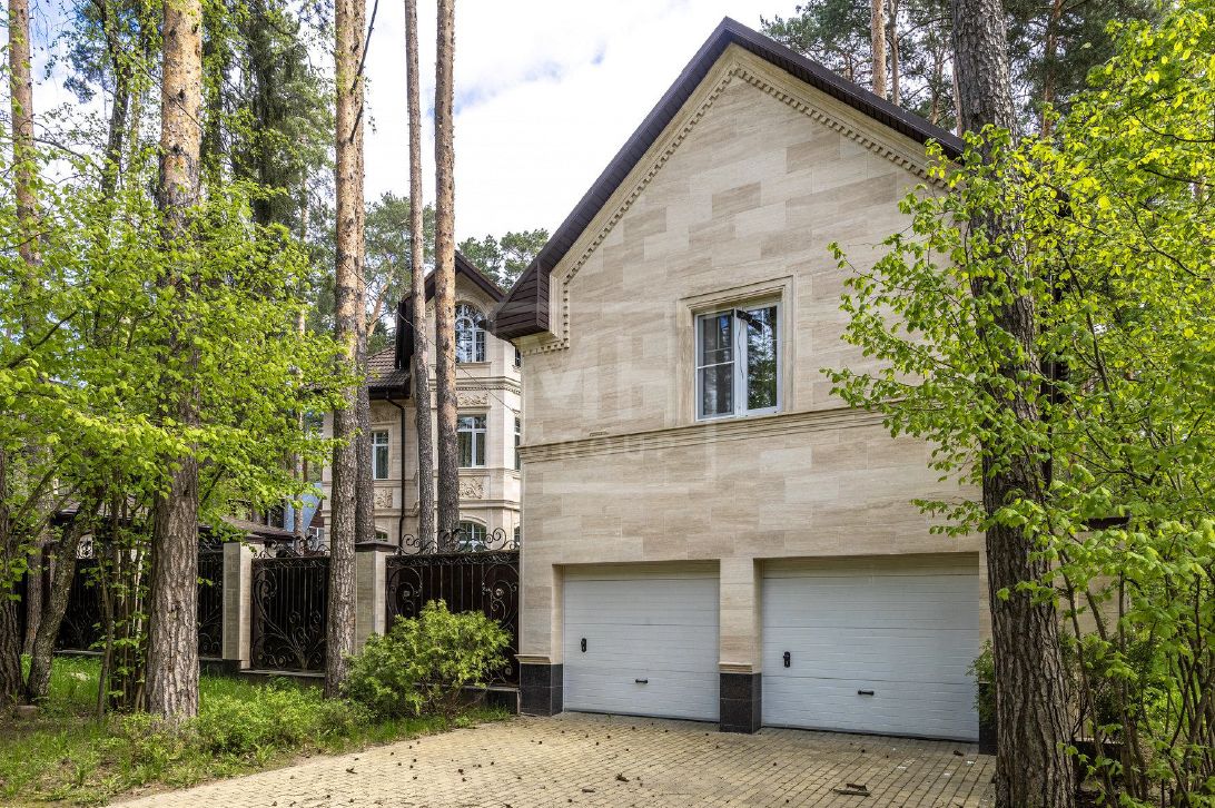 Классический дом с прекрасным фасадом из натурального камня на лесном участке в поселке Новь. Ремонт выполнен в классическом стиле с применением дорогих отделочных материалов. Кроме основного дома на участке расположена беседка с зоной барбекю, гараж с квартирой для персонала