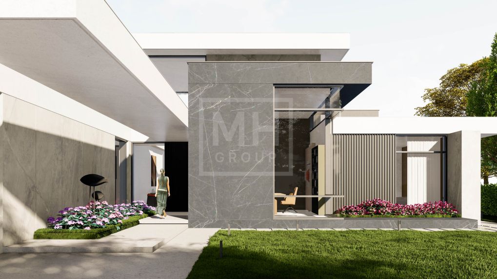 Этаж 1: прихожая, холл, гардеробная, гостевой с/у, просторная зона гостиной- столовой и кухни с панорамным остеклением и выходом на террасу и участок, СПА-зона (бассейн, комната отдыха, сауна, хаммам, санузел, душевая, раздевалка), кабинет, спальня первого этажа с санузлом, кладовая, черновая кухня, постирочная, блок для персонала (спальня, санузел, кухня), отапливаемый гараж на три автомобиля, котельная.