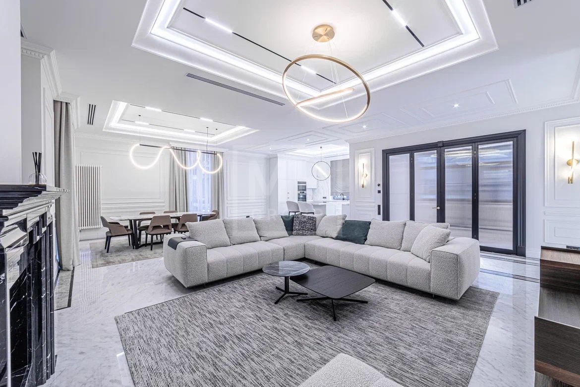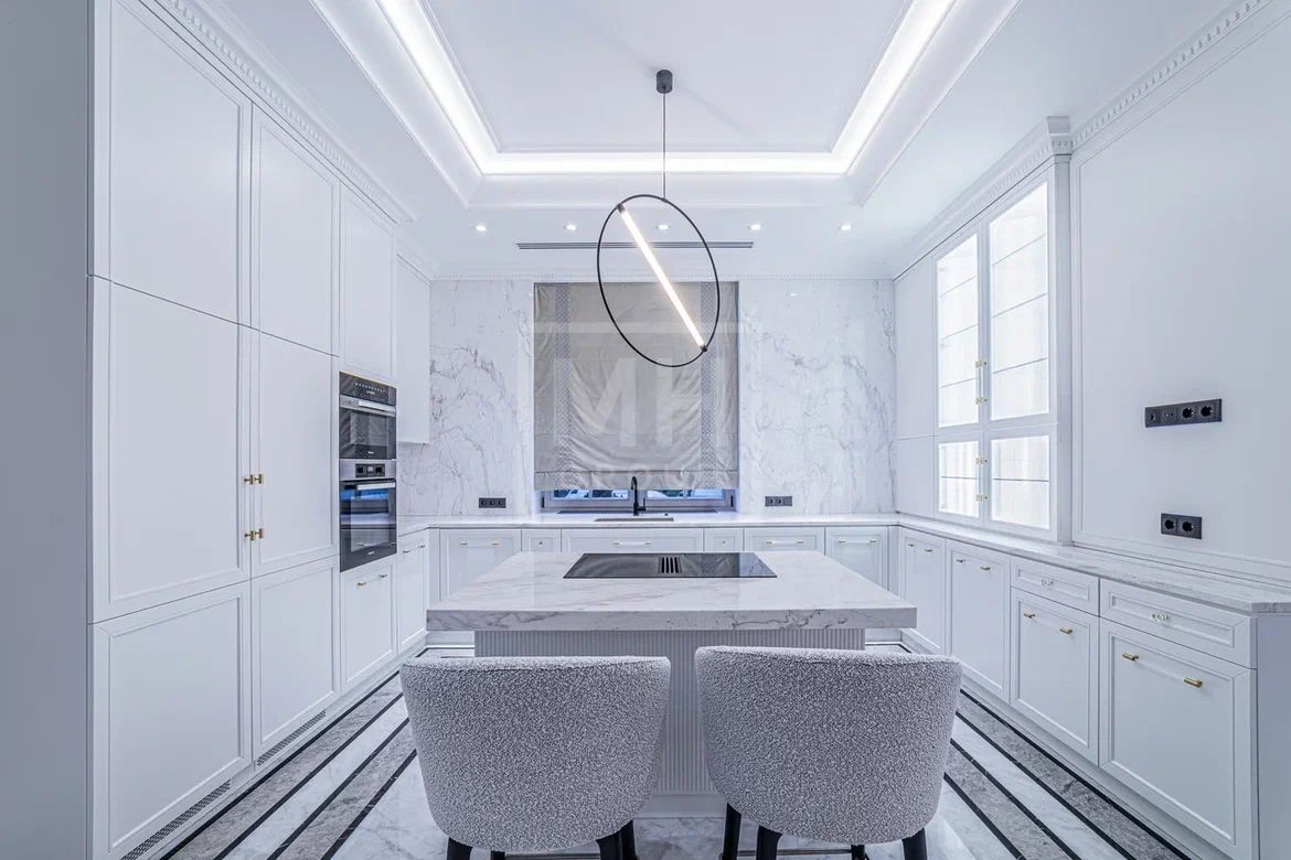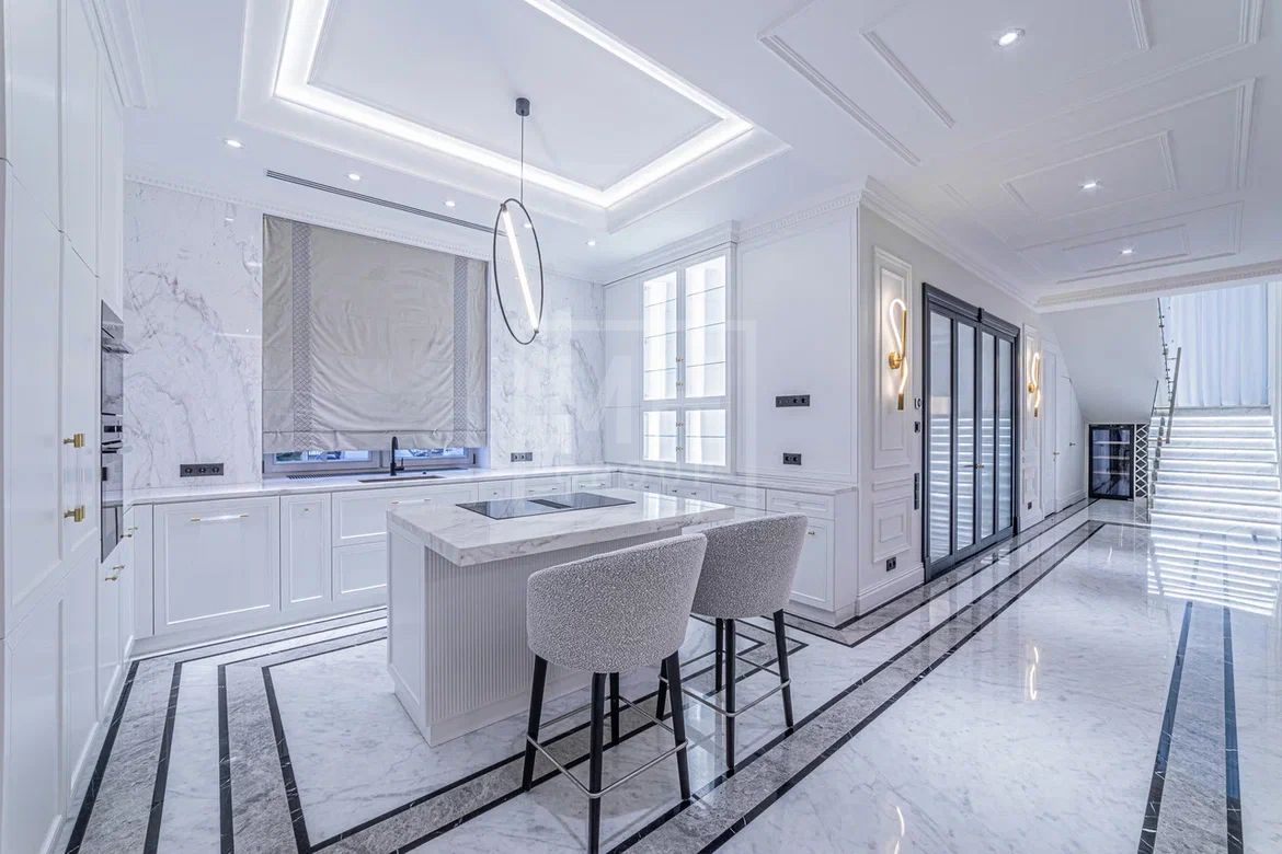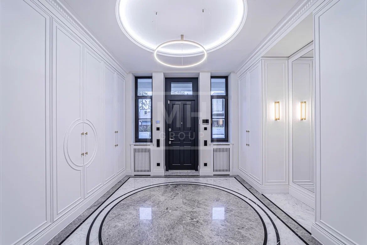 Предлагается новая загородная резиденция "под ключ" на красивом лесном участке в коттеджном поселке "Ново-Успенский". Светлый фасад облицован натуральным камнем, интерьер дома выдержан в едином неоклассическом стиле с использованием премиальных материалов. На участке с хвойными деревьями выполнен ландшафтный дизайн: постелен газон, вымощены дорожки и установлена уличная подсветка. Есть гараж на 2 авто с блоком для персонала.
