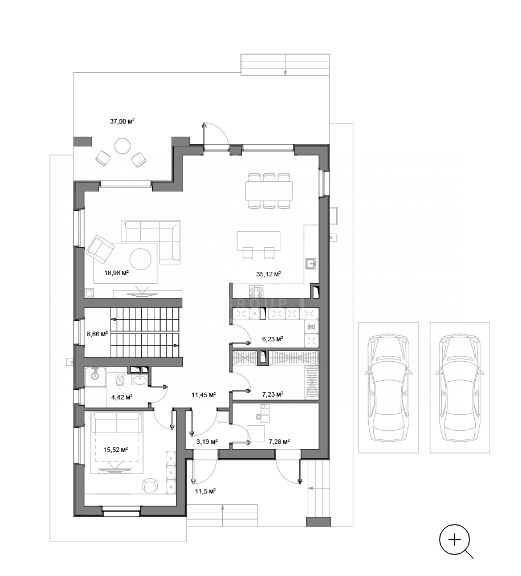 Этаж 1: Прихожая, гардеробная, кабинет/спальня, с/у, кухня, столовая-г8остиная, кладовка, котельная