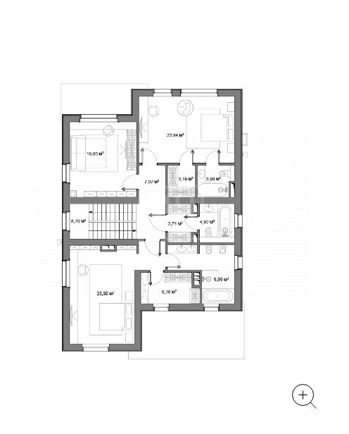 Этаж 2: мастер спальня с гардеробной и с/у, спальня с с/у и гардеробной, спальня, с/у, гардеробная