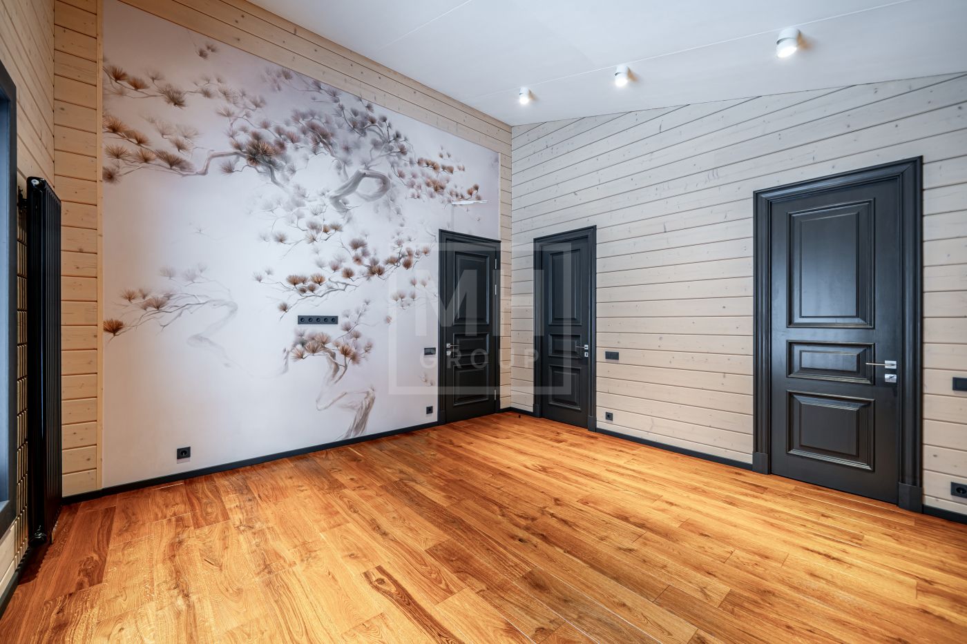 Новый одноэтажный дом из клееного бруса построен с соблюдением высоких стандартов качества и учитывая все тонкости деревянного домостроения. В интерьере гармонично сочетаются уют, создаваемый деревом и стильный минимализм современной мебели от ведущих мировых производителей. Отделка дома выполнена в спокойной цветовой гамме, фрески на стенах придают дому дополнительную легкость и изящность.