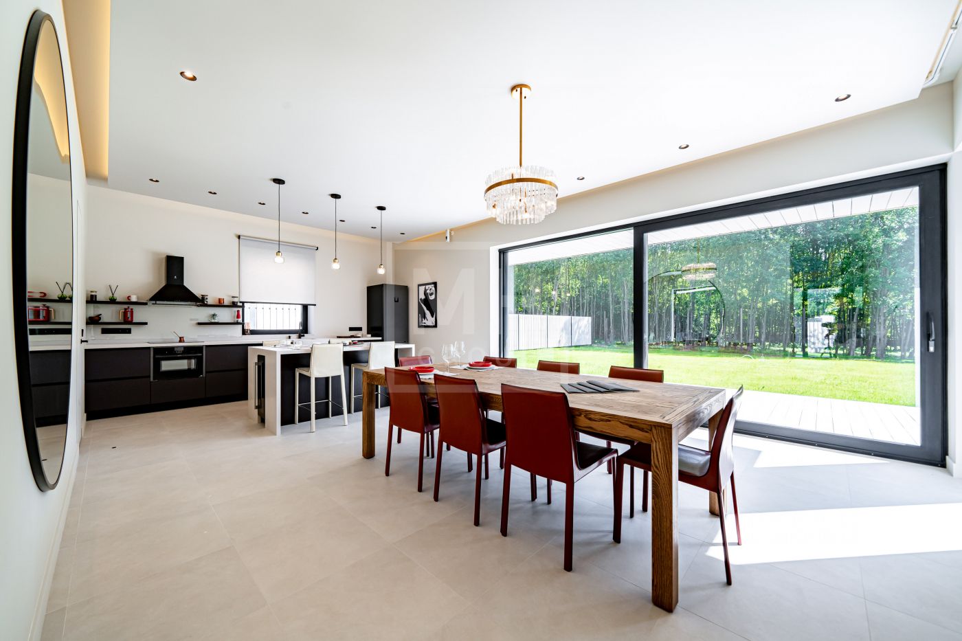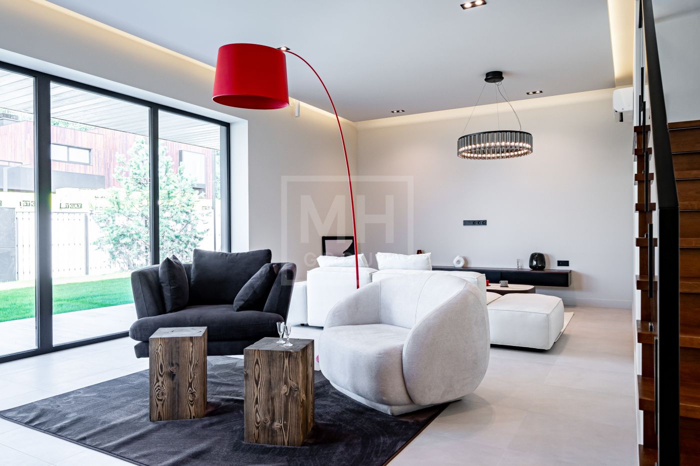 К продаже представлен красивый, стильный дом в одном из лучших районов Подмосковья. Функциональная планировка отлично подойдет для большой и гостеприимной семьи. В доме 4 спальни, просторная гостиная, кухня-столовая с выходом на большую террасу, кабинет, зона отдыха с хаммамом, гараж. В строительстве и отделке дома использовались дорогие, премиальные материалы, премиальная сантехника таких брендов как Vitra, Villeroy&Boch, мебель и освещение так же представлено из премиум сегмента российских и зарубежных брендов Kartell, Boca Room, Artfabric, Центрсвет, встроенная мебель по индивидуальному заказу, техника Miele, Neff, Liebherr.Просторный дом с большим остеклением, отлично подойдет для жизни и отдыха и даже для работы.