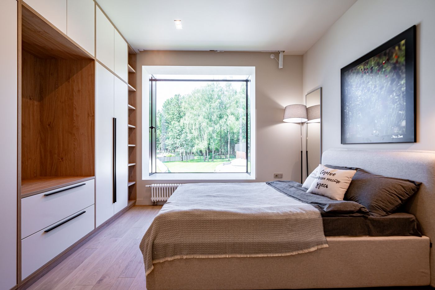 Этаж 2: Мастер-спальня с гардеробной и ванной комнатой, две детские спальни, санузел, кабинет с выходом на террасу.