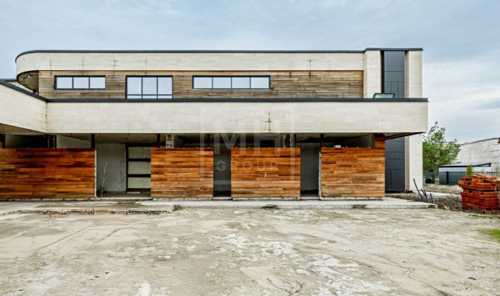 Этаж 1: прихожая, гардеробная, кладовая, хоз. помещение, холл с вторым светом, гостевая спальня с с/у, гостиная со вторым светом, кухня- столовая, выход на террасу с зимним садом, детская спальня с с/у и гардеробной совмещена с блоком для няни (спальня, с/у) с отдельным входом, котельная, блок для персонала с отдельным входом (гостиная, 2 спальни с санузлами), гараж на 1 м/м с кладовой.
