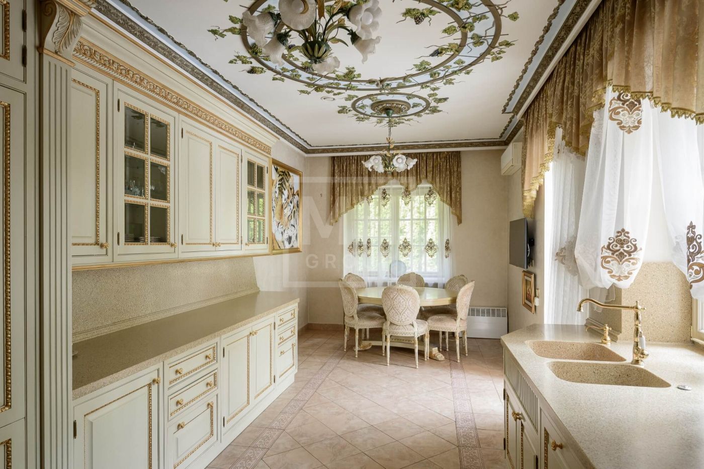 Элегантная резиденция 1778 кв.м, созданная по индивидуальному проекту в классическом стиле, расположена на участке 28 сот в КП Третья Охота,с удобным заездом через Рублевское и Ильинское шоссе. Один из самых близких элитных коттеджных поселков, со сложившейся застройкой и статусными спокойными соседями. В доме: 7 спален, ТВ-гостиная, каминный зал со столовой, изолированная кухня, спа-комплекс с сауной и хаммамом, бильярдная, 2 бара, винная, библиотека, несколько помещений свободного назначения, блок персонала с отдельным входом, гараж на 3 м/м, многочисленные террасы и балконы, даже собственная смотровая. Особенности резиденции: живописный зеленый участок с ландшафтным дизайном, парадный въезд с круговой площадкой и фонтаном в центре, особняк с меблировкой “заезжай и живи”, отделка дорогими материалами по эксклюзивным эскизам, в доме много элементов ручной работы, интерьеры в стиле венецианской классики, все в отличном состоянии.Резиденция стоит на участке с ровным рельефом и живописным ландшафтным дизайном в парковом стиле. На территории установлена беседка с мангалом, фонтан у въезда, сад камней с водопадом и фигурами ангелов, обустроены зоны современных грядок.По периметру территория огорожена хвойными растениями, на участке высажены взрослые растения (канадский дуб, клены, кусты) и плодовые деревья (20 шт.). На участке древесно-подзолистый грунт, выполнен дренаж, есть автоматический полив, устроено освещение.