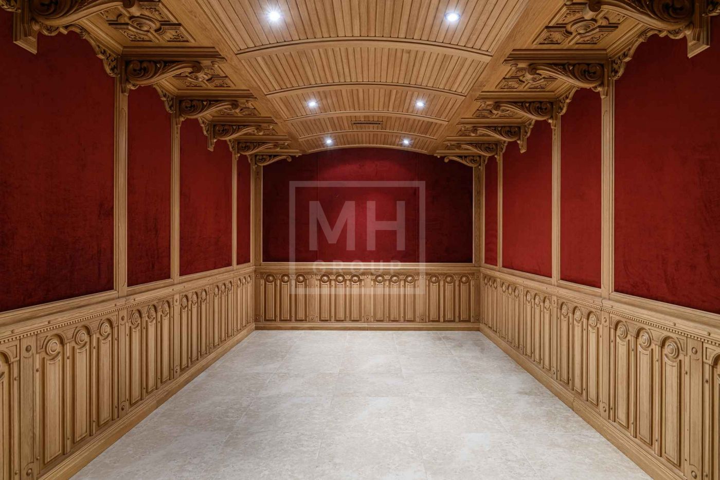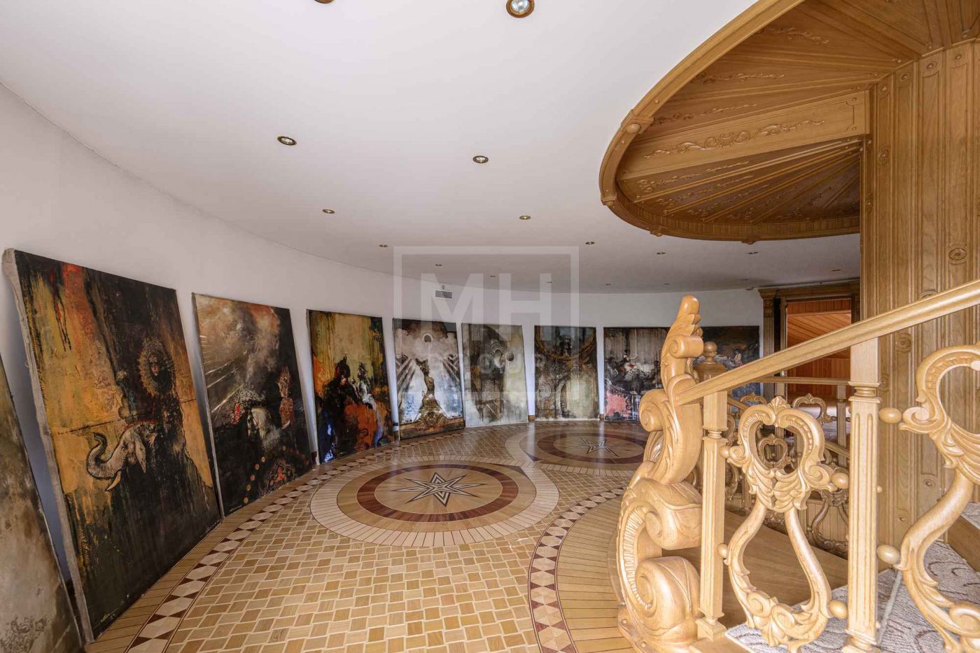 Цоколь: Бильярдная с баром, переговорная, винное хранилище, хаммам с комнатой отдыха, гостевой с/у. Блок для персонала: спальня, кухня, с/у. Постирочная, оружейная, кладовые, генераторная, котельная, электрощитовая.