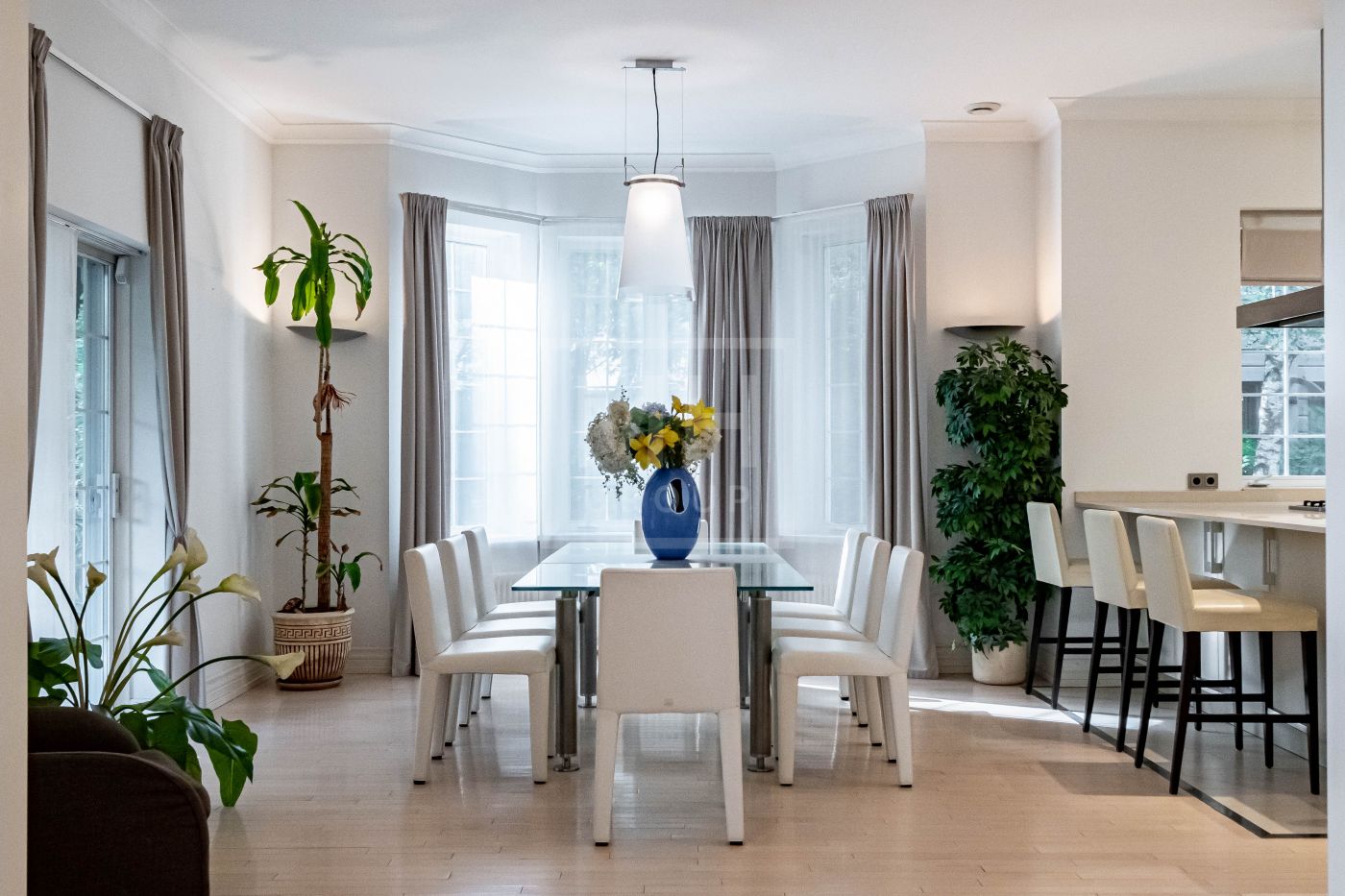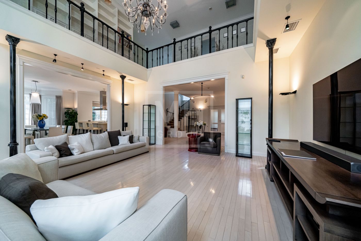 Этаж 1: холл,прихожая, гостиная со вторым светом и камином, кухня-столовая с выходом на террасу, гостевой с/у, гостевая спальня, кабинет/гостевая спальня, постирочная- кладовая, котельная, гараж на 2 автомобиля.