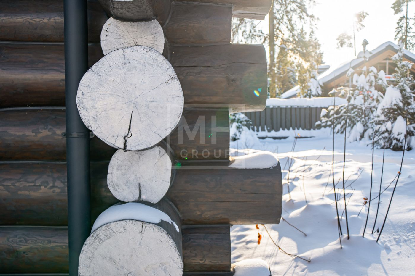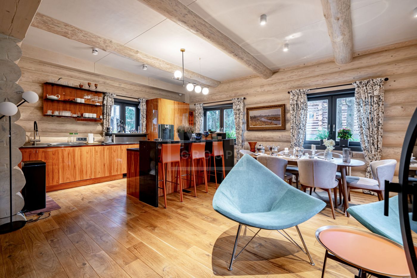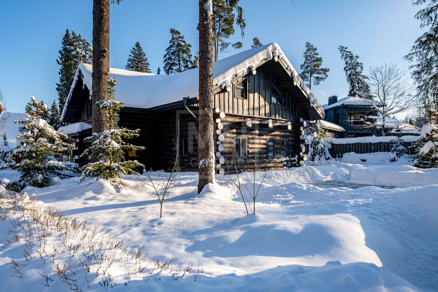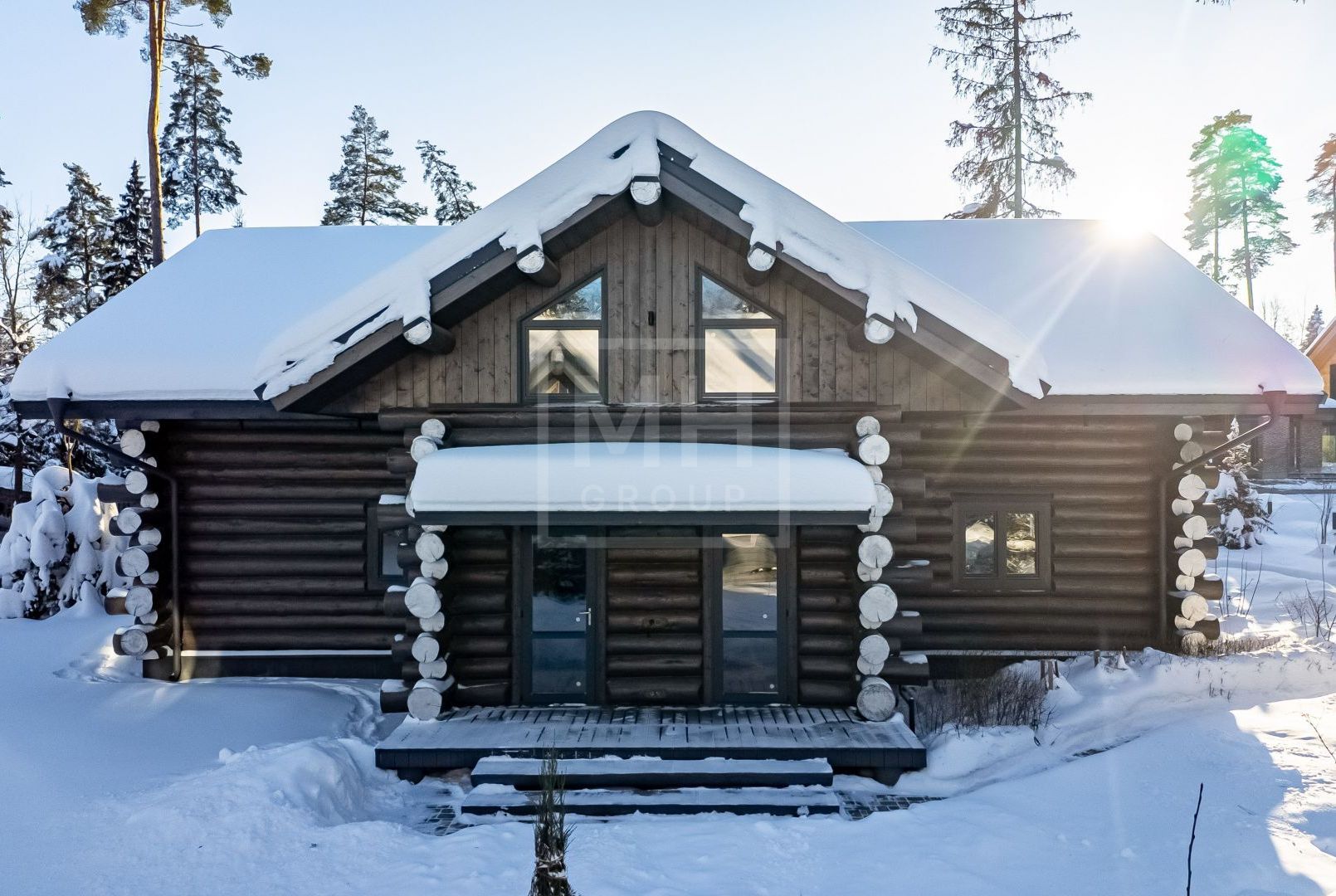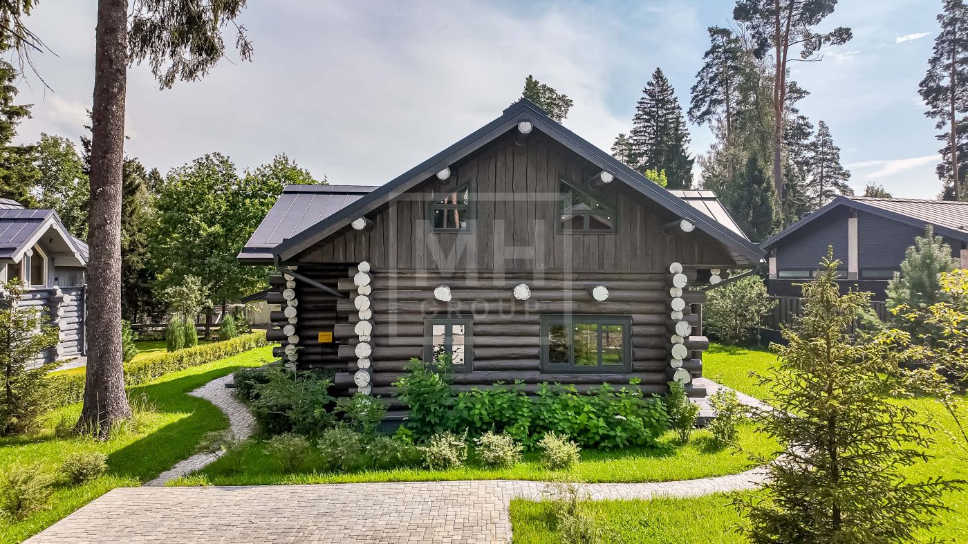 Стильный сруб из архангельской сосны, создающий ощущение того, что находишься в русской сказке, расположился на живописном участке с вековыми соснами в камерном охраняемом коттеджном посёлке "Геодар" на 26 км Рублёво- Успенского шоссе.Дом возведён на свайно- ростверковом фундаменте с использованием качественных материалов, после сборки дом устоялся согласно правилам строительства домов из бревна. Для обработки и пропитки бревна использовались премиальные масла- Osmo, GNature.