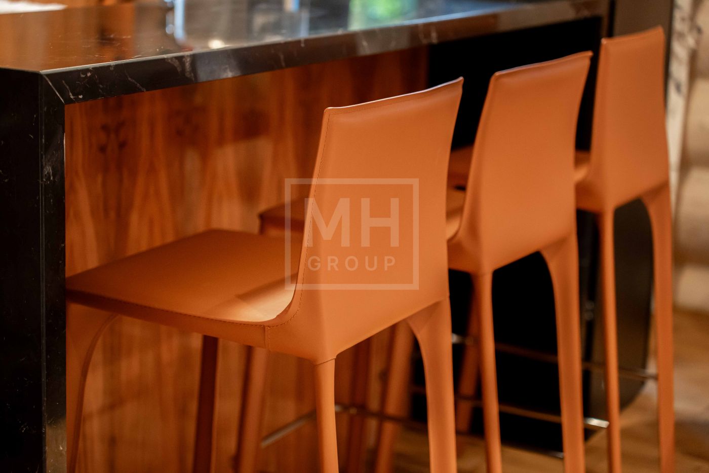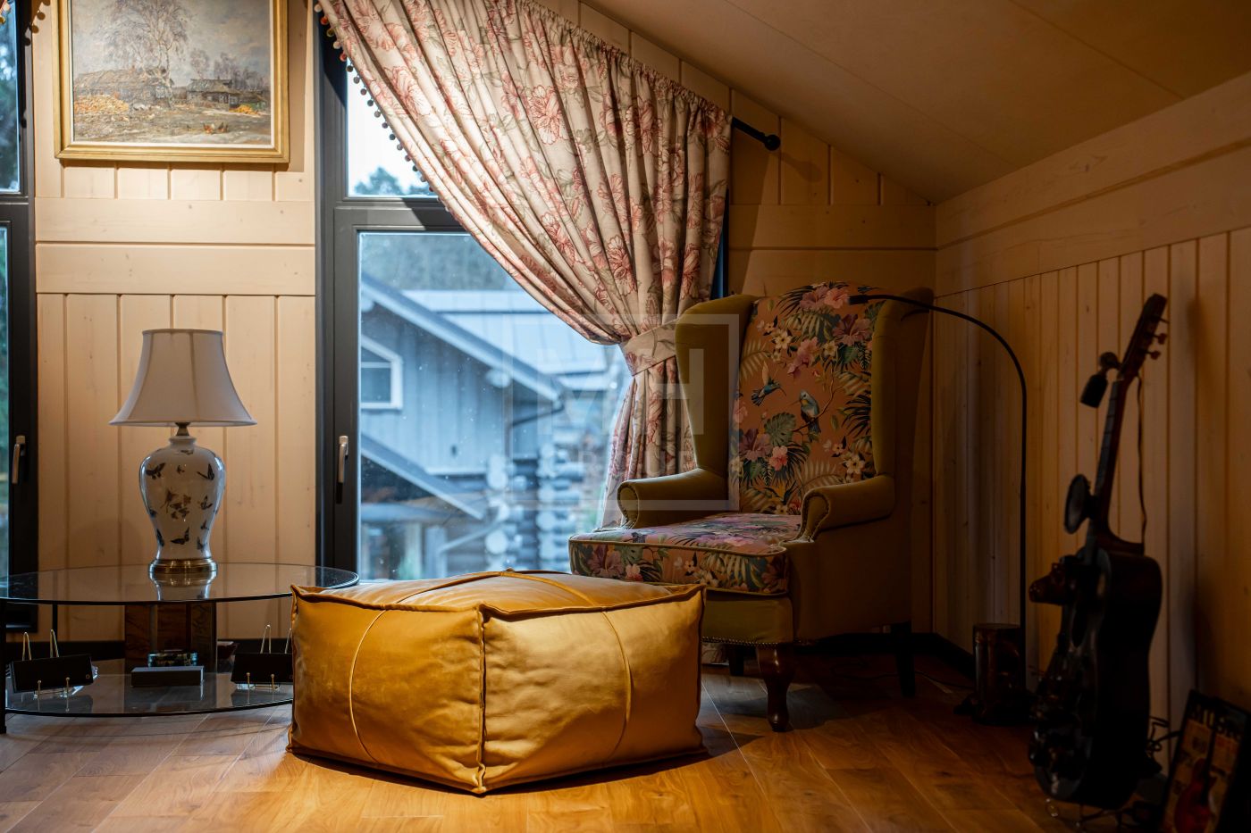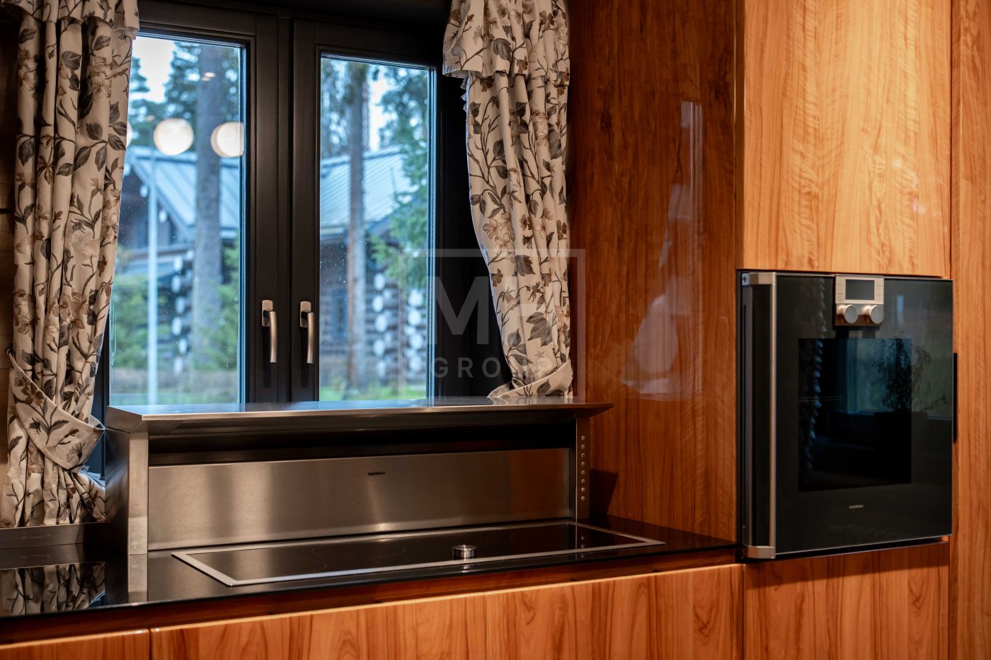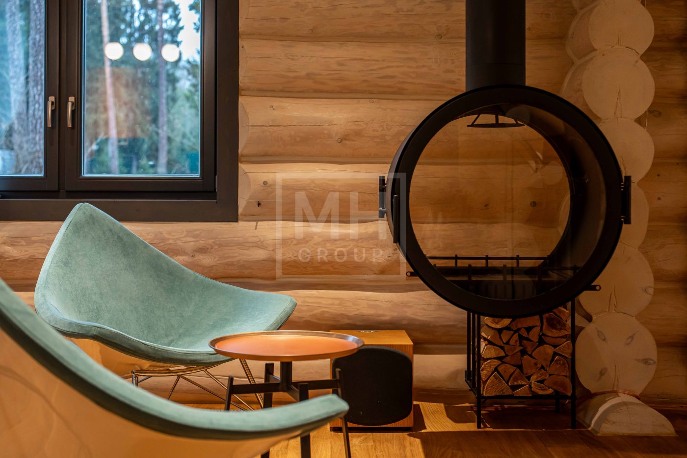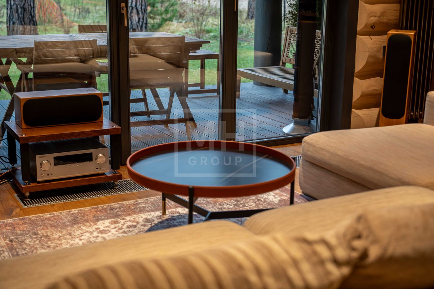Внутренняя отделка дома выполняется с использованием качественных экологичных материалов, пространство организовано с учётом удобства жизни и отдыха всех проживающих в нём. Стильные дизайнерские решения в каждой детали. Мебель: Poliform, Flexform. Освещение в доме представлено топовыми брендами: Flos, Maytoni, Lamasvet, Denkirs. Техника: Gaggenau. Сантехника: Villeroy&Boch, Hansgrohe.