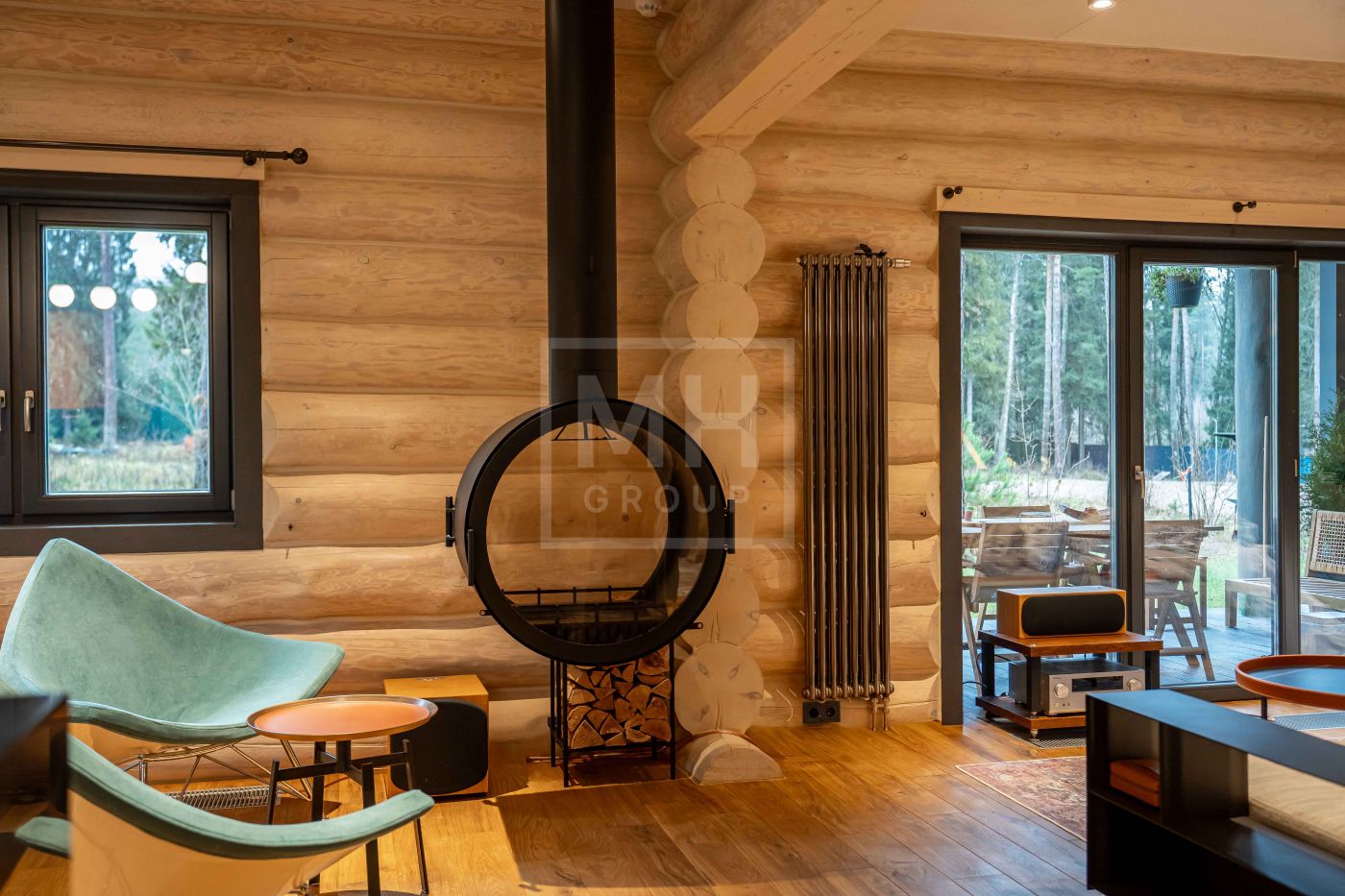 Возведён на свайно- ростверковом фундаменте с использованием качественных материалов, после сборки дом устоялся согласно правилам строительства домов из бревна. Для обработки и пропитки бревна использовались премиальные масла- Osmo, GNature.