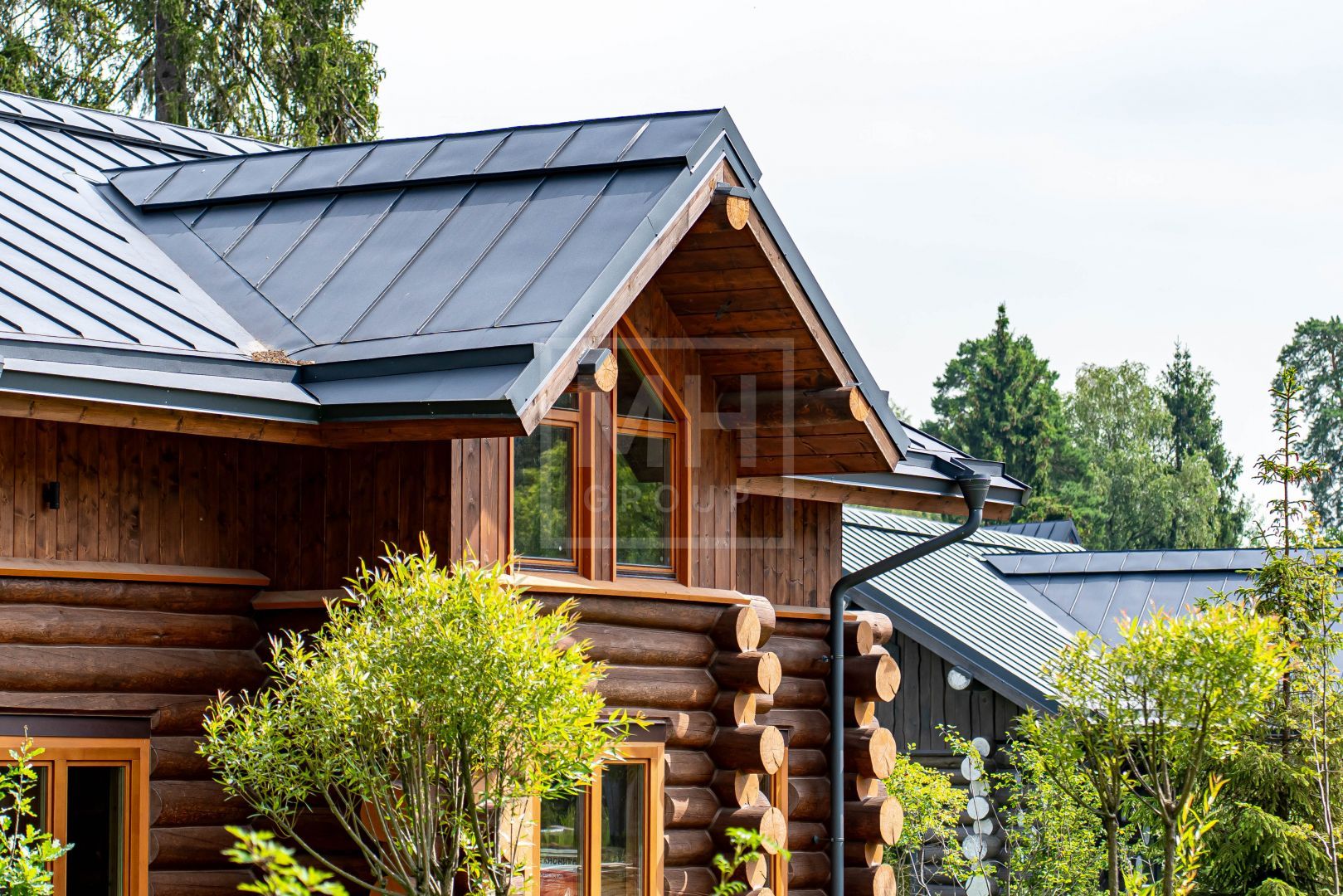Кровля из фальца ручной раскатки- самая надежная, теплая и долговечная. Стеклопакеты высшего класса изготовлены с использованием премиальных пород дерева.
