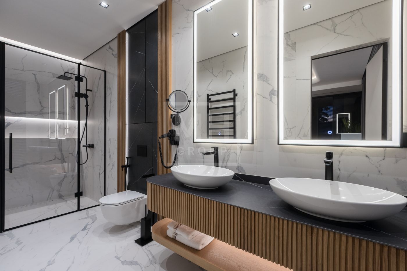 Престижный коттедж в элитном поселке у леса — пространство для жизни, вдохновения и уютаДом расположен на ухоженной территории с ландшафтным дизайном, в окружении хвойного леса, где чистый воздух, тишина и природная красота становятся частью повседневной жизни. Архитектурное решение выполнено в современном классическом стиле — лаконичные формы, натуральные материалы фасада, панорамное остекление и благородные оттенки создают ощущение сдержанной роскоши. Дом построен из качественных материалов с учетом всех современных норм энергоэффективности и долговечности.