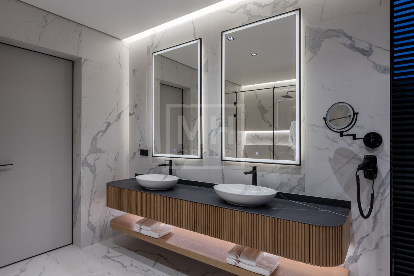 Этаж 2: Мастер спальня с с/у и 2 гардеробными, спальня с с/у и гардеробной, спальня с с/у, гардеробной и кабинетом, холл.