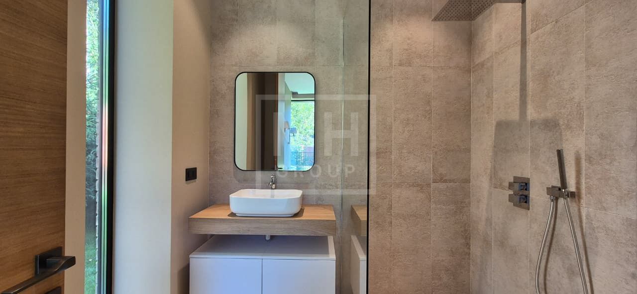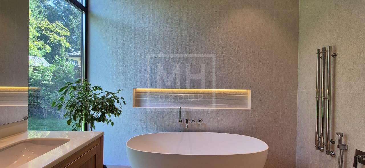 Отделка выполнена в нейтральных, элегантных тонах, что позволяет легко адаптировать интерьер под любой вкус; от классики до минимализма. Установлены теплые водяные полы Rehau во всех помещения, внутрипольные конвекторы во всех комнатах, котел Vaillant и боллер на 30 литров. Электропроводка, разводка воды и канализации — всё соответствует современным стандартам.