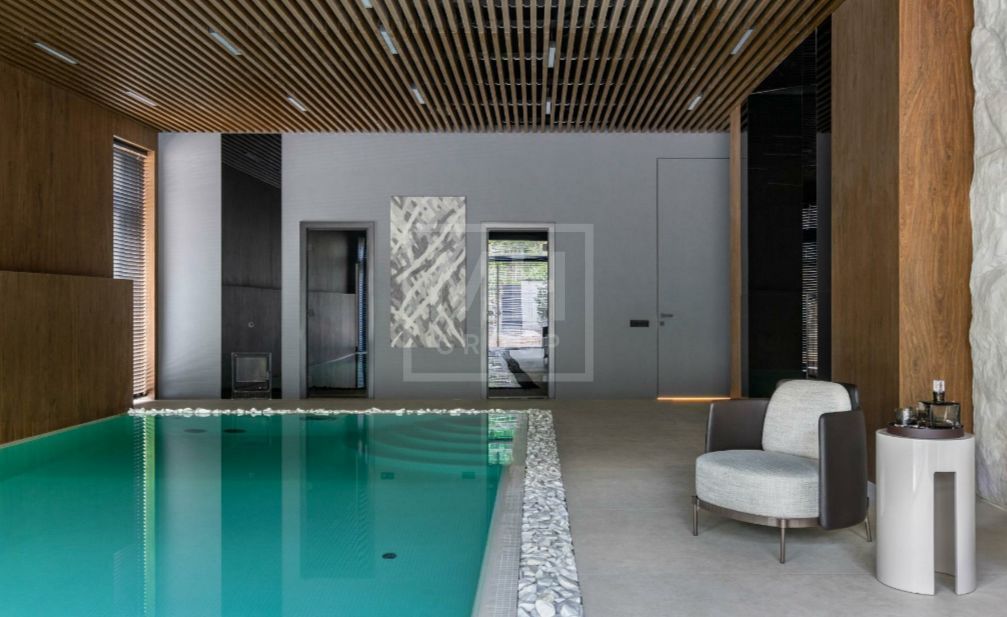 Роскошный двухэтажный дом "под ключ" с бассейном на угловом участке в Жуковке, в окружении лучшей инфраструктуры! Авторский архитектурный проект в современном стиле с панорамными окнами Schuco. В отделке - исключительно дорогие материалы (мрамор, дубовый паркет, итальянский керамогранит). Мебель Minotti, вся встроенная мебель и гардеробные от бренда Giulia Novars, бытовая техника V-ZUG. На участке красивый ландшафтный дизайн, беседка с барбекю и крытой столовой.